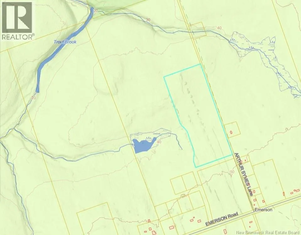 Located across from civic number 39 Arthur Symes Lane in Beersville 20-acre treed lot offering privacy and natural beauty in a peaceful rural setting. Located across from civic number 39 Arthur Symes Lane in Beersville (also known locally as Ethans ave), this property features the serene Trout Brook running along the back, creating a picturesque setting ideal for nature lovers and those seeking tranquility. The versatile land offers endless possibilitiesbuild your dream home, create a private retreat, or enjoy a variety of outdoor recreational activities right on your own property. Conveniently situated approximately 45 minutes from Moncton and 25 minutes from Rexton and Richibucto, this property provides the perfect balance of privacy and accessibility. (id:27476)