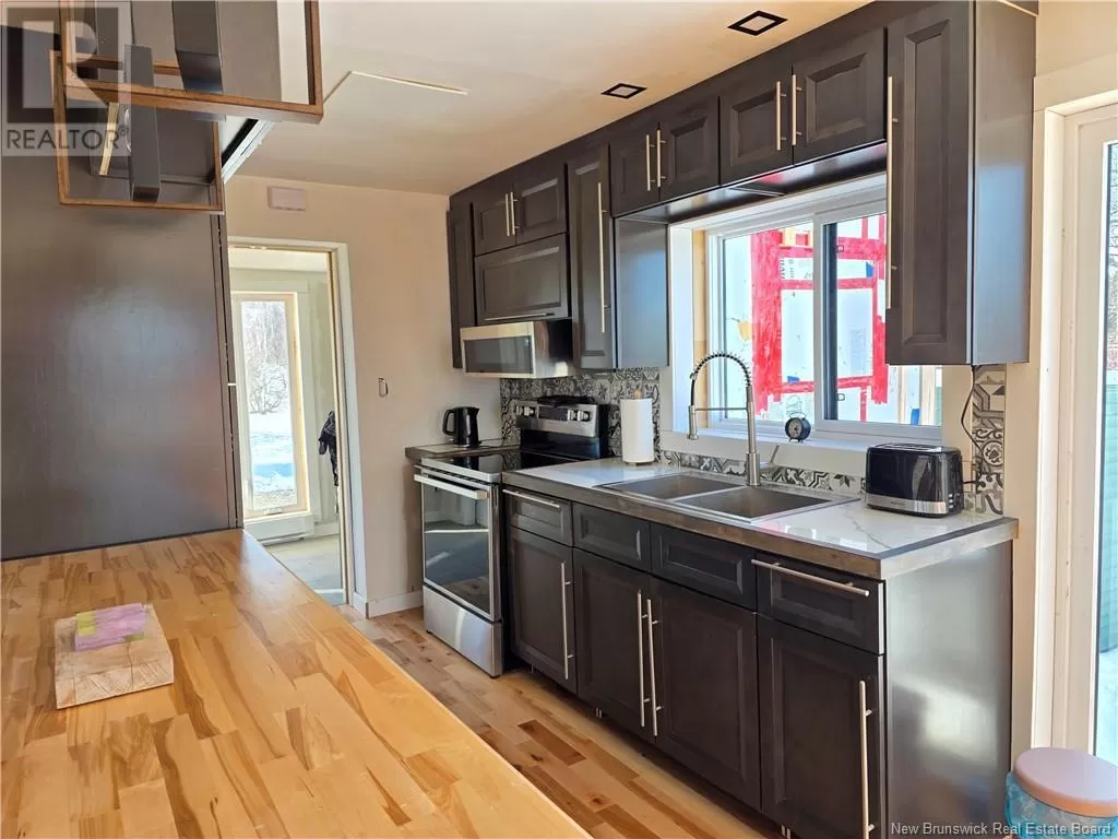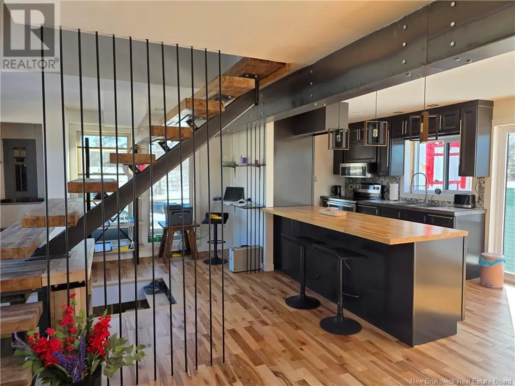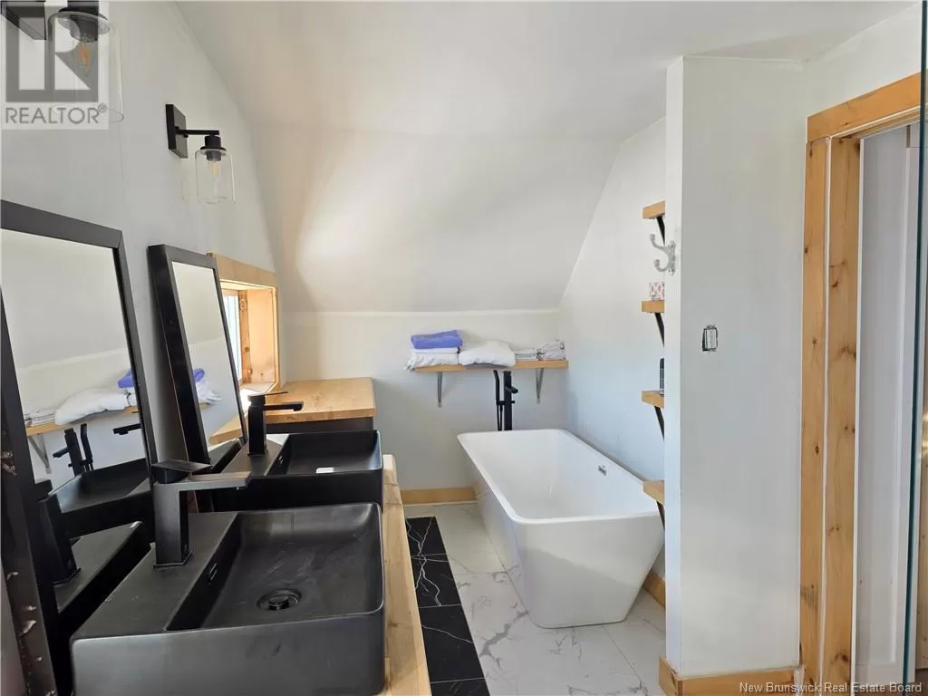 Imagine waking up to breathtaking panoramic views of the shimmering Bay des Chaleurs every day! This charming two-story home in the peaceful community of Belledune, New Brunswick, offers just that and so much more. This property comes with furniture and all appliances. Open Concept Main Floor: The main level flows seamlessly, connecting the kitchen, dining area, and living room. This open concept is perfect for entertaining and creates a bright and airy atmosphere. Retreat to the expansive bedroom on the second floor, complete with an abundance of closet space to keep everything organized. Pamper yourself in the beautifully appointed bathroom featuring a large, modern shower and a relaxing freestanding bathtub your personal spa awaits! Benefit from the durability and longevity of a metal roof, along with the energy efficiency and aesthetic appeal of new doors and windows. Please note that the exterior of the house is not fully finished. However, the seller has purchased all the necessary exterior vinyl siding and accessories, which can be included in the purchase price, allowing you to customize the final look to your taste. (id:27476)