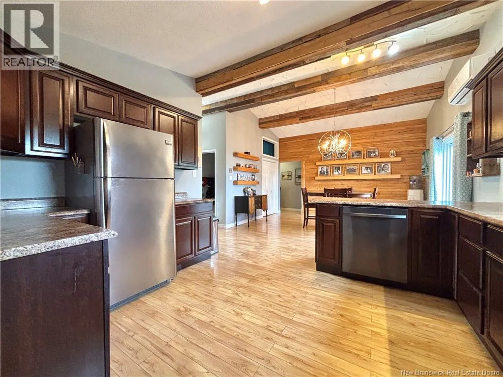 Google Map address : 262 Jasmine, Beresford, NB The main intersection is Rue Principale and Rue Jacque. When you see Mawi Bakery, turn right Jasmine is on your left side, and the house is there as well. This stunning property is located in a quiet subdivision and close to all amenities such as schools, shopping, restaurants, grocery stores, and the beautiful Beresford Beach. It offers everything your family needs and more! Sitting on a large lot, this home comes with both an attached and detached garage, a large paved driveway, and a hot tub for year-round enjoyment. The main floor welcomes you with a warm and inviting feeling, featuring an open-concept kitchen and dining area with vaulted ceilings and exposed wood beams, a bright living room with hardwood floors and large windows, three great size bedrooms, a full bath, and a convenient Laundry room with access to the garage. The fully finished basement is ready to impress the entire family! It includes a cozy family room, an entertainment/office/ game area, an impressive man-cave area with a wet bar, and a huge master bedroom with a walk-in closet and brand-new bathroom. With its separate entrance from the bar room , this space could also be easily converted into a basement apartment to help with your mortgage payments. (id:27476)