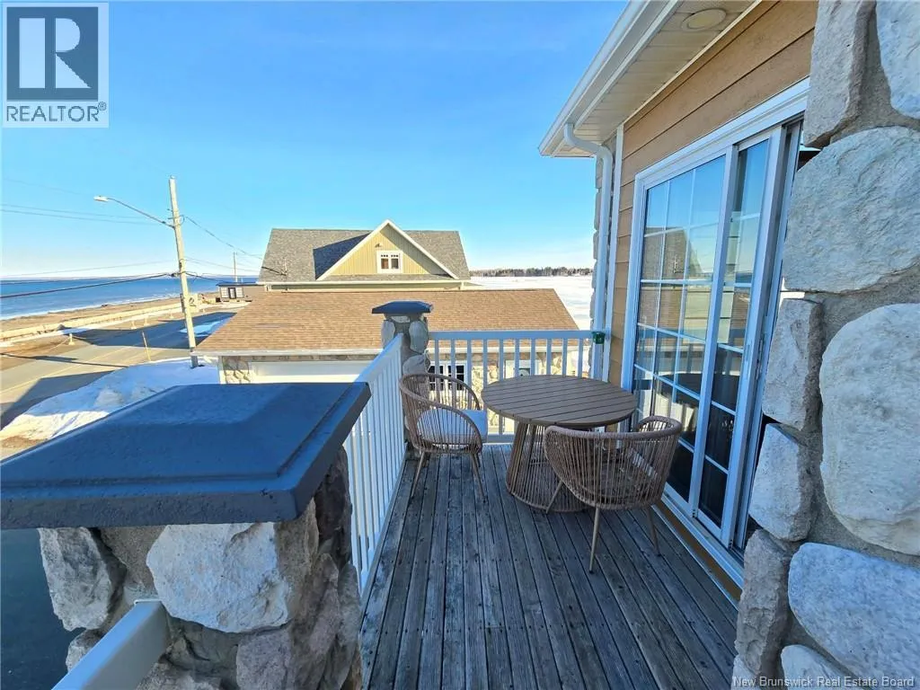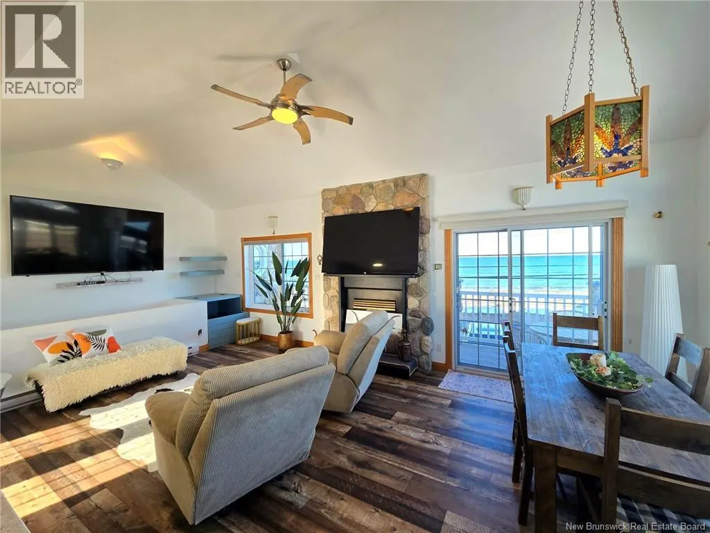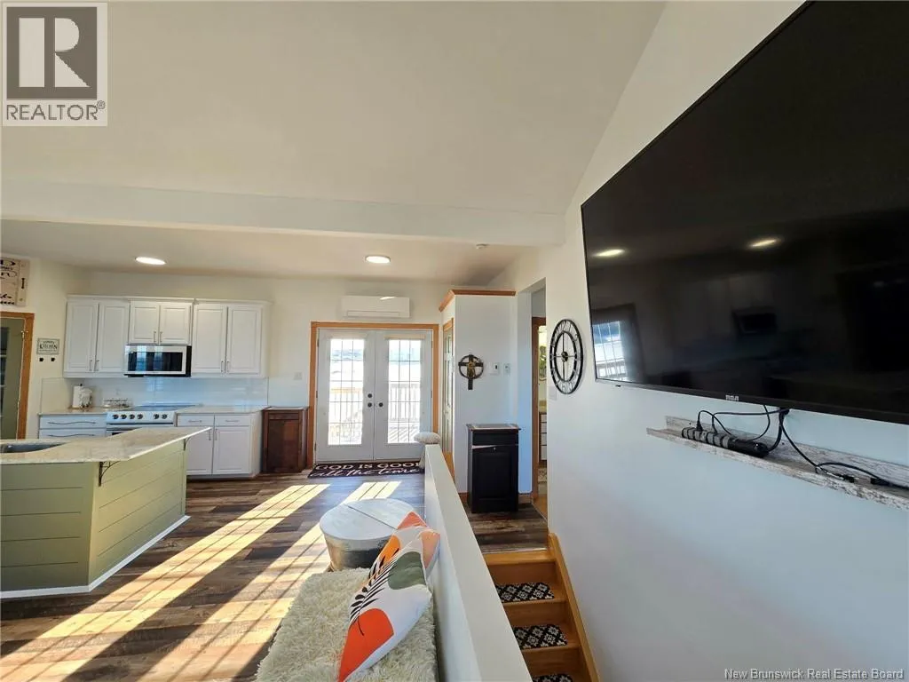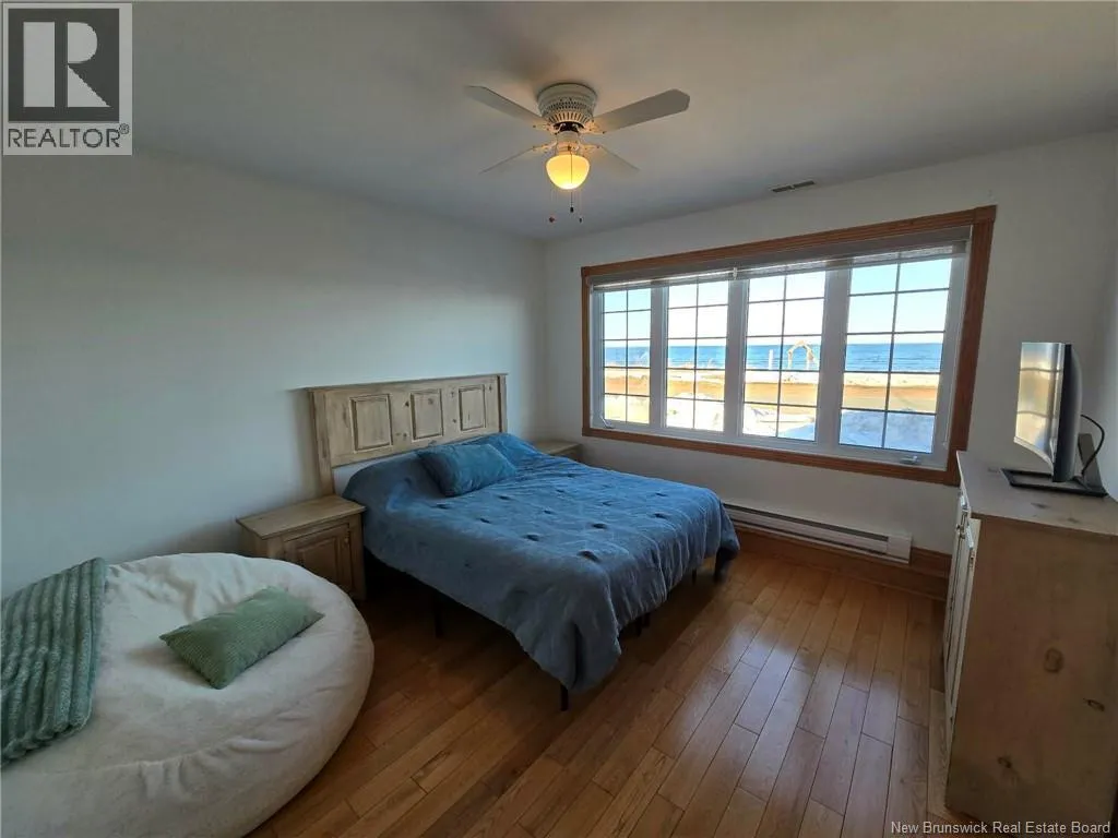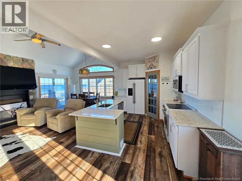 Rue Principale to Rue Parc, Right on John Cormier Experience waterfront living in this coastal retreat, perfectly positioned between the Bay of Chaleur and the lagoon, offering stunning sunrise and sunset views. Enjoy the ultimate outdoor lifestyle with your own sandy beachideal for swimming, relaxing, kayaking, and paddleboarding right at your doorstep. Located in a welcoming community, youll enjoy nearby amenities like a kantine, live entertainment, kids park, and arena. The home features a bright open-concept design with cathedral ceilings and large windows showcasing water views throughout. The main living area on the second floor includes a cozy wood-burning fireplace and patio doors leading to an upper deck overlooking the bayperfect for relaxing and taking in the scenery. The kitchen is finished with white oak cabinetry, quartz countertops, a center island, and a walk-in pantry, while the dining area is positioned to enjoy the views. The primary bedroom offers large windows, a walk-in closet, and a full bathroom across the hall with laundry. The fully finished lower level offers flexibility with an open living and dining area, kitchenette, two bedrooms, and a full bathroomideal for an in-law suite or Airbnb potential. A detached 24 x 32 heated garage with a heat pump completes the property. Recent upgrades include fixtures, backsplash, flooring, fresh paint, and new heat pumps. With year-round outdoor activities and waterfront access on both sides, this property is a rare lifestyle opportunity. (id:27476)