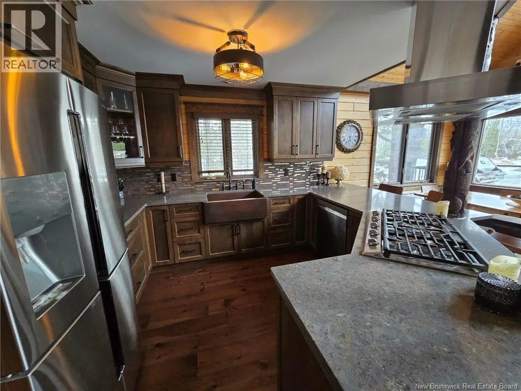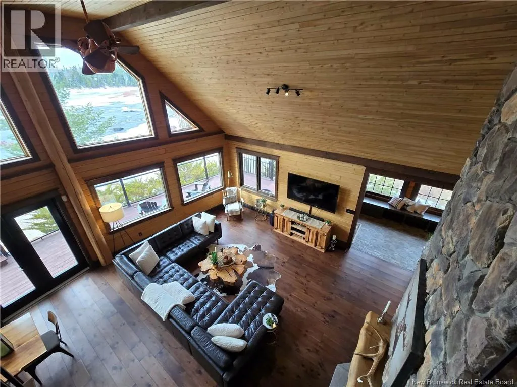 Route 430, Left on Shamrock Valley Embrace a lifestyle of tranquility, natural beauty, and modern comfort. Set along a renowned salmon river, this fully renovated log home blends rustic charm with upscale finishesideal as a year-round home or retreat. Just 10 minutes from town, it showcases quality craftsmanship. Inside, cathedral ceilings and large windows fill the space with light and frame river views. A 20-foot stone fireplace anchors the living area, complemented by built-in appliances, a propane stove, granite countertops, and a copper sink. A wraparound deck with glass railings offers clear water views, while the hot tub creates a relaxing setting. The main floor includes a primary bedroom, full bathroom with double vessel sinks, laundry, mudroom, and wood storage. The wood-burning fireplace also serves as an efficient furnace, with on-demand hot water and a generator for backup power. Upstairs features a second bedroom, full bathroom, and loft with a sofa bedideal for guests or a home office. Both levels offer beautiful river views. Surrounded by nature, enjoy deer and bald eagles, with Split Rock Pool nearby attracting Atlantic salmon each fall. The Mikmaq Heritage Hiking Trail across the river offers outdoor adventure, with nearby snowmobile trails. Built from Eastern White Cedar logs on a concrete foundation set into granite rock with a breakwater. Set on 1.46 acres, it offers privacy and four-season enjoyment. Bonus: Sold fully furnishedmove in and enjoy riverfront living. (id:27476)
