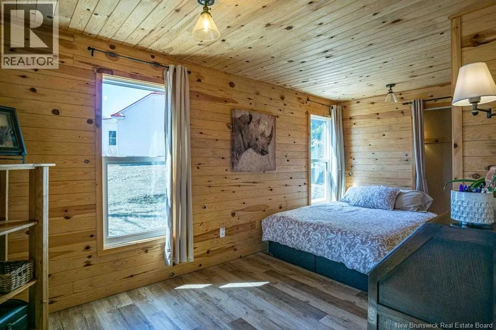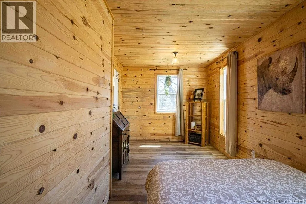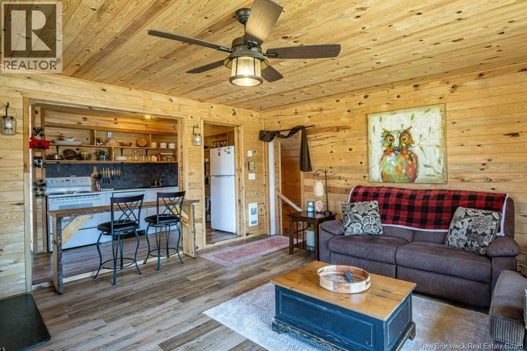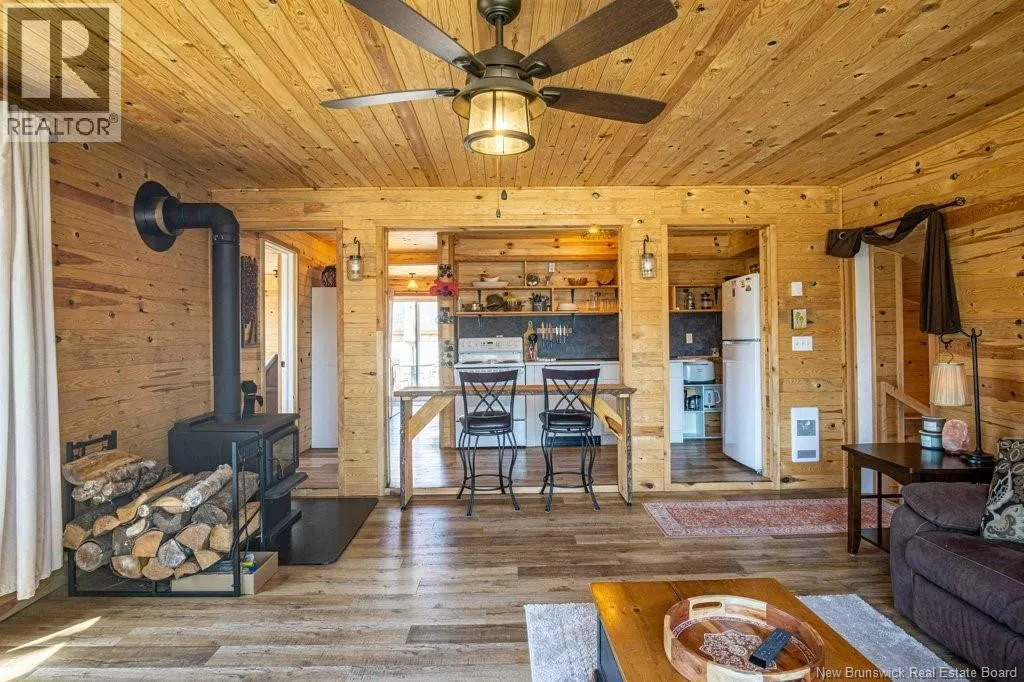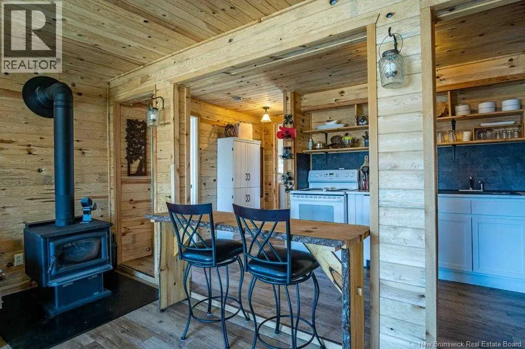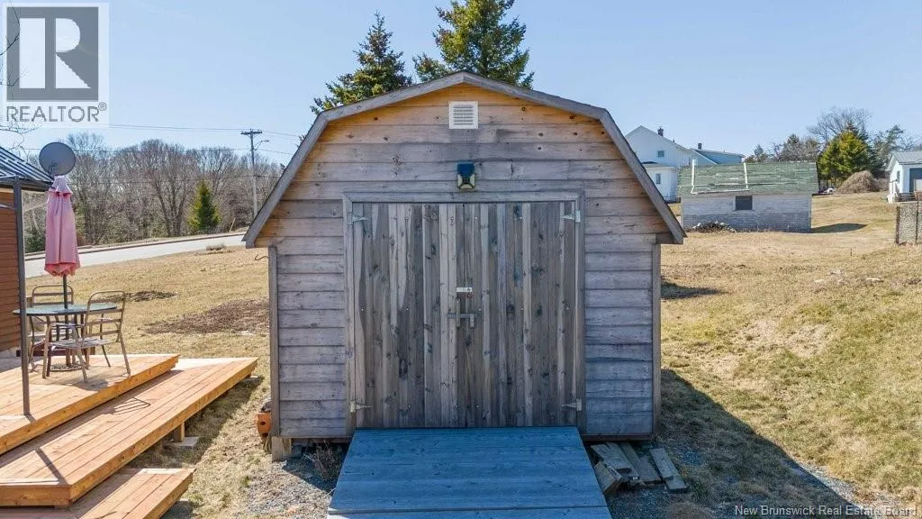From Saint John: take highway 1 to Pennfield, turn left onto route 176 (Main St) for 7.5 kms, turn right onto Wallace Cove Rd, home is on the right. Searching for a home in a coastal community? This cozy cottage style property in the historic fishing village of Blacks Harbour is the perfect retreat for outdoor lovers or a charming rental opportunity. Just minutes from the Bay of Fundy and the Grand Manan Ferry Terminal, you'll enjoy easy access to boating, fishing, and relaxed coastal living. This 2 bedroom, 1 bath home is filled with warmth and character, featuring knotty pine tongue and groove accents throughout, a cozy wood stove for cold winter nights, and a heat pump for year round comfort. The open concept layout flows seamlessly into a bright kitchen with open shelving and newer appliances, while a practical mudroom offers plenty of space for all your outdoor gear, making everyday living both functional and inviting. Step through the patio doors onto a spacious deck, perfect for unwinding after a day of adventures. There's a large storage shed which offers excellent space for tools, seasonal items, or turn it into a workshop to create your masterpieces. A durable metal roof ensures long-term reliability, while the partially finished walk-out basement adds valuable extra storage. Whether you're searching for your first home, looking to downsize, or seeking a turnkey investment, this affordable property delivers comfort and charm and with its proximity to the water, it's an appealing option for those dreaming of East Coast living or looking to attract Airbnb guests year-round. (id:27476)