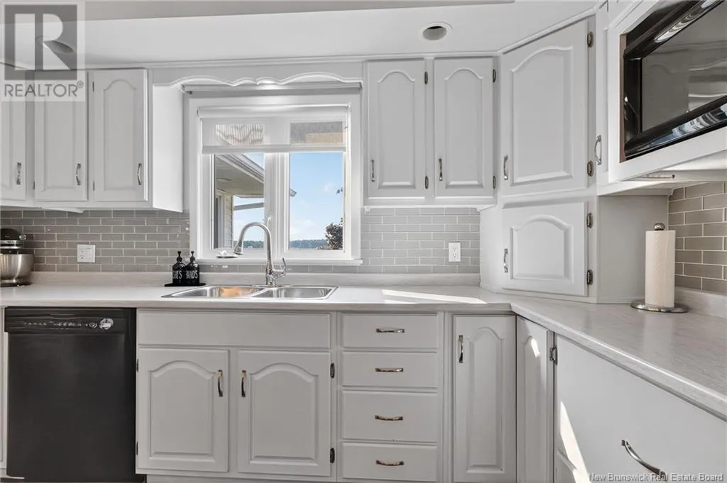 When coming from Moncton, take exit 32B onto Irving Blvd. 222 will be on your left, directly across the ''Place Le Bourg'' mall. From Miramichi, take exit 32A-32B, turn right onto Irving Blvd. Destination will be on the left. **WATER IS NOW HOOKED UP TO MUNICIPAL** This beautiful home is perfectly situated in the vibrant center of Bouctouche & its ZONING is ""COMMERCIAL REGIONAL"". Seconds away from Exit 32 off Route 11, with quick access to both Moncton & Miramichi. The home is close to all amenities & you will be amazed at how quiet it is inside! The interior offers a calm, peaceful atmosphere & is meticulously maintained! It offers breathtaking views of the Bouctouche River. You will step inside to a sunlit, spacious & beautiful kitchen featuring a generous center island, ample cabinetry, & plenty of counter space. The open-concept flow leads seamlessly into the dining area & an expansive family room where beautiful river views steal the show. From there, you will step out onto a cozy deck & stoned patio, perfect for quiet evenings under the stars or hosting family & friends. The main floor also boasts a welcoming living room with new custom blinds, a fully gutted & redone bathroom with custom blinds, & three well-appointed bedrooms. Downstairs, the fully finished lower level offers exceptional versatility: a second kitchen, a spacious family room with built-in bar, a second full bathroom with laundry, & a dedicated office space perfect for remote work or guest accommodations with a walk-in closet (non-conforming bedroom). The Double attached Garage has Epoxy flooring. Outside, youll find a meticulously landscaped backyard complete with a detached 15x19 garage/baby barn with a wood stove. (id:27476)