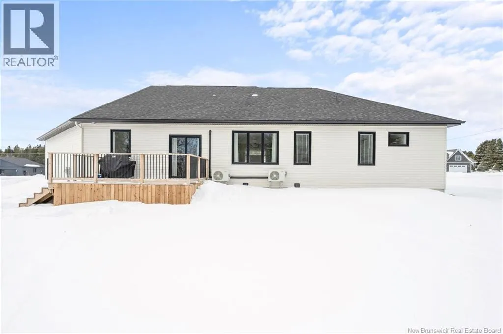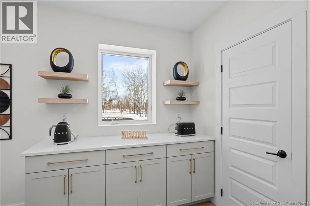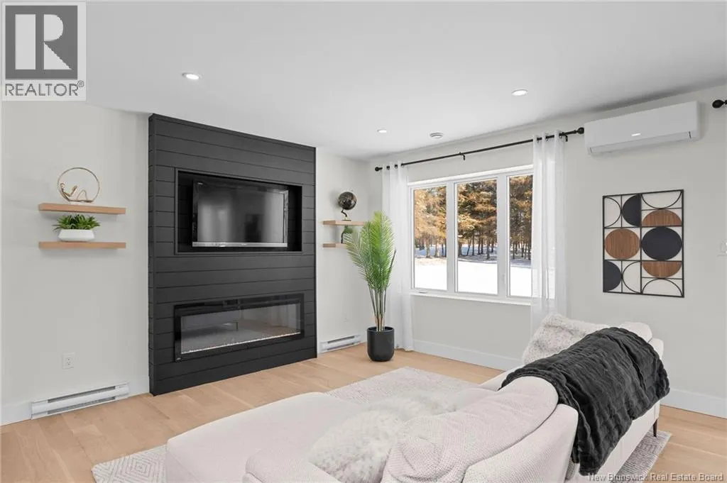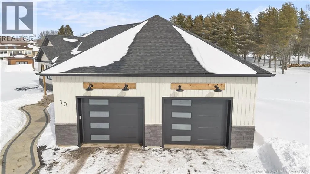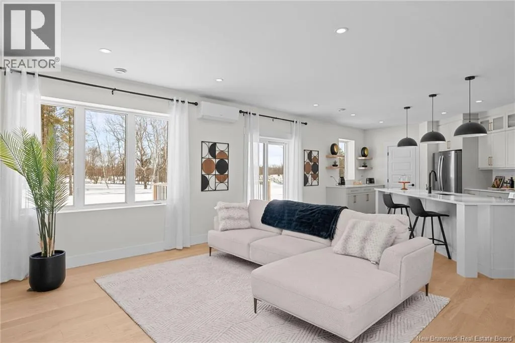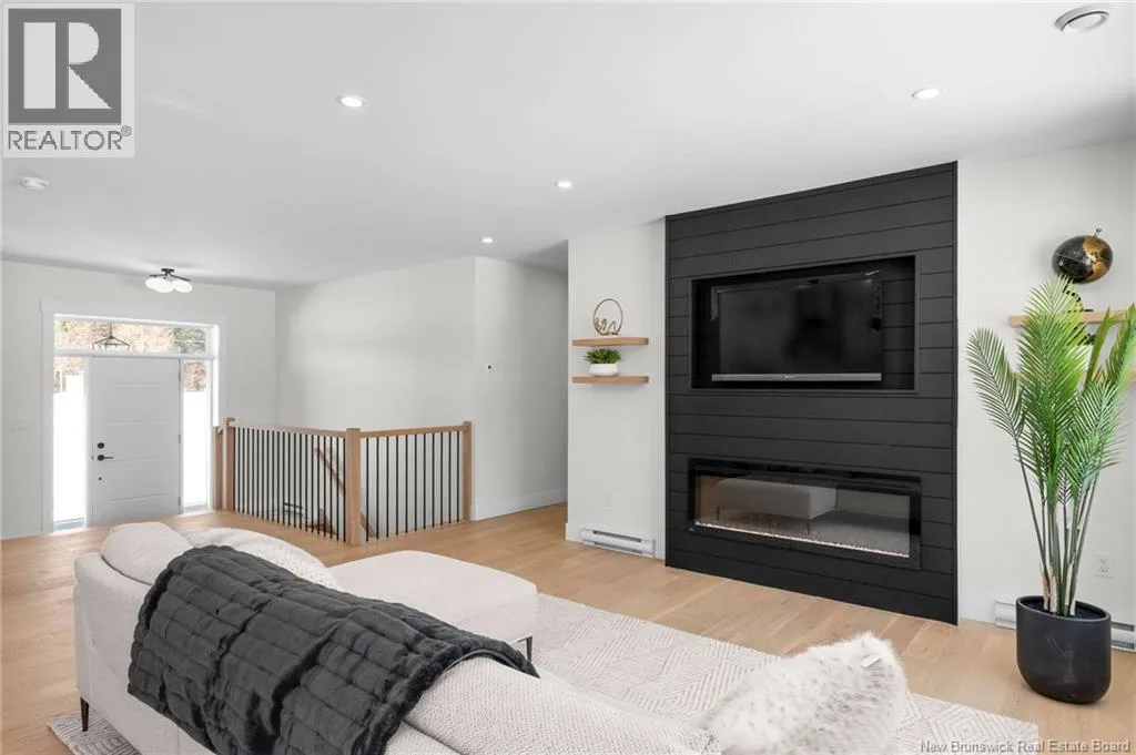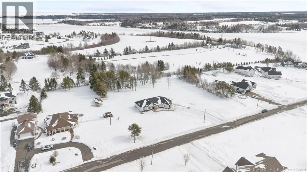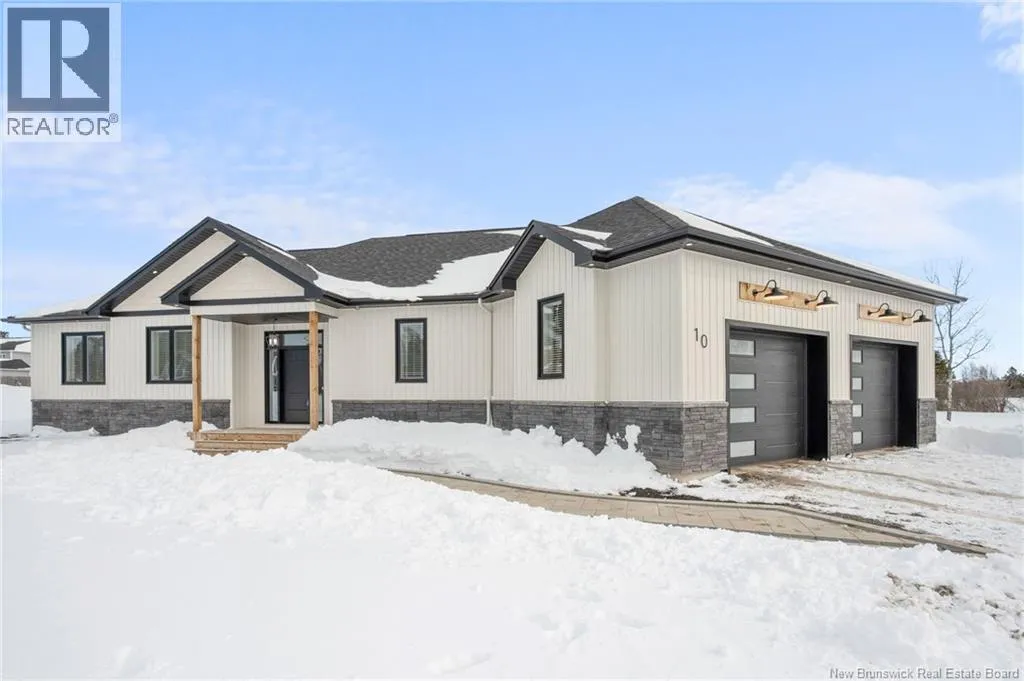 From NB-11 N take exit 32B for NB-515 O toward Sainte Marie. Merge onto Bd Irving/NB-515 W and then turn left onto All. Alyre. Property will be on the left. Welcome to 10 Allée Alyre, a custom-built raised bungalow completed in 2024 with water views! Situated on 1.7 acres on a quiet cul-de-sac near the water, this ICF-constructed home delivers outstanding energy efficiency, durability, and luxury. The front entry leads to a convenient laundry/mudroom with access to the attached double garage. Up two steps, the bright open-concept main floor features engineered hardwood, abundant pot lighting, and an efficient mini-split. The kitchen impresses with an oversized island with sink and bar seating, stone countertops, a white backsplash, stainless steel appliances, a walk-in pantry, and a dedicated coffee bar with trendy floating shelves. Patio doors off the kitchen lead to the large back deck while filling the space with natural light. The living room showcases a striking black shiplap fireplace with an electric insert and TV cutout. The primary suite features a sliding barn door to the ensuite, which includes dual sinks, a tiled shower with a window, and a walk-in closet. Two additional bedrooms and a 4-piece bath complete this level. The fully finished lower level offers a spacious family room, two bedrooms (one with an exceptionally large closet), a 3-piece bath, finished storage room, and utility space. Outside, the predominantly cleared lot offers treed privacy at the rear and plenty of space for outdoor enjoyment. This low-maintenance, practically brand-new luxury property is minutes from amenities and ready to welcome you home! (id:27476)