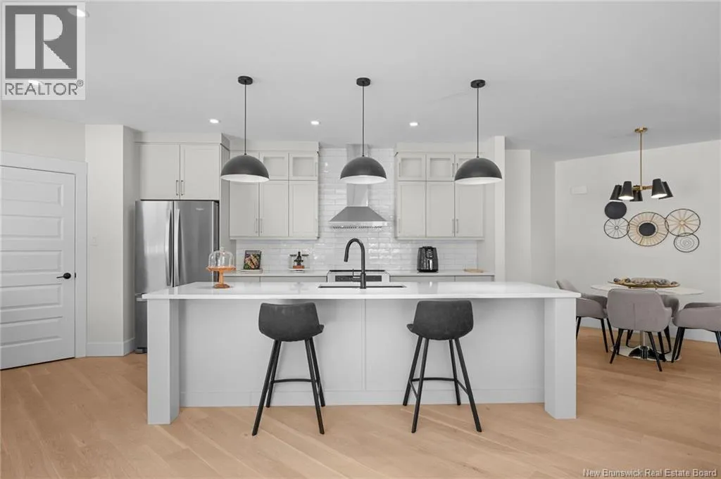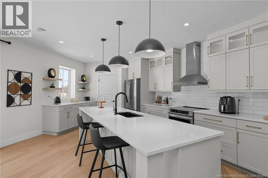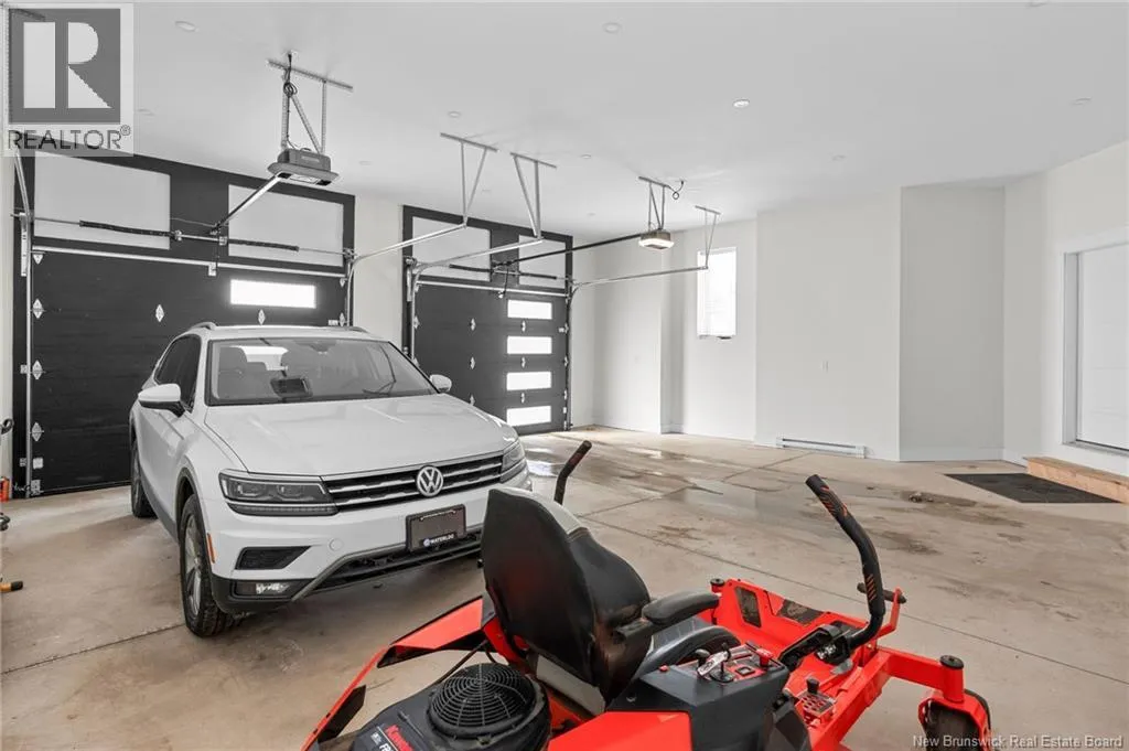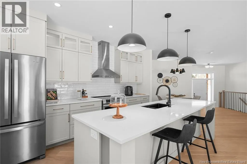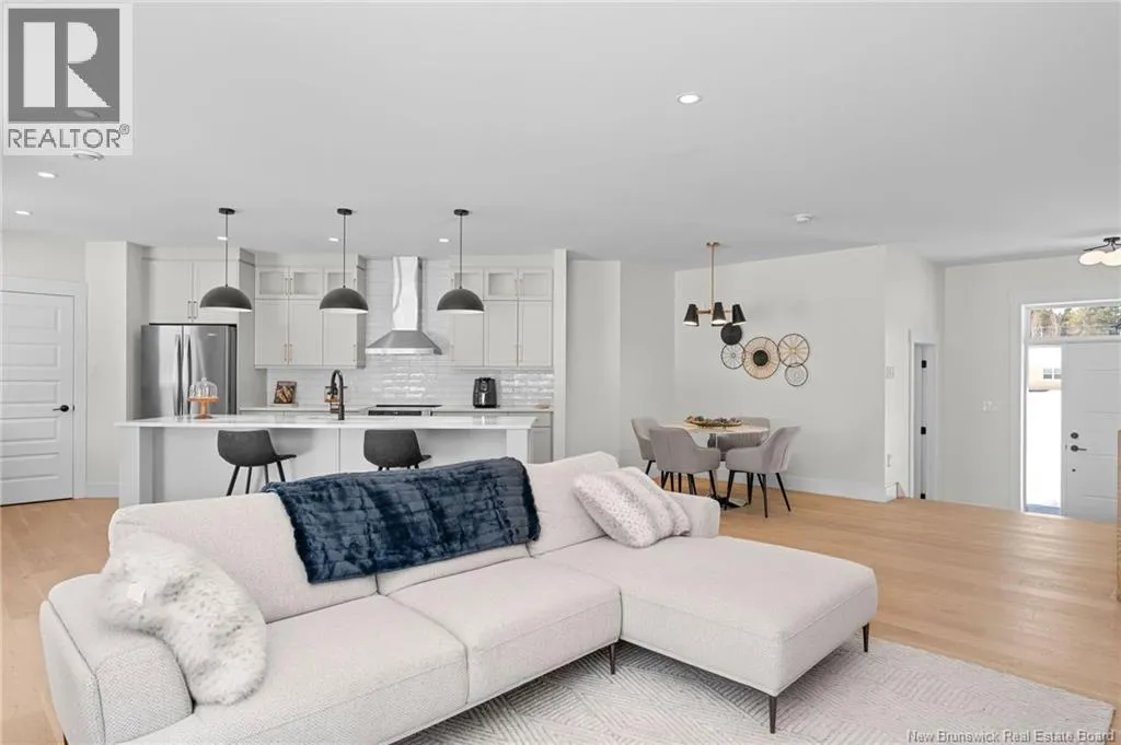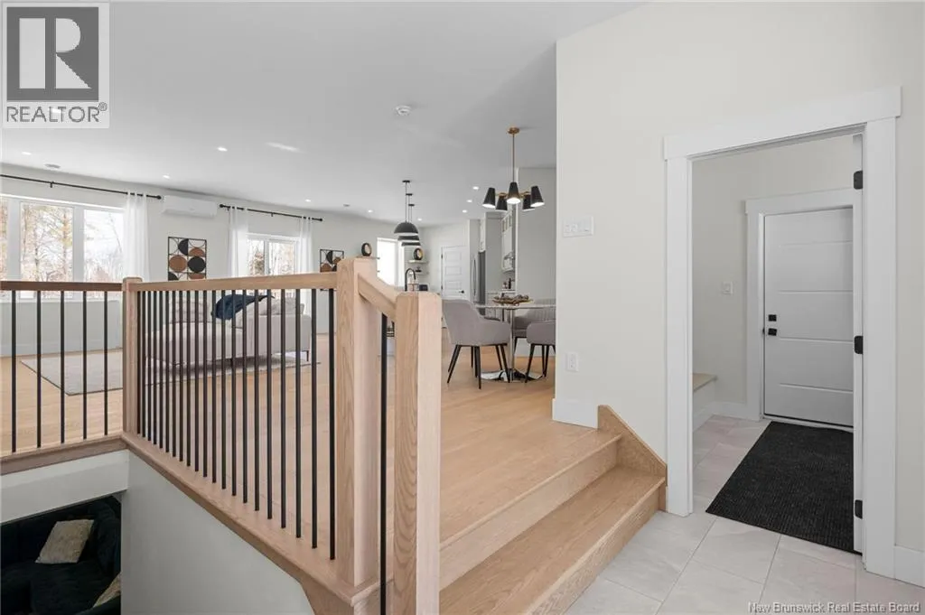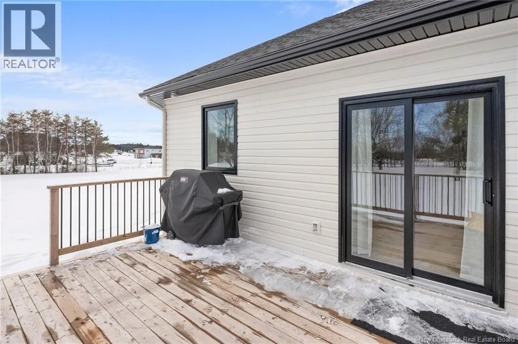 From NB-11 N take exit 32B for NB-515 O toward Sainte Marie. Merge onto Bd Irving/NB-515 W and then turn left onto All. Alyre. Property will be on the left. Welcome to 10 Allée Alyre, a custom-built raised bungalow completed in 2024 with water views! Situated on 1.7 acres on a quiet cul-de-sac near the water, this ICF-constructed home delivers outstanding energy efficiency, durability, and luxury. The front entry leads to a convenient laundry/mudroom with access to the attached double garage. Up two steps, the bright open-concept main floor features engineered hardwood, abundant pot lighting, and an efficient mini-split. The kitchen impresses with an oversized island with sink and bar seating, stone countertops, a white backsplash, stainless steel appliances, a walk-in pantry, and a dedicated coffee bar with trendy floating shelves. Patio doors off the kitchen lead to the large back deck while filling the space with natural light. The living room showcases a striking black shiplap fireplace with an electric insert and TV cutout. The primary suite features a sliding barn door to the ensuite, which includes dual sinks, a tiled shower with a window, and a walk-in closet. Two additional bedrooms and a 4-piece bath complete this level. The fully finished lower level offers a spacious family room, two bedrooms (one with an exceptionally large closet), a 3-piece bath, finished storage room, and utility space. Outside, the predominantly cleared lot offers treed privacy at the rear and plenty of space for outdoor enjoyment. This low-maintenance, practically brand-new luxury property is minutes from amenities and ready to welcome you home! (id:27476)