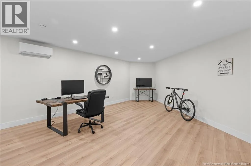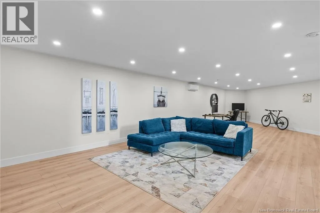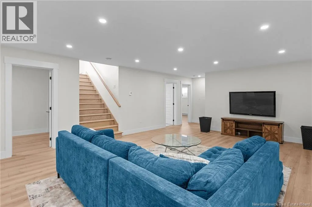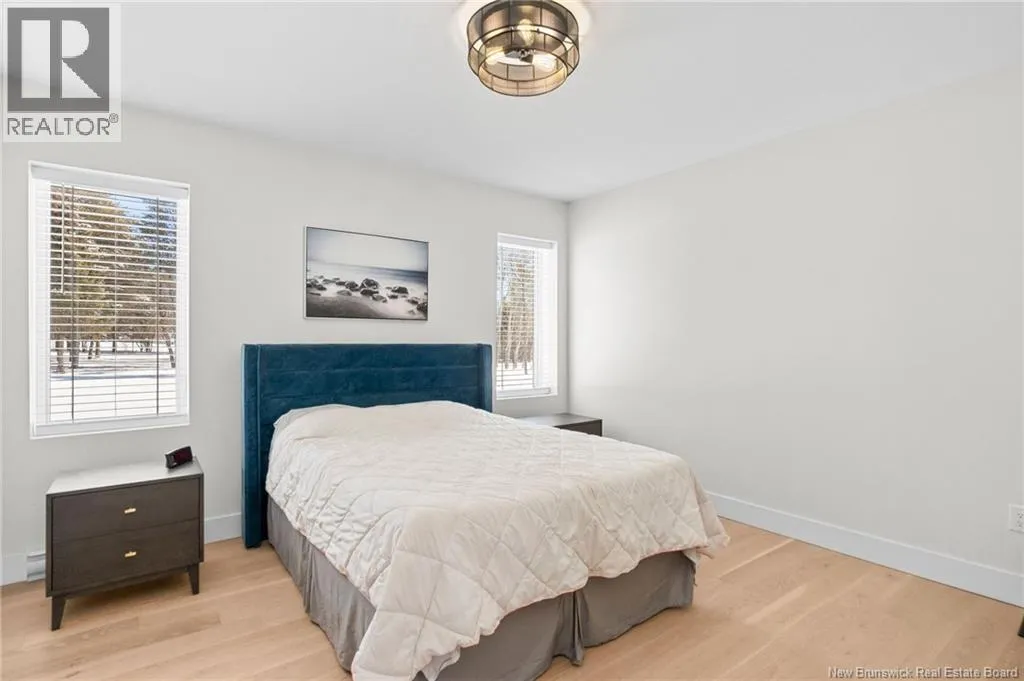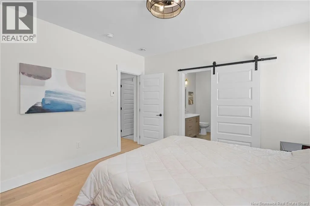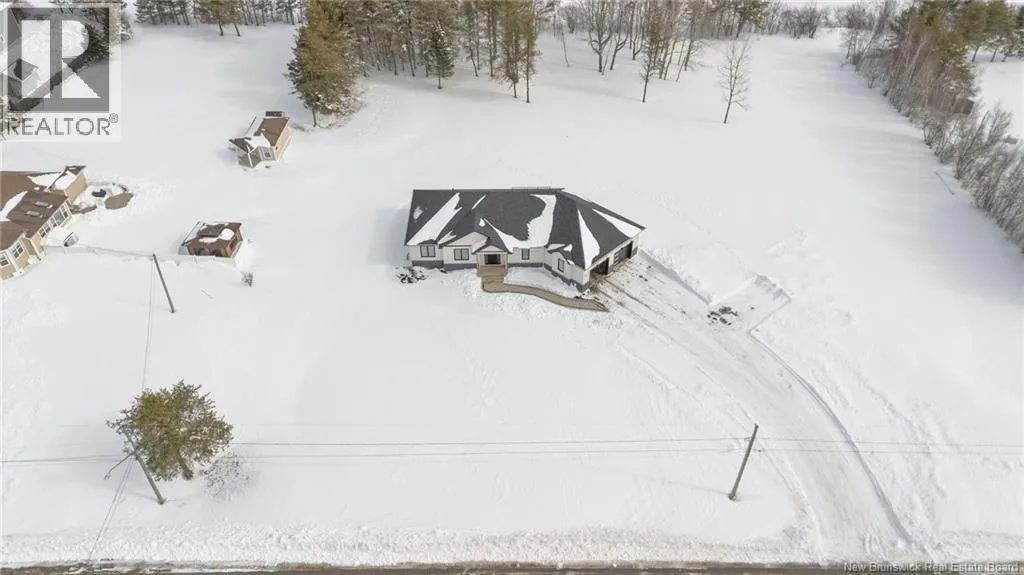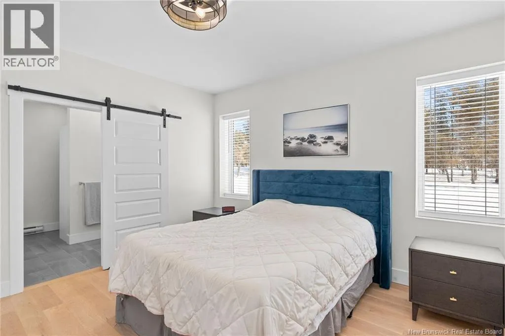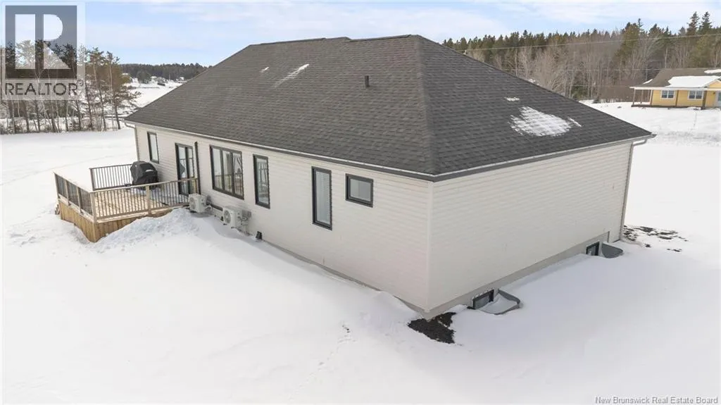 From NB-11 N take exit 32B for NB-515 O toward Sainte Marie. Merge onto Bd Irving/NB-515 W and then turn left onto All. Alyre. Property will be on the left. Welcome to 10 Allée Alyre, a custom-built raised bungalow completed in 2024 with water views! Situated on 1.7 acres on a quiet cul-de-sac near the water, this ICF-constructed home delivers outstanding energy efficiency, durability, and luxury. The front entry leads to a convenient laundry/mudroom with access to the attached double garage. Up two steps, the bright open-concept main floor features engineered hardwood, abundant pot lighting, and an efficient mini-split. The kitchen impresses with an oversized island with sink and bar seating, stone countertops, a white backsplash, stainless steel appliances, a walk-in pantry, and a dedicated coffee bar with trendy floating shelves. Patio doors off the kitchen lead to the large back deck while filling the space with natural light. The living room showcases a striking black shiplap fireplace with an electric insert and TV cutout. The primary suite features a sliding barn door to the ensuite, which includes dual sinks, a tiled shower with a window, and a walk-in closet. Two additional bedrooms and a 4-piece bath complete this level. The fully finished lower level offers a spacious family room, two bedrooms (one with an exceptionally large closet), a 3-piece bath, finished storage room, and utility space. Outside, the predominantly cleared lot offers treed privacy at the rear and plenty of space for outdoor enjoyment. This low-maintenance, practically brand-new luxury property is minutes from amenities and ready to welcome you home! (id:27476)