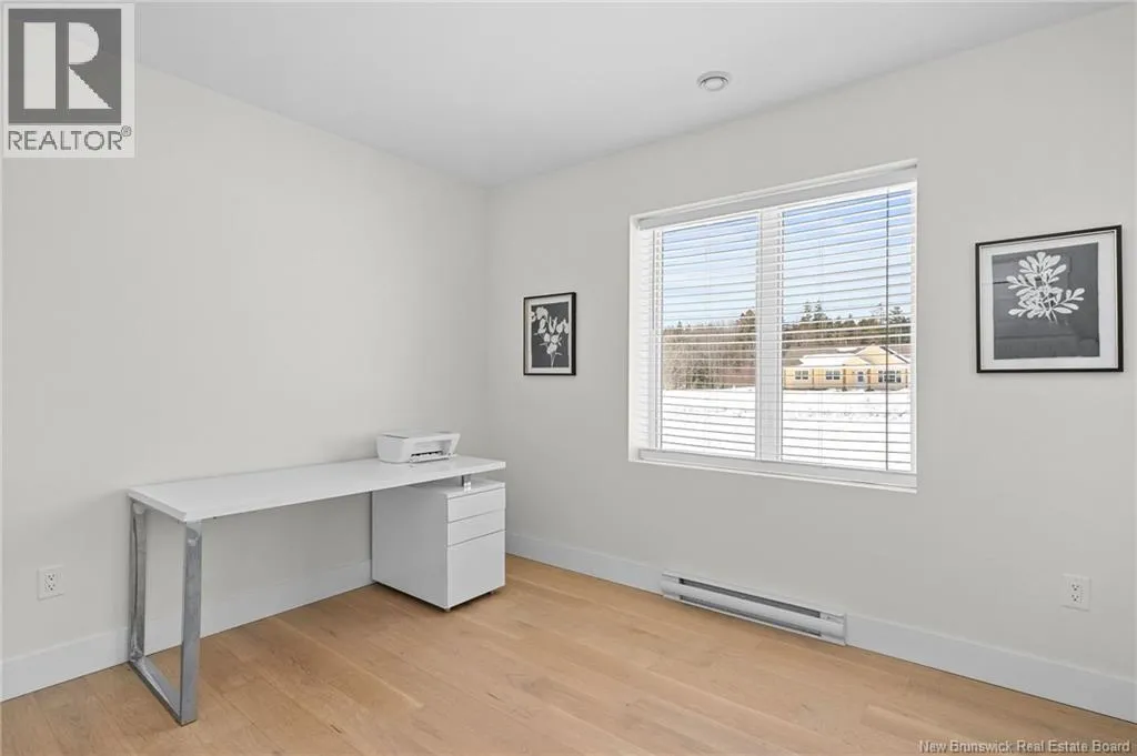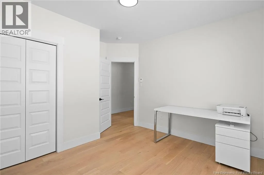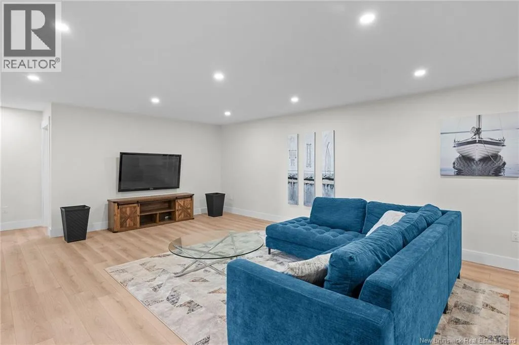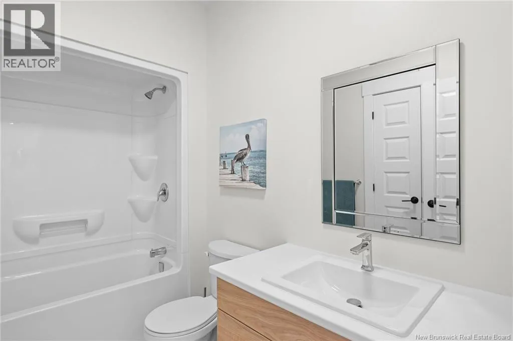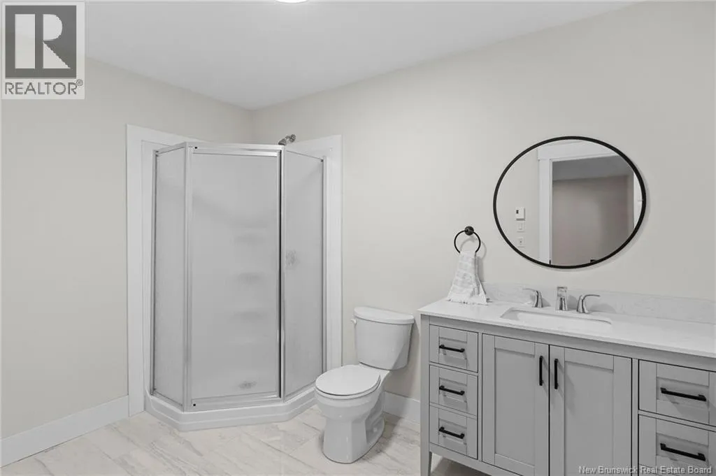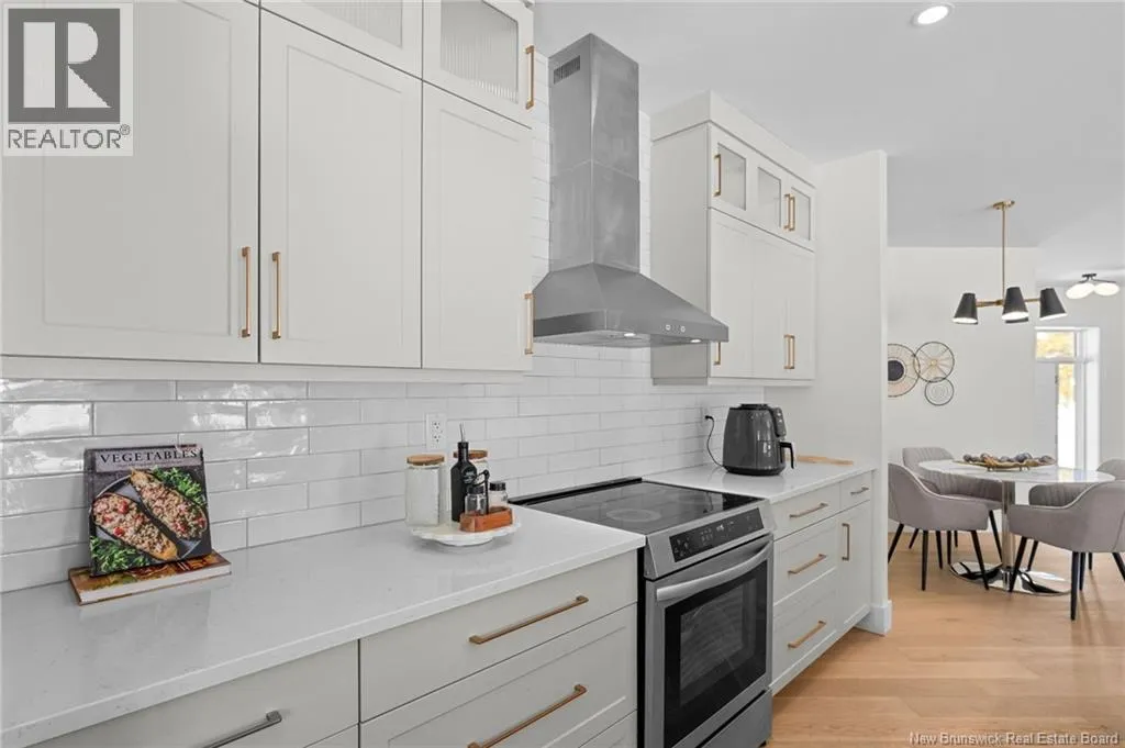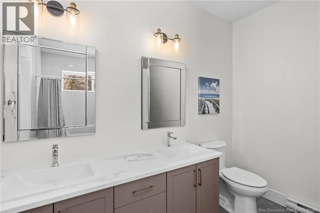 From NB-11 N take exit 32B for NB-515 O toward Sainte Marie. Merge onto Bd Irving/NB-515 W and then turn left onto All. Alyre. Property will be on the left. Welcome to 10 Allée Alyre, a custom-built raised bungalow completed in 2024 with water views! Situated on 1.7 acres on a quiet cul-de-sac near the water, this ICF-constructed home delivers outstanding energy efficiency, durability, and luxury. The front entry leads to a convenient laundry/mudroom with access to the attached double garage. Up two steps, the bright open-concept main floor features engineered hardwood, abundant pot lighting, and an efficient mini-split. The kitchen impresses with an oversized island with sink and bar seating, stone countertops, a white backsplash, stainless steel appliances, a walk-in pantry, and a dedicated coffee bar with trendy floating shelves. Patio doors off the kitchen lead to the large back deck while filling the space with natural light. The living room showcases a striking black shiplap fireplace with an electric insert and TV cutout. The primary suite features a sliding barn door to the ensuite, which includes dual sinks, a tiled shower with a window, and a walk-in closet. Two additional bedrooms and a 4-piece bath complete this level. The fully finished lower level offers a spacious family room, two bedrooms (one with an exceptionally large closet), a 3-piece bath, finished storage room, and utility space. Outside, the predominantly cleared lot offers treed privacy at the rear and plenty of space for outdoor enjoyment. This low-maintenance, practically brand-new luxury property is minutes from amenities and ready to welcome you home! (id:27476)