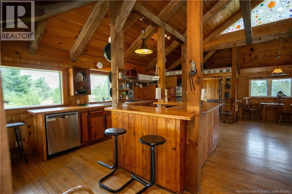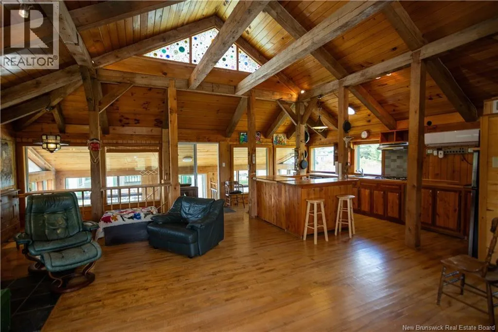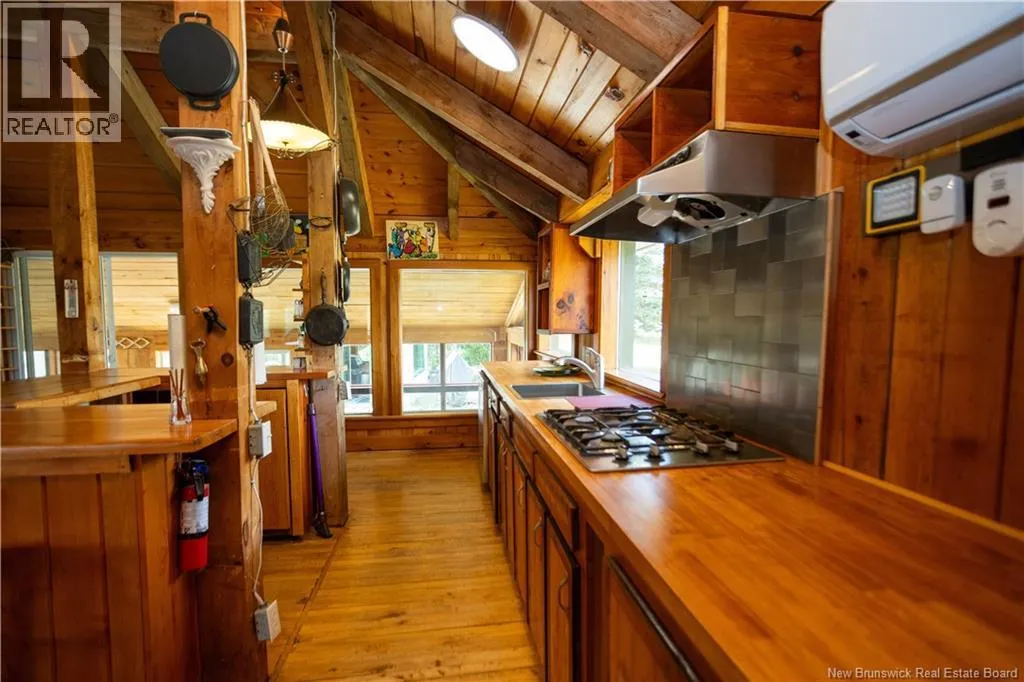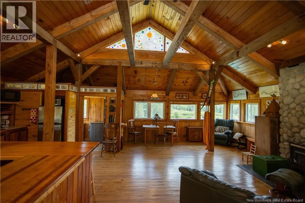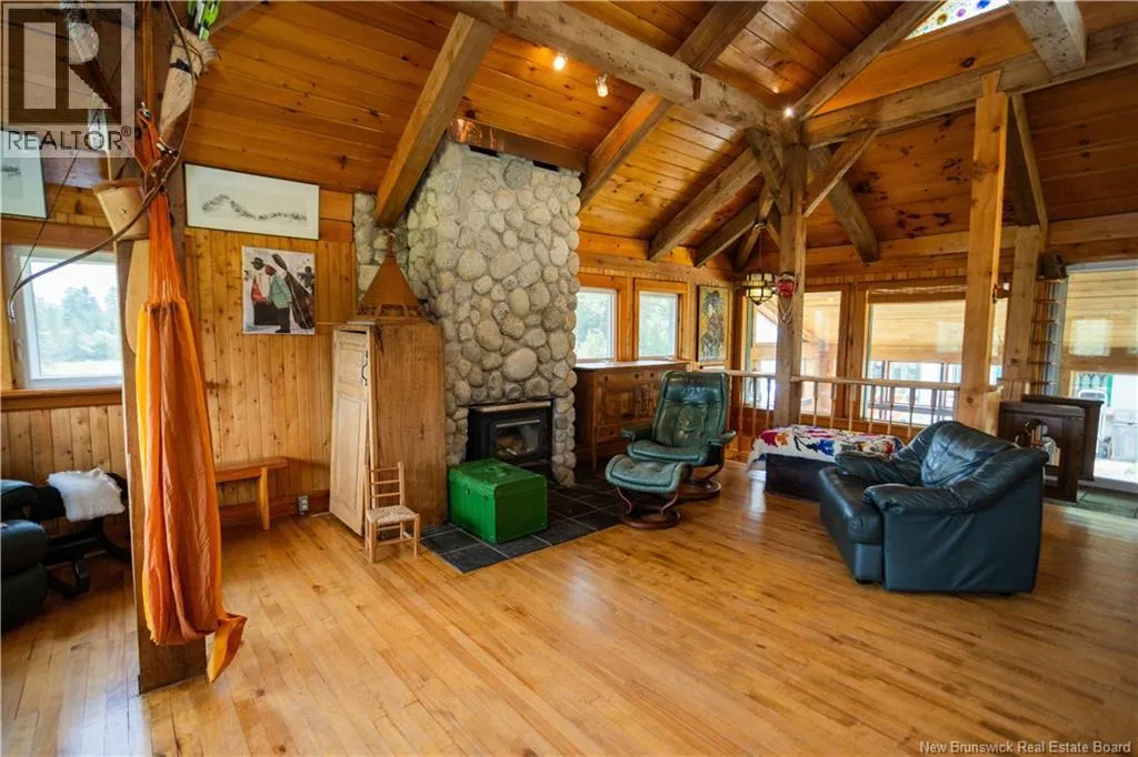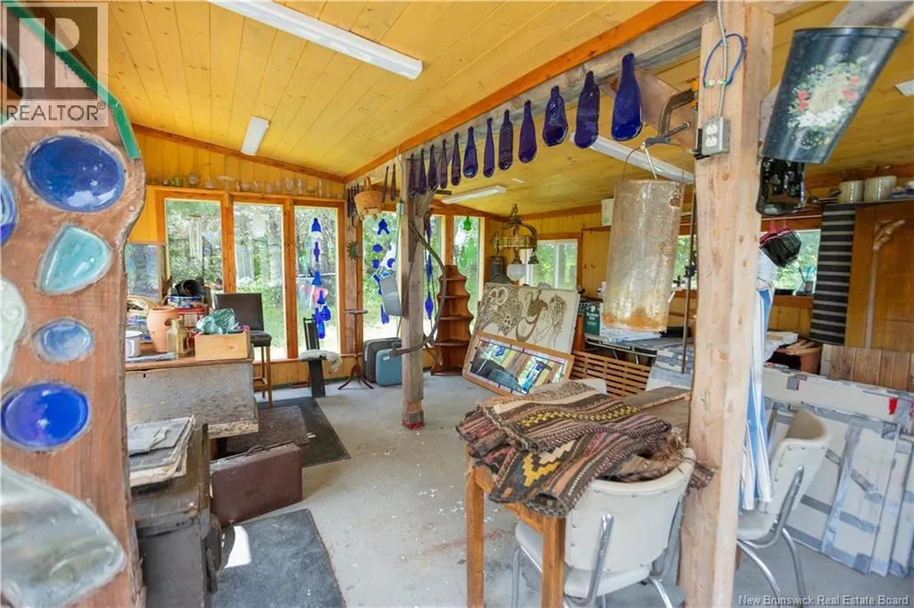 Rte 3 toward St.Stephen to Brockway. Civic 4199 is next driveway past civic 4195. Welcome to ""The Projects"" a totally unique rural retreat nestled privately into the landscape of Brockway NB along the banks of the Magaguadavic River. This 3.7 acre property reflects history & artwork throughout and features a 2 level 26 x 26 house, and 4 other outbuildings consisting of an Art Studio, Storage shed, Pizza shed - C/W custom built wood fired pizza oven and a 16 x 30 workshop. The Timber Frame construction highlights the uniqueness of all these structures especially the house which was set on a fully finished concrete foundation apprx 8 yrs ago. The main level is an open concept living/kitchen area with 1/2 bath & laundry and is complimented with custom stone chimney with woodstove, high open ceiling highlighting the wood frame structure / custom glass windows, ductless mini split heat pump and unrestricted views up & down the river. The lower level features a large common area with another woodstove, bedroom with full ensuite bath and custom cedar sauna, mechanical room and a fully covered walk out at the front providing storage and seating area. The property is a ""must see"" to encompass & fully understand all it has to offer. This river is the 6th longest in the province at 80 miles long and accessible right from your 230' (apprx) of waterfront. The Village of Harvey or McAdam are nearby, less than an hour to Fredericton and 45 mins to the US Border. (id:27476)