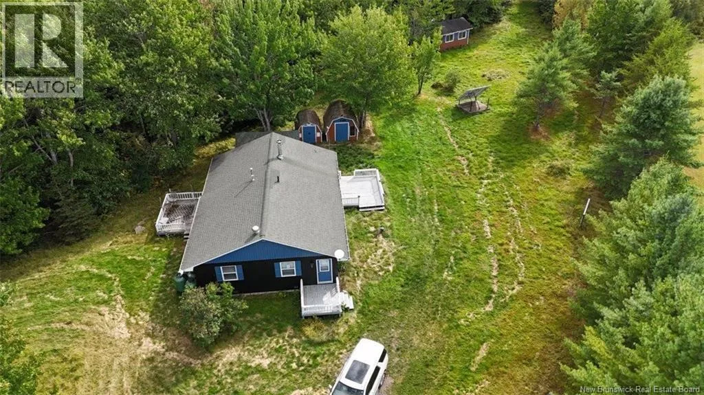 Route 10 to Grub Road, left onto Fernmount Rd, continue straight. Discover your own off-grid retreat just 30 minutes from Fredericton. Nestled on an oversized 5-acre lot that borders the peaceful Burpee Stream, this fully self-sufficient bungalow/cottage offers the perfect blend of comfort, privacy and nature. Step inside to an inviting open-concept kitchen and dining area, complete with ample cabinets, a gas cook stove, fridge and tiled floors. Garden doors lead from the dining room to a sunny deck overlooking your massive private property. The spacious living room features hardwood flooring and French doors that connect both to the dining area and to the back entry, creating a functional flow throughout the home. Cozy up beside the propane stove by the laundry area. The home offers two comfortable bedrooms, including a large primary with direct outdoor access. The full bath is generously sized, featuring a corner shower, tiled floors, a large vanity and a relaxing whirlpool soaker tub, the ultimate spot to unwind at your own happy place. Outside, the property shines with multiple storage sheds, a large workshop and unmatched privacy. Whether youre strolling to your Burpee Stream frontage, enjoying evenings by the fire, or simply soaking up the peace and quiet, youll feel a world away, yet close enough for convenience. If youve been searching for a self-sufficient lifestyle, a weekend escape, or a private year-round home surrounded by nature, this rare find delivers it all. (id:27476)