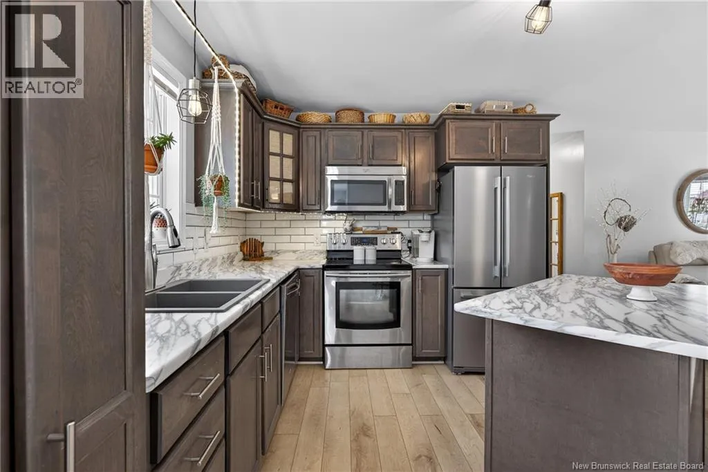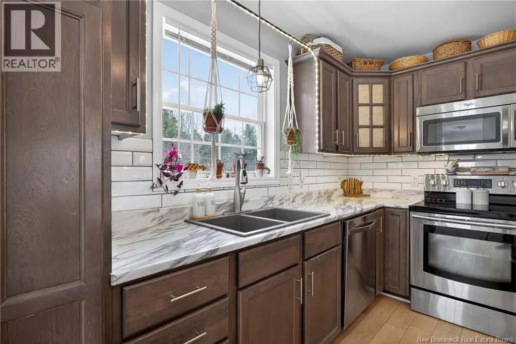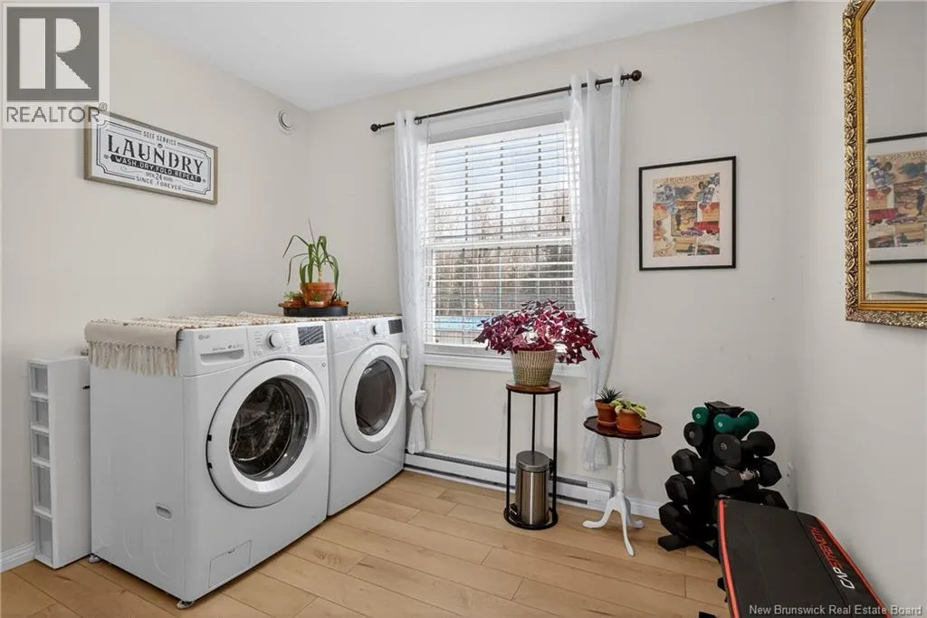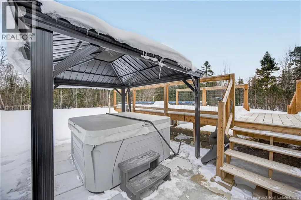 From Waasis Road, take Windgate Avenue to Lindsay Lane. The property is at #33 Lindsay Lane. The word that comes to mind when describing this home is undoubtedly oasis. Its not just the location, which is a private and peaceful setting for locals and members of CFB Gagetown alike, but the way the home was designed. On a little over an acre of land, this 3 bedroom 2 bathroom bungalow has been curated over the last several years to reflect a tranquil retreat. Outside, you have tons of space, along with a heated saltwater pool(2021) and newly added hot tub(2024). The addition of a 24x24 detached garage (2022) makes winter parking and toy storage easy. Inside, youll find a beautiful open concept space with new and cohesive laminate flooring, an updated kitchen with subway tile backsplash and space for dining, along with a spacious living room. The large primary is located on one side of the home and features an ensuite with jacuzzi tub. There is another full bath and two bedrooms located on the opposite side of the house. The washer and dryer are currently located in one of them, however it can be moved back downstairs upon buyer request. Downstairs is unfinished, but could accommodate a 4th bedroom, 2nd living space, and is roughed in for a 3rd bathroom. Upgrades also include a ductless heat pump and radon mitigation system. All of this, combined with a fantastic community of neighbours who look out for each other, make this home an ideal candidate for locals and those posted alike! (id:27476)