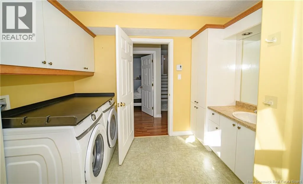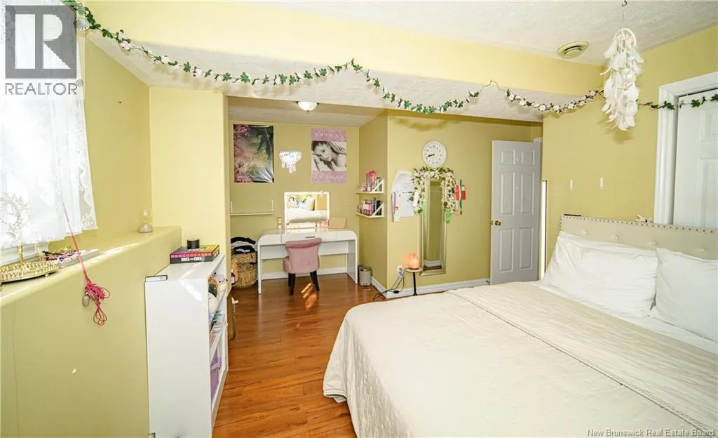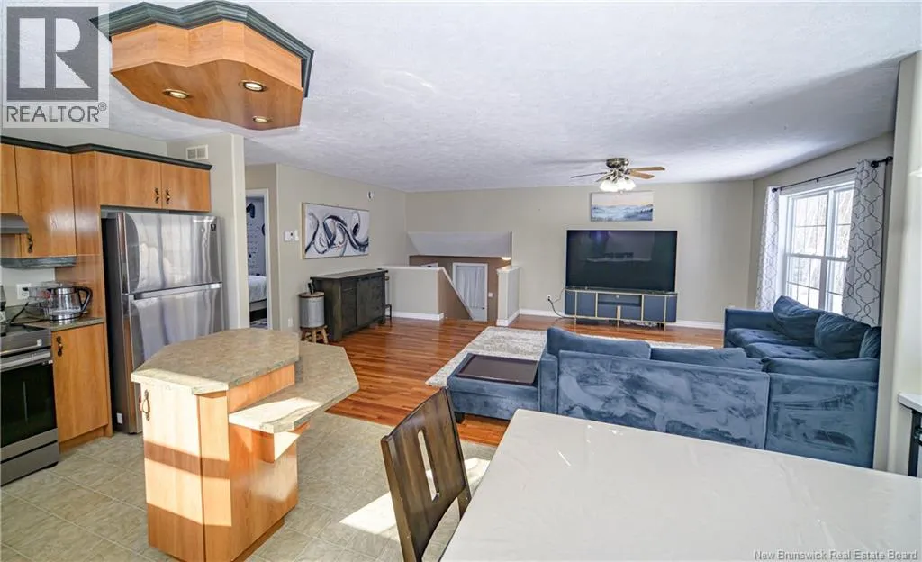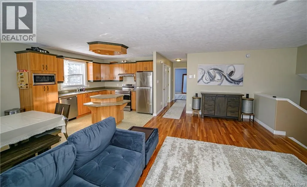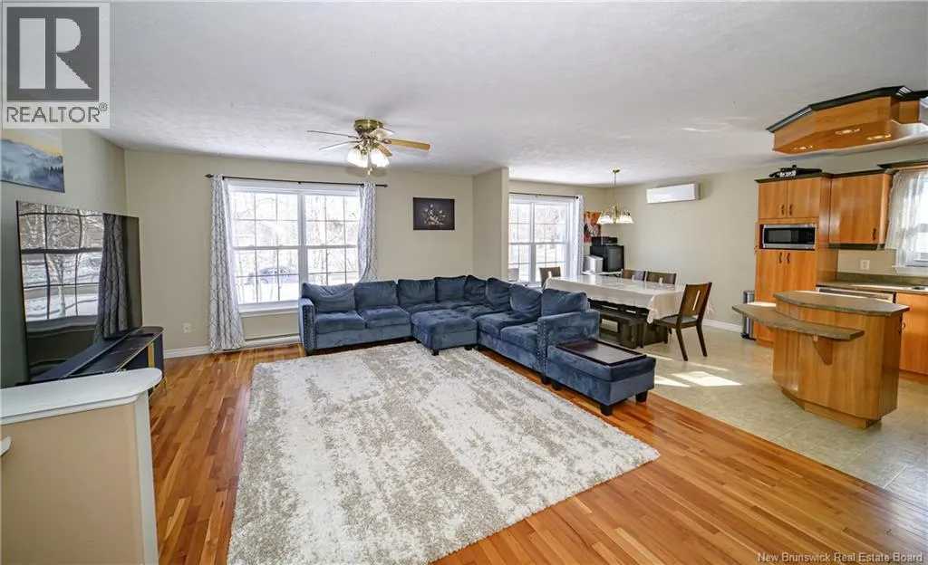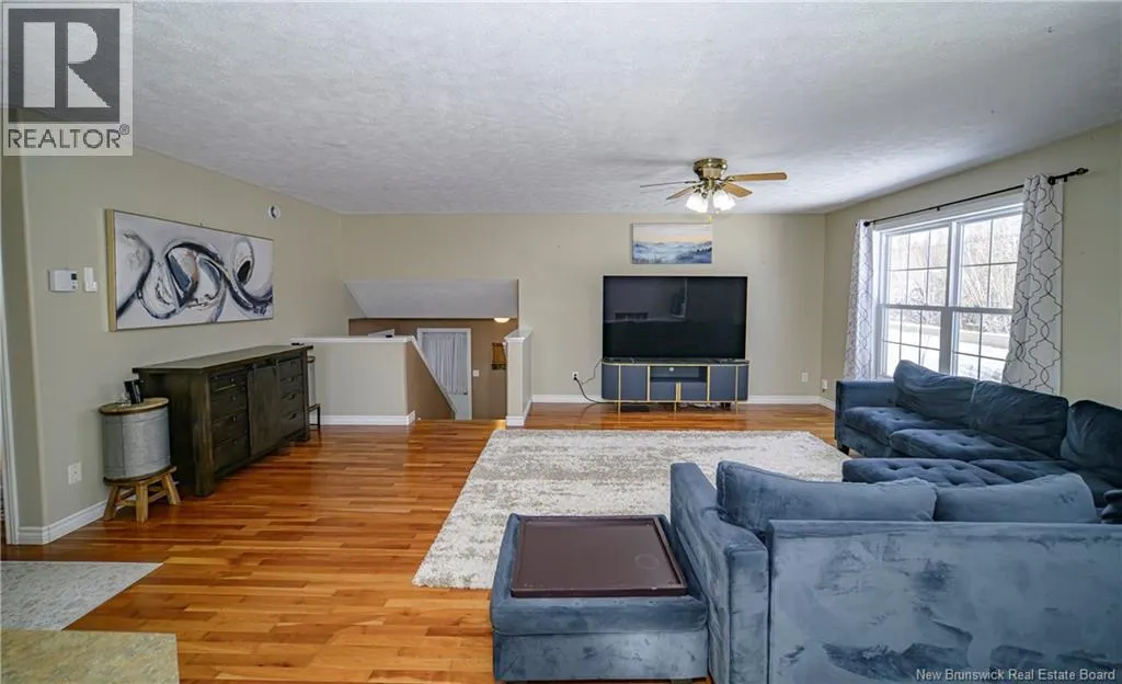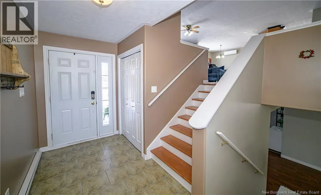 Route 102 towards Burton right onto Devost, left onto London, right onto Thompson, right onto Irene, house on left Spacious and functional side split in desirable Burton subdivision. Designed for comfortable family living, this home offers bright open-concept main living area with seamless flow between kitchen, dining, and living spaces. Main floor includes two bedrooms and main bathroom, while lower level adds even more living space with huge family room, two additional bedrooms, and second full bath with laundry. Every bedroom features large closet, and spacious foyer with closet provides practical entry point with access to both the backyard and attached garage. With two heat pumps, one on each level, this home is well equipped for efficient heating and cooling year-round. Beautifully landscaped. Minutes to Oromocto and base Gagetown. (id:27476)