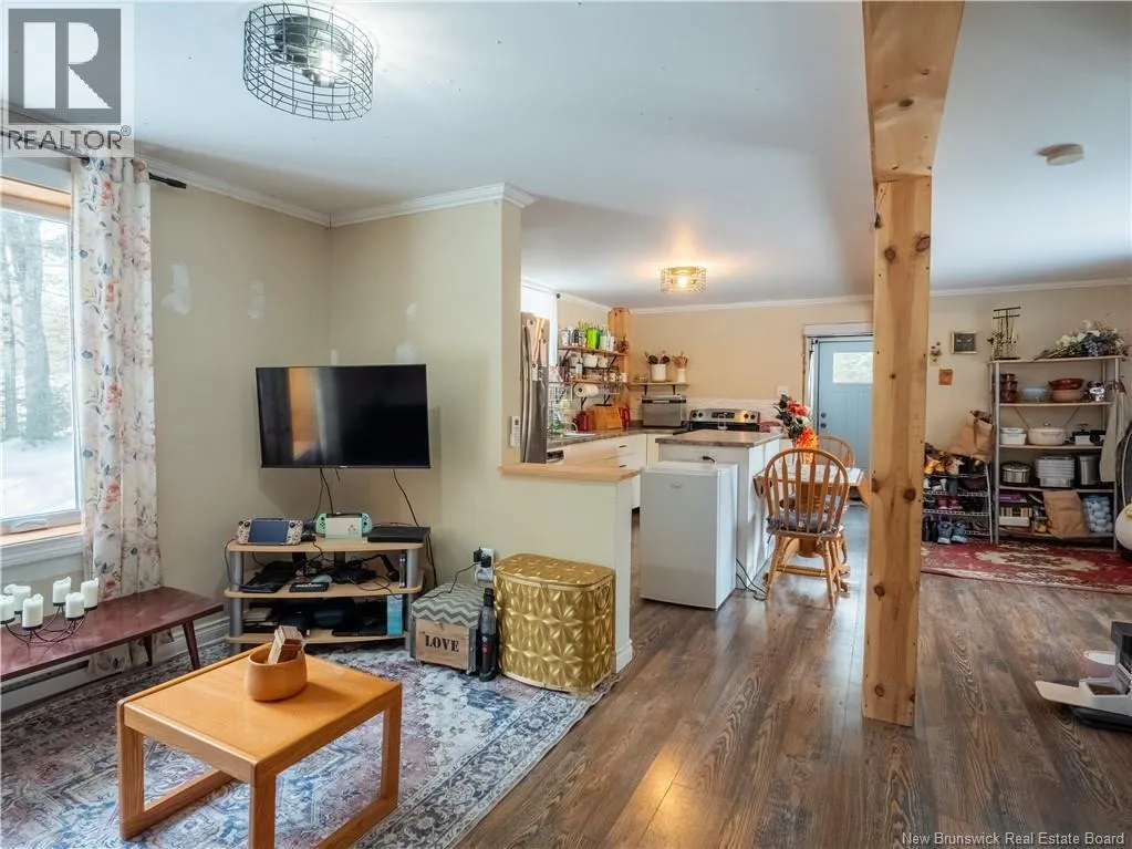 Route 105 to Route 104 onto Jones Forks Road, right onto Route 617, left to Dorn Ridge Road. Civic #15 Tucked away on a private, tree-lined 1.2 acre lot, this charming 1.5 storey home offers peaceful country living with the stunning Jones Forks stream flowing right through your property. Spend your summers fishing from your own lawn, watching wildlife wander by, and soaking in the serene natural views that surround you. This picturesque setting even offers space for horses! The perfect rural retreat for outdoor enthusiasts. Inside features a bright open-concept kitchen, dining, and living area, along with a full bathroom on the main level. Upstairs has two spacious bedrooms filled with natural light. Recent upgrades include a new metal roof, three ductless heat pumps (one on each level) for efficient heating and cooling, new windows, and a new sliding patio door showcasing river views. The basement has been spray foamed for added insulation, houses the laundry and has lots of space for storage. Located 25 minutes from downtown Fredericton and just minutes away from a local gas bar and convenience store, close to snowmobile and off-road trails, plus only 15 minutes to Crabbe Mountain ski hill, this property blends tranquility with convenience and year-round recreation for an affordable price! (id:27476)