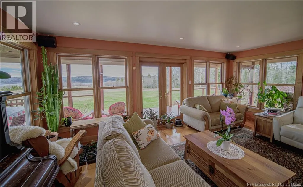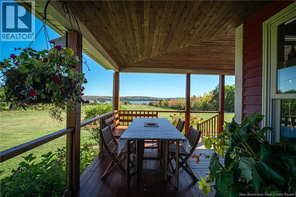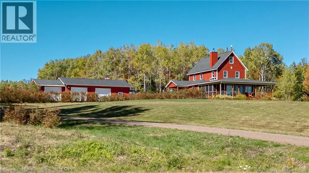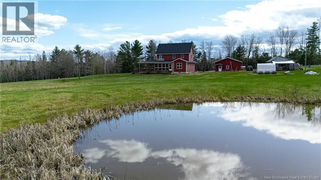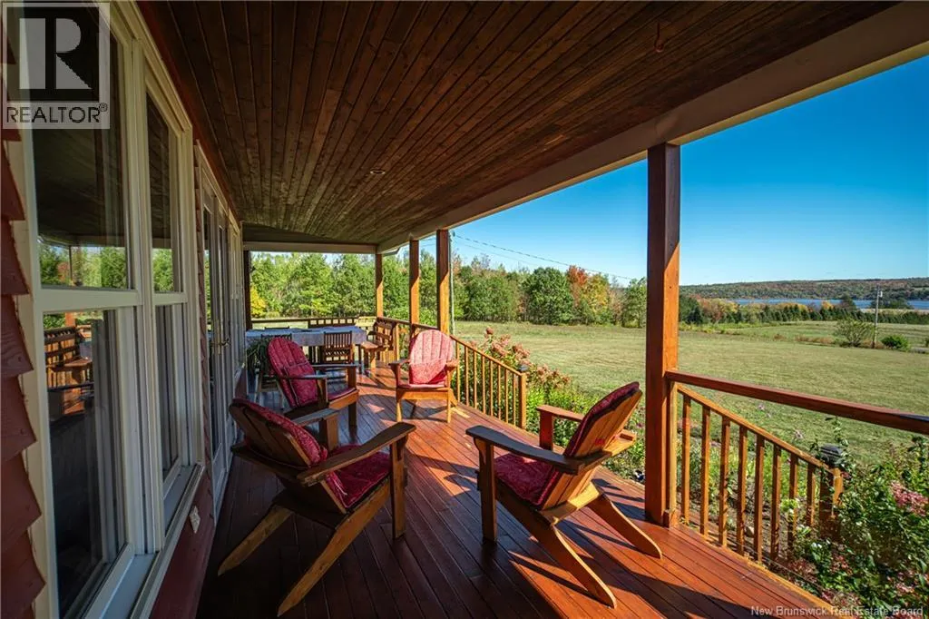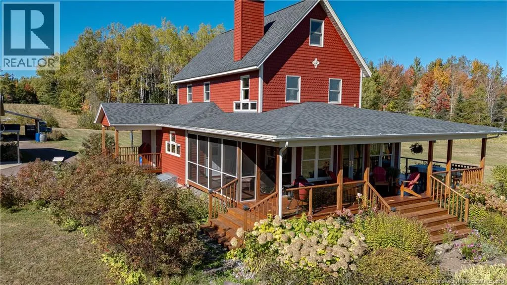Route 695 to Route 715 (Lower Cambridge Road), property on right Set atop serene countryside hilltop with panoramic views of Washademoak Lake, this extraordinary farmhouse blends timeless charm with modern comfort. Built in 2001, craftsmanship is evident throughout, from wraparound veranda and two screened-in porches to warm, rustic interior. Main level features custom kitchen with island, seamlessly flowing into living and dining areas where floor-to-ceiling windows frame stunning lake views. Radiata Pine trim and doors from New Zealand pair beautifully with cabinetry crafted from century-old reclaimed wood, merging global and local artistry. Main floor primary suite offers ensuite with classic clawfoot tub. Upstairs, youll find office and second bedroom with attached bath, plus finished loft perfect for guests or hobbies. Walkout lower level includes ample storage, half bath, and craft area with utility sink. 93 acre property is fabulous for long walks, snowshoeing, or cross-country skiing. Three-bay garage features walk-in cooler and craft room, along with additional outbuilding providing space for equipment and maintenance. With Energy-efficient geothermal heating system and breathtaking natural surroundings, this property is perfect as private retreat, hobby farm, or homestead dream. (id:27476)