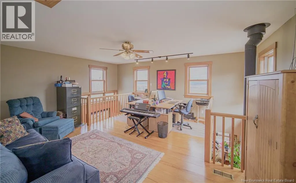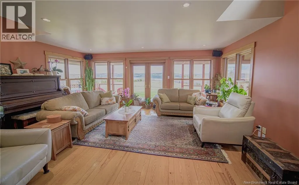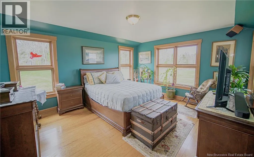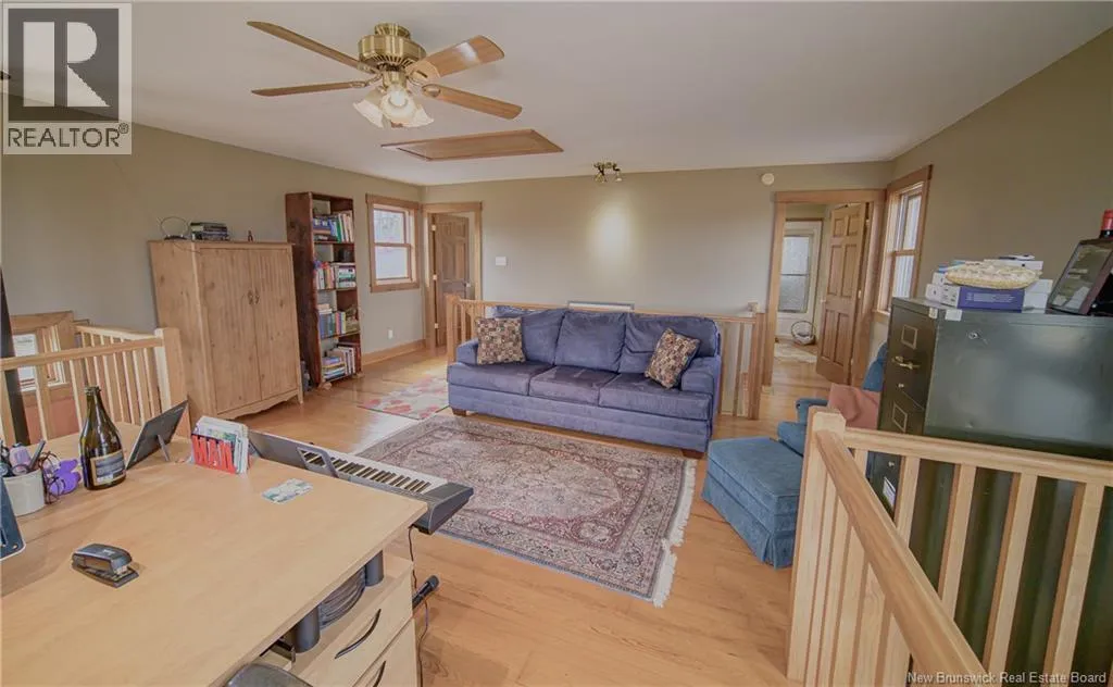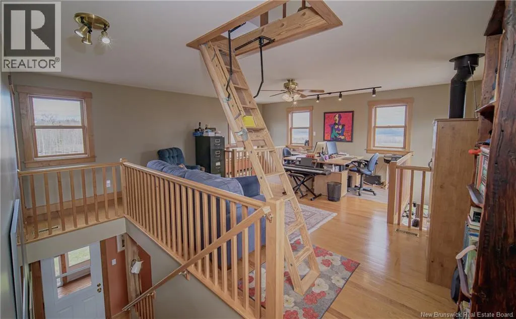 Route 695 to Route 715 (Lower Cambridge Road), property on right Set atop serene countryside hilltop with panoramic views of Washademoak Lake, this extraordinary farmhouse blends timeless charm with modern comfort. Built in 2001, craftsmanship is evident throughout, from wraparound veranda and two screened-in porches to warm, rustic interior. Main level features custom kitchen with island, seamlessly flowing into living and dining areas where floor-to-ceiling windows frame stunning lake views. Radiata Pine trim and doors from New Zealand pair beautifully with cabinetry crafted from century-old reclaimed wood, merging global and local artistry. Main floor primary suite offers ensuite with classic clawfoot tub. Upstairs, youll find office and second bedroom with attached bath, plus finished loft perfect for guests or hobbies. Walkout lower level includes ample storage, half bath, and craft area with utility sink. 93 acre property is fabulous for long walks, snowshoeing, or cross-country skiing. Three-bay garage features walk-in cooler and craft room, along with additional outbuilding providing space for equipment and maintenance. With Energy-efficient geothermal heating system and breathtaking natural surroundings, this property is perfect as private retreat, hobby farm, or homestead dream. (id:27476)