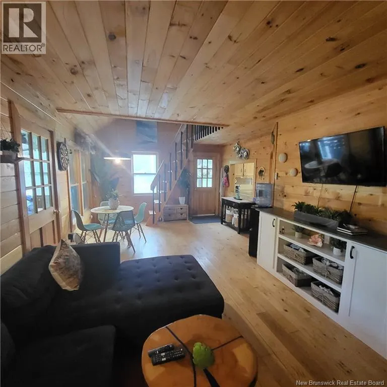 Just over bridge to Lower Cambridge Road to Amos Shore Lane to Maple Grove Lane What a gem, beautiful 3 bedroom cottage + separate 2 bedroom bunk house, very cozy and in a great condition, ready to provide years of memories for you and your family. The main cottage has an open kitchen/ living room floor plan with propane stove, full bath + primary bedroom + a great loft space set up with 2 bedrooms + skylight. Wood floors, walls + ceilings are beautifully finished and give an amazing looking finish throughout. The main cottage can sleep eight while the bunk house (18 x 20) can easily sleep six and is also nicely finished with a bathroom and great loft space. Awesome covered porch to enjoy the amazing views of Washademoak Lake, only steps to the beach perfect for swimming and all water sports, your own 80-foot dock included, which has deed access. Firepit and plenty of lawn space for plenty of outdoor enjoyment. (id:27476)