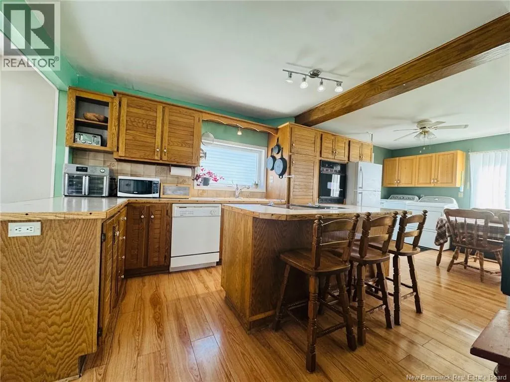 Entering Campbellton on HWY 134, take arran street, continue straight at set of lights, turn right onto Gerrard Street, house is on your right. This 5-bedroom, 2.5-bath home with large garage comes with a view of Sugarloaf Mountains and is walking distance to schools, churches and amenities. The main floor offers a functional layout featuring a kitchen with island, open to dining area where you can enjoy the views of Sugarloaf Mountains, large bright family room with patio doors to back deck, and a convenient bathroom with shower. Upstairs, you will find full bathroom with tub, 5 bedrooms (4 non-conforming- window's non-egress), the primary bedroom has plenty of storage in the built-in drawers and desk area. The property features two separate basement areas with different access points. One section is unfinished, ideal for storage or a workshop. The finished basement side has additional living space, perfect for an office, along with a half bath for added convenience. Outside, enjoy a large, detached garage with electricity plenty of space for storage or a workshop and the back deck that is ideal for relaxing or entertaining during the warmer months. Included: Fridge, stove top, built-in oven, washer, dryer, deep freezer in garage etc..Come see in person, this one feels like home the moment you walk in, Call your REALTOR® today! (id:27476)