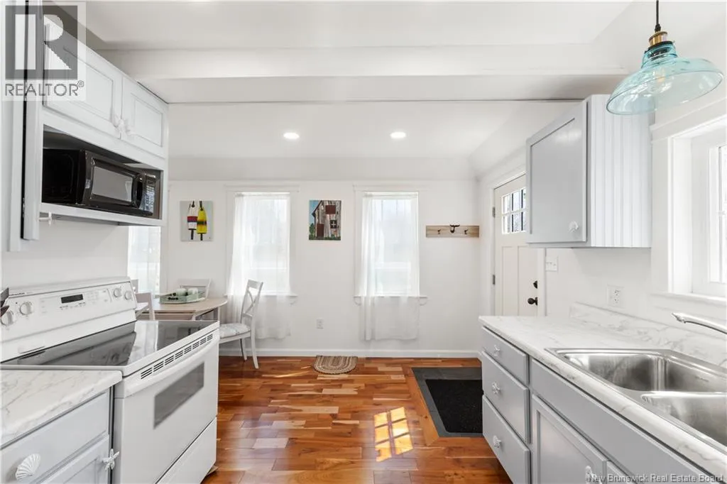 From the Lubec bridge, take highway 774 to the intersection just past The Porch, then turn left onto North Rd, home is on the left. From the ferries, turn right onto North Rd, home will be on the right. Campobello Island is calling your name! This 2 bedroom, 1.5 bathroom home has been completely transformed into a bright, airy and cozy seaside cottage. Located a few minutes from the ferry landing and within walking distance to the restaurant and beach, this home sits on 0.3 acres of waterfront property with spectacular views. It has a large grass yard, mature trees and a picturesque shingle garage for extra storage. The home is also built with a charming shingle exterior and has a wrap around deck for plenty of outdoor living space. As you walk inside you are immediately greeted with a pleasing open-layout and tons of natural light. The kitchen is charming and cute with an eat-in area, leading you into the living room and half bath off of that. The views looking out to the water from the living room are simply beautiful. Upstairs there are 2 nice sized bedrooms and a full bath. The home has been tastefully updated and includes most of the furnishings, making it a wonderful Airbnb opportunity or move-in ready summer home. Campobello is the next up-and-coming tourist destination, now is the time to invest in the bold coastlines of the Fundy Isles! (id:27476)
