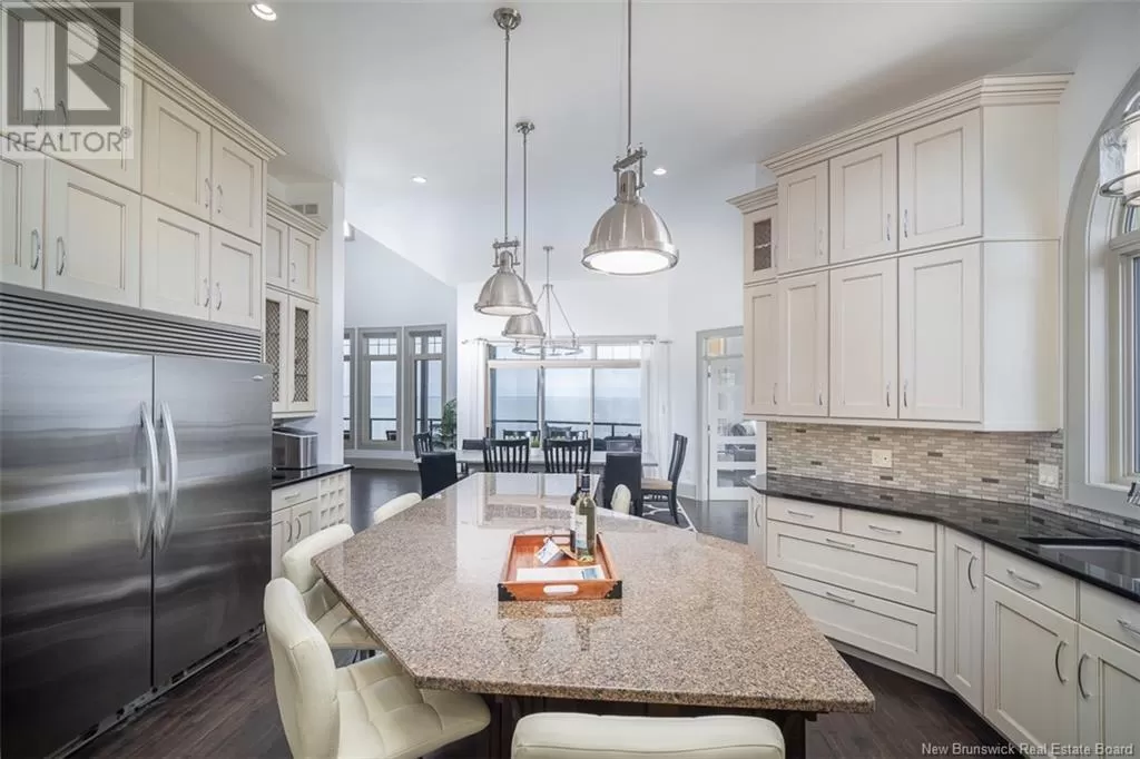 From Highway NB-15E, take exit 53 towards Cap-Pelé. Turn right and continue on Chemin Bas-Cap-Pelé for approx 4.7km, then turn left onto Wilfred St. The House is straight at the end, on the corner of Wilfred St and Janice Lane. Airbnb is completely booked for the season into Labour Day for approximately $1200/night (plus Airbnb fees). Experience luxury coastal living at its finest in this exquisite waterfront home set on 1.42 acres of serene beauty. From the moment you enter, natural light floods the foyer and carries through the spacious sitting room with its cozy built-in fireplace. The gourmet chefs kitchen is a showstopper, boasting stainless steel appliances, ample cabinetry, two sinks, and a large center island. The dining room offers seamless indoor-outdoor flow with patio doors leading to not one, but two separate decks. The living room stuns with lots of windows, a dramatic fireplace, and breathtaking panoramic views. The main floor also hosts the luxurious primary suite, complete with walk-in closets and a spa-inspired ensuite, as well as a home office and two convenient 2PC baths. Downstairs, the walkout basement provides two generous bedrooms, each with its own 3PC ensuite, a gym, and additional storage. Above the triple-car garage, a bonus room offers even more flexibility with a full bath and ample space. Outside, enjoy an inground pool, expansive landscaped grounds, large shed, and an oversized drivewayall perfectly positioned to capture mesmerizing sunrises and sunsets over the water. Currently operating as a successful Airbnb, this property offers the added bonus of extra incomemaking it a smart investment as well as a beautiful place to call home. Call today! (id:27476)
