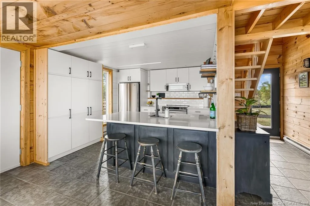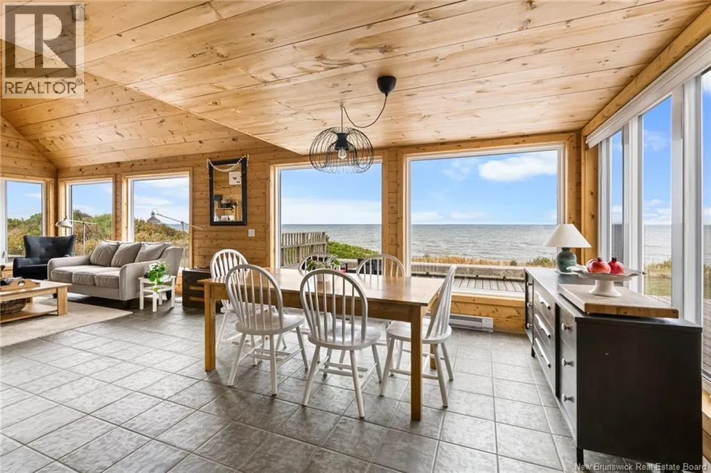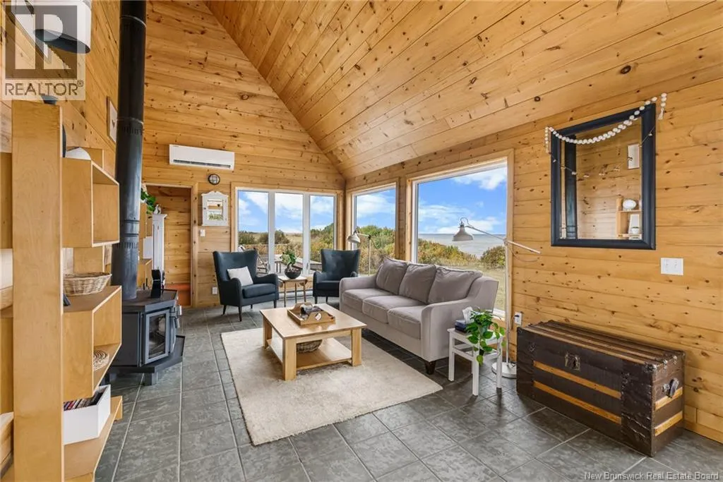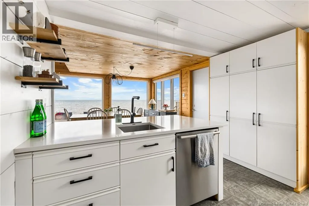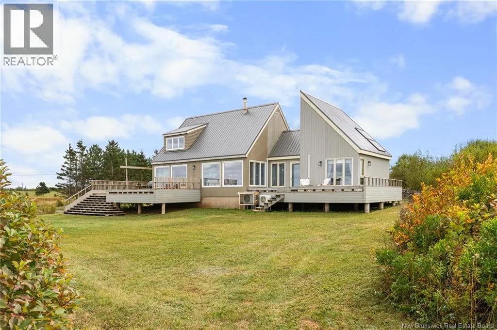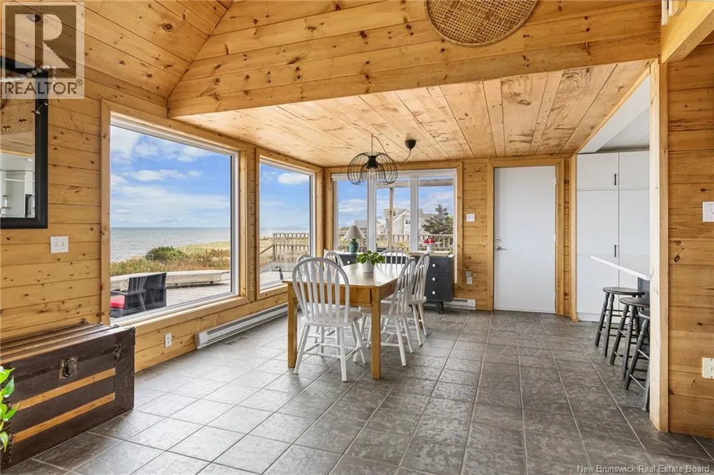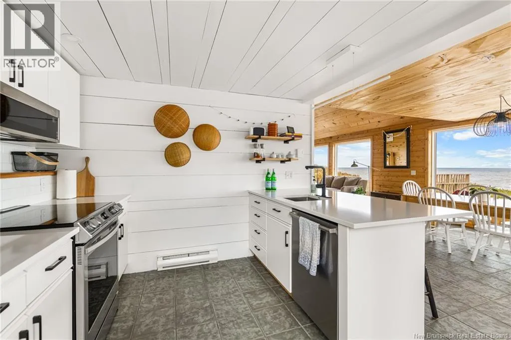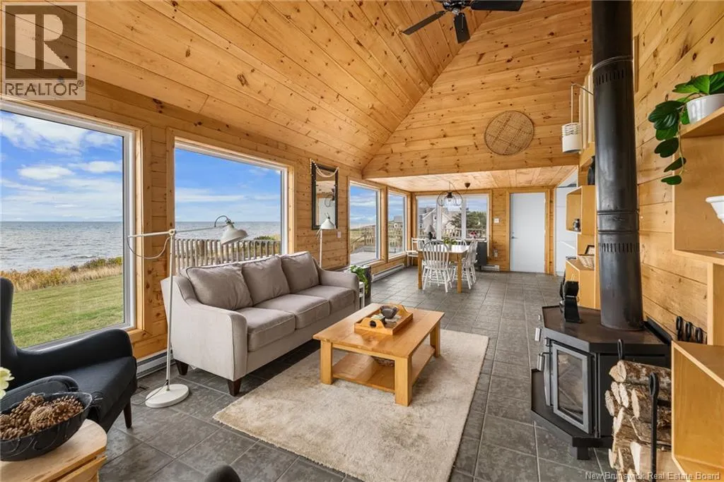 From HWY 15 east bound, take EXIT 53 then turn righ onto Rte 950, Off Rte 950 Ch Bas Cap-Pele, turn left onto Allée des Colibris, Allée des Colibris turns to the left and becomes allée de la Falaise. Welcome to 1148 Allée de la Falaise, Cap-Pelé, NB Your Dream Oceanfront Home Awaits! Imagine waking up to breathtaking ocean views every day! This architecturally designed home offers panoramic vistas from every window, letting you enjoy stunning sunrises and sunsets.The open-concept living space features a modern white kitchen with quartz countertops, perfect for meal prep. The living room boasts vaulted ceilings and a cozy wood stove to keep you warm during winter. Adjacent is a charming den ideal for relaxing with a book while watching fishing boats pass by.The main floor also includes a bedroom with a loft, a cozy game room nook, a 3-piece bathroom, mudroom, and laundry. Upstairs, you'll find a peaceful bedroom with views of the strait and a third bedroom with a four-bunk setup perfect for kids or guests.Step outside to the wrap-around patio, accessible from three doors on the main floor, and enjoy the view after a long day. Updates include a new aluminum roof, triple-glazed windows on the north side, and a freshly landscaped yard with a new 'Pétanque' field.Whether you're looking for an investment property or a place to call home, this is a must-see. Call your REALTOR® today! (id:27476)