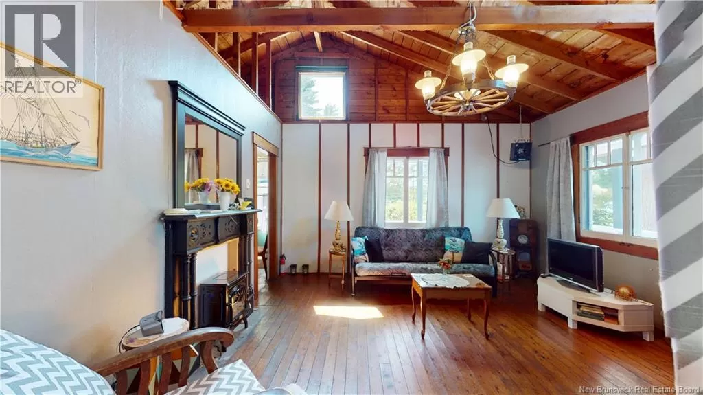 From West/Grand Bay side- take Westfield Ferry, slight left onto Harding Pt Landing Rd and continue past Crystal Beach onto NB 845-E. Turn left onto Purdys Point Rd to destination. From Quispamsis side - Gondola Pt Arterial Ferry, left onto NB 845-E, right onto Williams Rd, left onto NB 845-W, right onto Purdys Point Rd to destination. Discover your waterfront retreat at 26 Purdys Point, located just past Crystal Beach in Carters Point. With its charming cottage-core curb appeal, vaulted ceilings, exposed beams, and timeless original character, this cozy getaway is full of warmth and charm. Step inside to find a spacious living area, an updated galley kitchen, a separate dining space, and original wood floors that pair beautifully with the wood ceilings above. This 3-season cottage features two generously sized bedrooms, a spacious bathroom, and a sunroom that offers optional guest accommodations. Multiple access points lead you outdoors to your own private oasis175 feet of beachfront where your Kingston paradise awaits. Lovingly maintained by only two families over its 100+ year history, the property includes newer windows, a 2012 roof, and a shed for extra storage. All furnishings are included in the sale, with the exception of the BBQ and two wicker chairs. (id:27476)