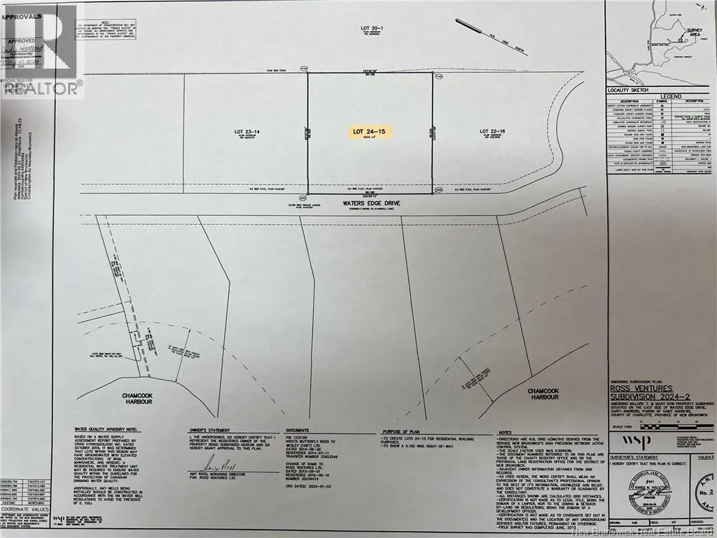 Waters Edge Drive is located off of Glebe Road in Chamcook NB Discover the perfect setting for your Coastal Dream HOME on this 1-acre (+/-) water view building located on Waters Edge Drive in Chamcook(off of Glebe Road), New Brunswick. This beautiful parcel offers views of Chamcook Harbour along with deeded access to the water, giving you the ideal balance of scenic outlook and shoreline enjoyment. Surrounded by natural beauty and privacy, this property provides a peaceful environment to build a year-round residence or seasonal retreat. With the groundwork ready for your vision, you can design a home that captures the stunning COASTAL landscape and relaxed East Coast lifestyle. Conveniently situated just minutes from the charming seaside town of St. Andrews By-the-Sea, youll enjoy easy access to world-class golf, fine dining, boutique shopping, and vibrant waterfront attractions while still enjoying the tranquility we all desire.. Please Note: Protective Covenants & HST Apply. (id:27476)