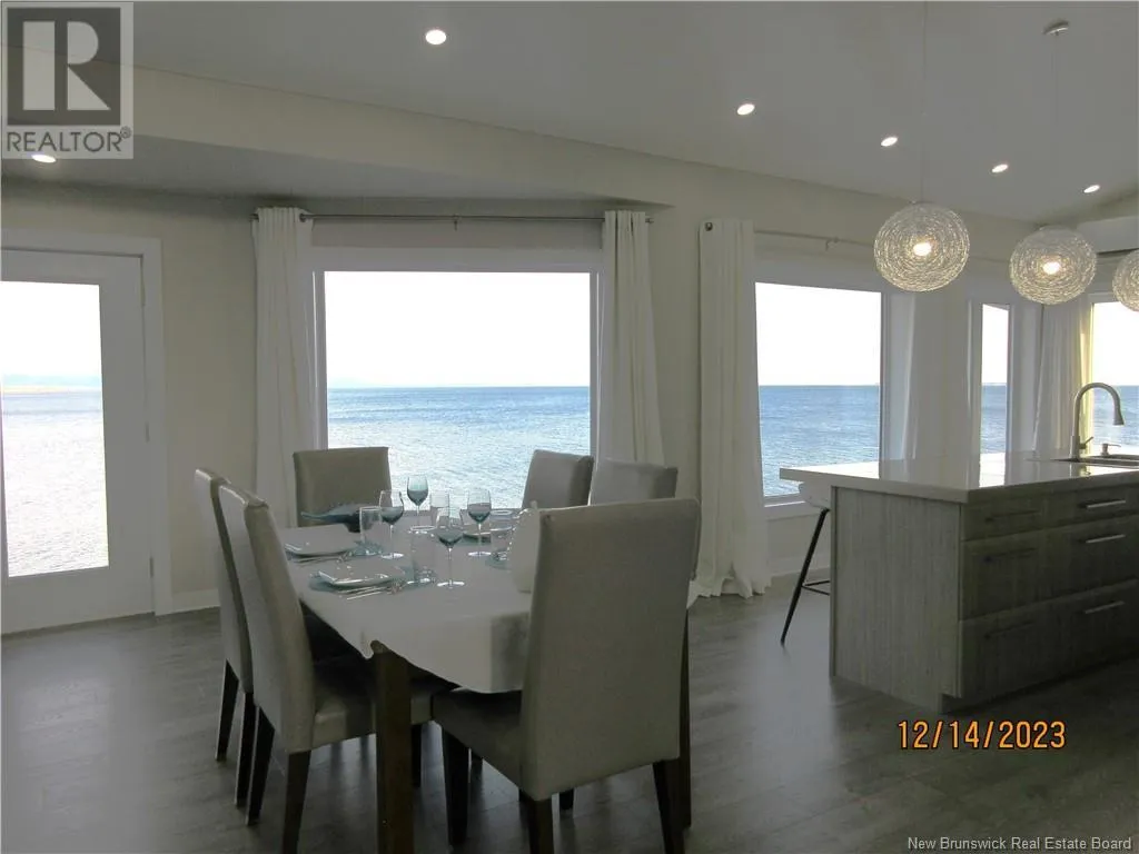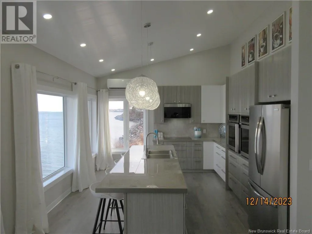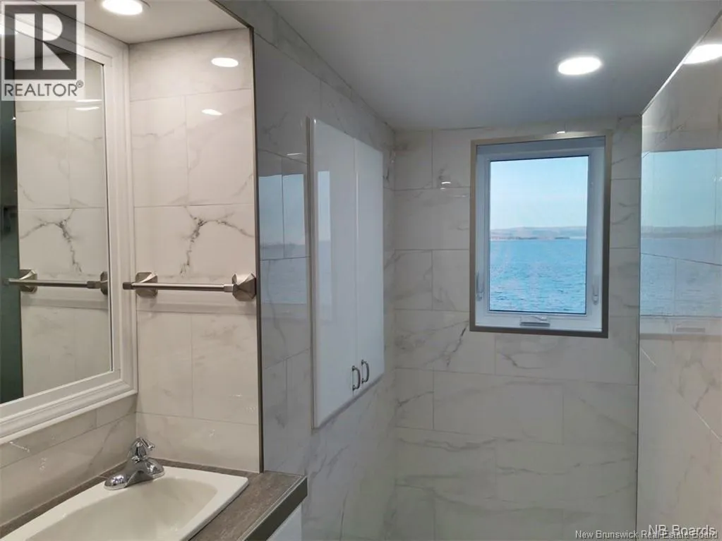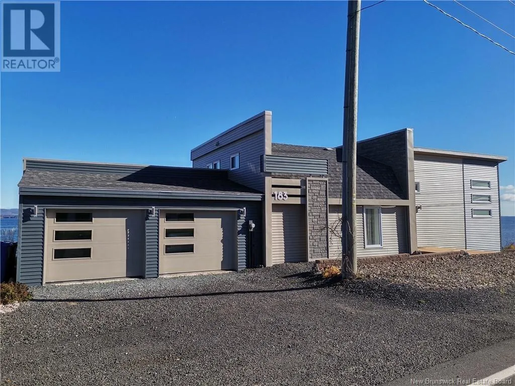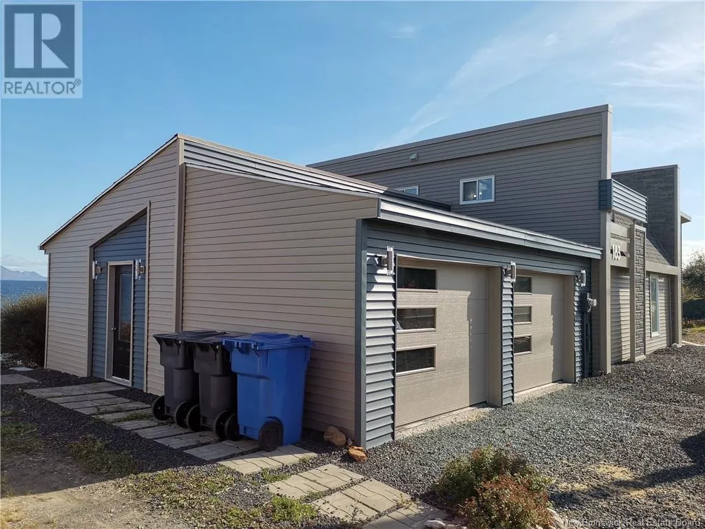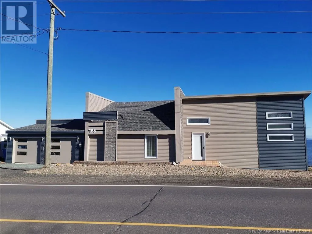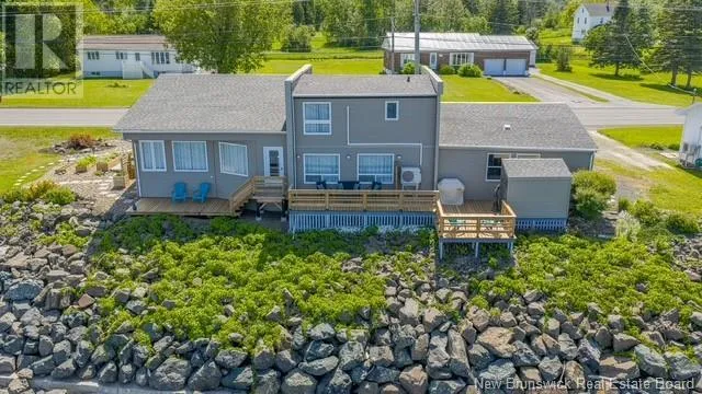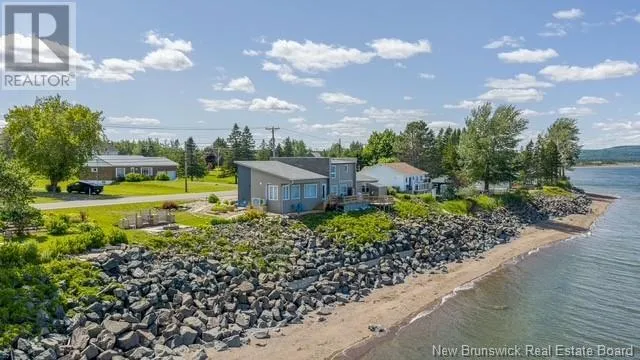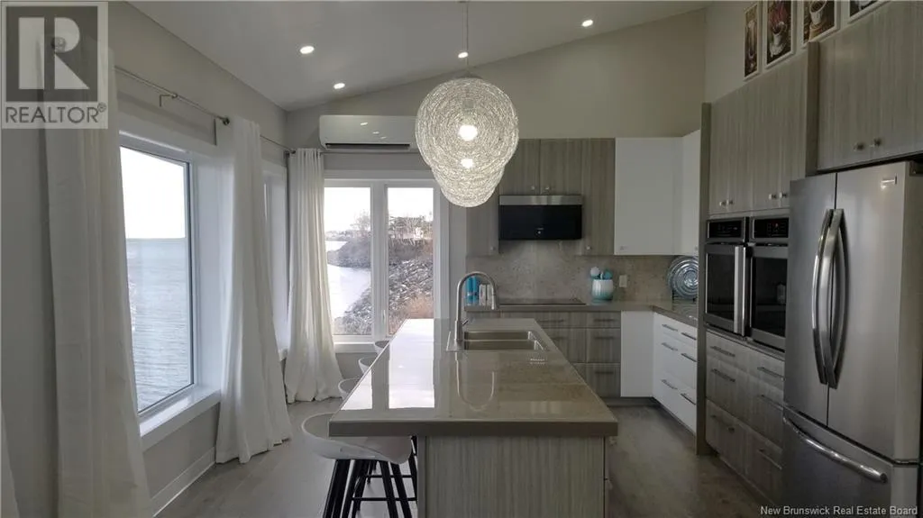 WATERFRONT property, this contemporary home has been redesigned, remodeled and updated, both inside and outside. The pictures are just a glimpse into what this home offers. You will fall in love with the custom designed new addition, its Cathedral ceiling and absolutely stunning views. The front entrance leads to the open concept custom kitchen and dining area with views in every direction. Off the kitchen is a large walk-in pantry that accommodates an additional fridge and leads to the laundry area. From the dining room, you enter the living room which features more amazing views and then on to the main floor bedroom, full bathroom and side entrance to the 2-car garage. The upper floor features the master suite with another stunning view, fireplace, large walk-in closet and a 3-piece tiled bathroom with custom walk-in shower and built-in cabinets. Also included on the upper floor is an office / gym with built-in cabinets. (This could become a 3rd bedroom ) The many windows in this unique property not only make it bright, they give views of the Bay of Chaleur and the Appalachian Mountains that reach from sunrise to sunset. The newly constructed 600 sq ft addition is built on an ICF foundation, including a 6-foot crawlspace lined with Permalon (radon) barrier. Home exterior has all new Gentek vinyl siding accented with Novik Stone and prefinished windows making it practically maintenance free. All improvements were designed with durability and ease of maintenance in mind. (id:27476)