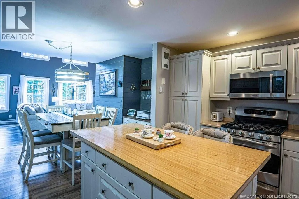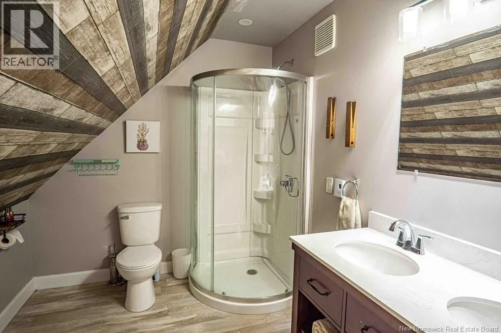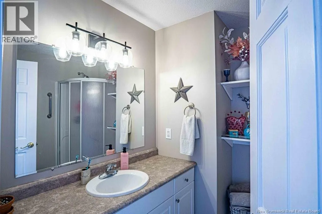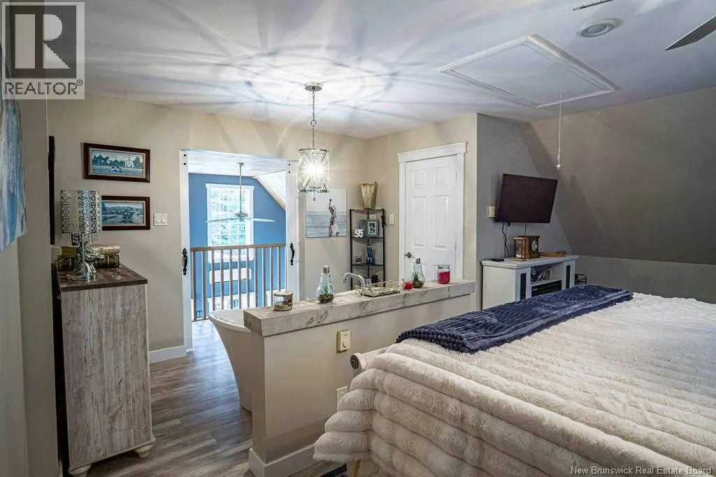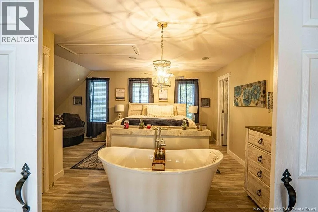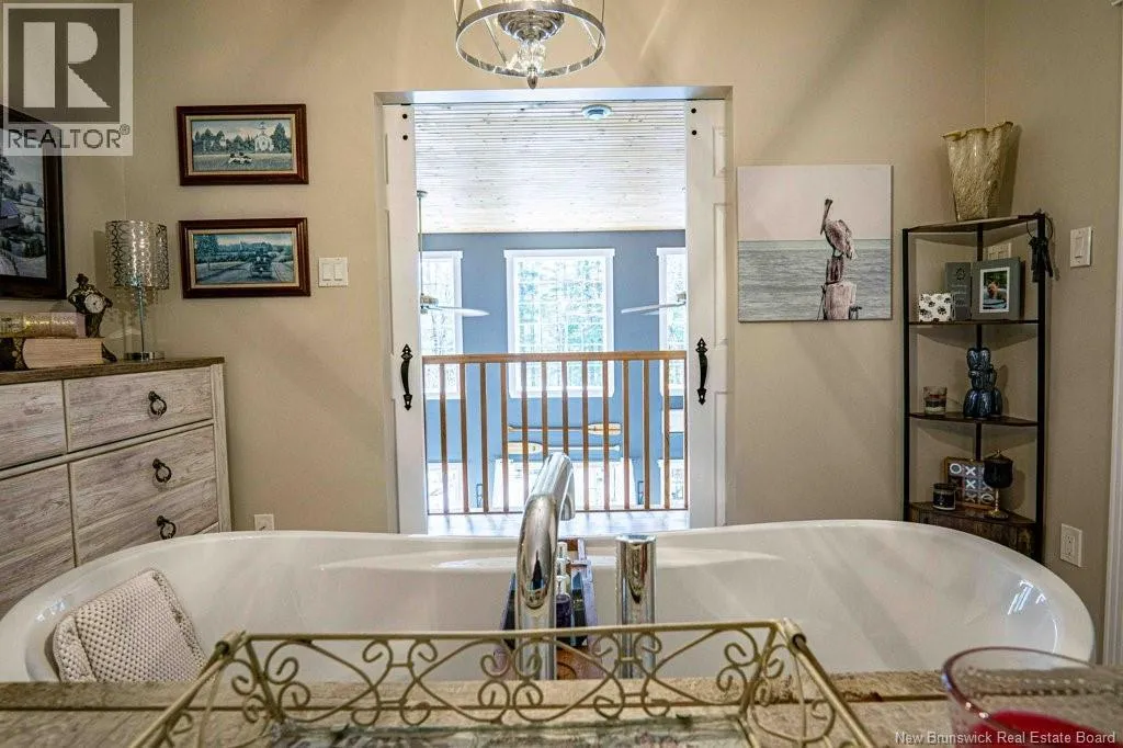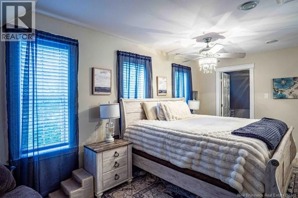 From Fredericton: Follow highway 101 to Charters Settlement. Follow Charters Settlement Road to Country Squire, turn right onto Lakeview, in 500 m your destination will be on your left. Tucked away on a beautifully secluded lot, this stunning 1.5-storey home offers a rare blend of privacy and modern comfort. With 2 spacious bedrooms and 2 full bathrooms, the thoughtfully designed layout creates an inviting space that feels like home the moment you arrive. As you step inside the screened in porch, there's an immediate sense of anticipation for what awaits inside. The open concept living area showcases jaw dropping cathedral ceilings and an expansive wall of windows that flood the space with natural light, creating an airy, uplifting atmosphere. The kitchen features newly painted cabinets and a large island that provides plenty of extra storage. The neutral color palette and striking shiplap accent wall adds character and elegance. This main floor also incorporates a large bedroom with his-and-hers closets, a full bathroom, and a convenient mudroom and laundry area. Upstairs, the renovated primary bedroom retreat feels like a private sanctuary. Imagine unwinding in the freestanding tub while taking in a quiet snowfall or the glow of vibrant autumn colors through the large showcase windows. This elegantly designed space also includes two walk-in closets, one leading directly to the private ensuite. Outside, the beautifully landscaped property offers multiple entertaining spaces as well as the privacy to enjoy the quiet beauty of nature. This incredible property is a peaceful escape for those seeking country living without sacrificing style or comfort. (id:27476)
