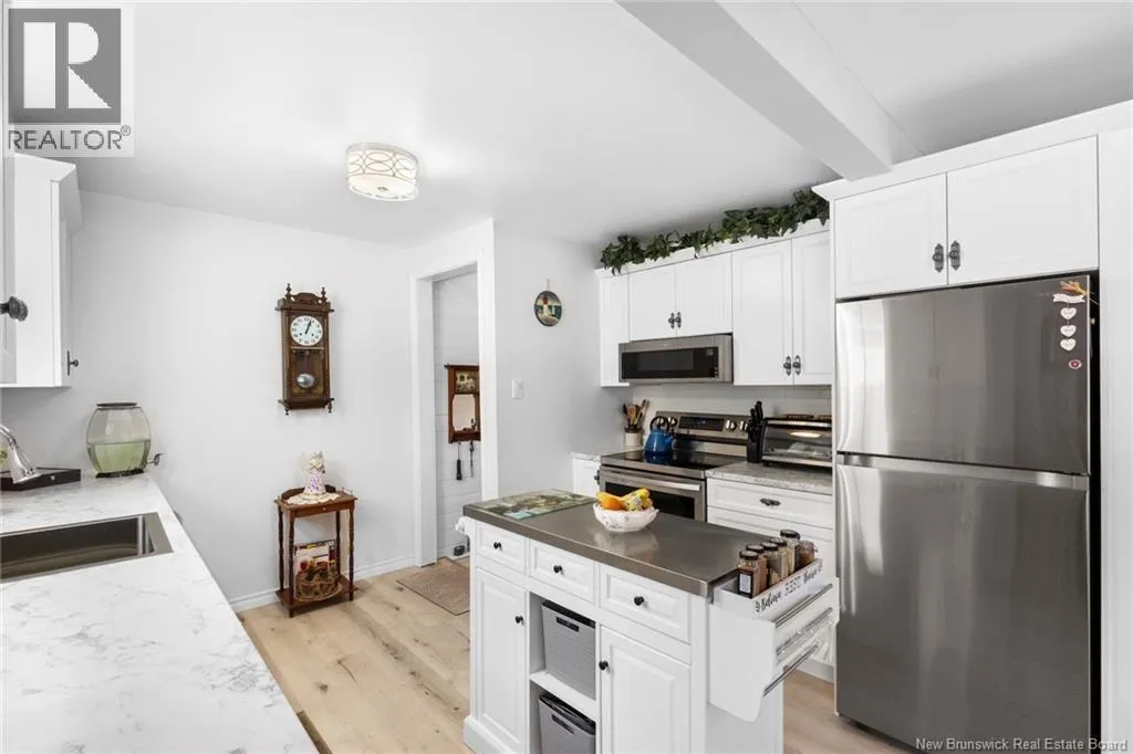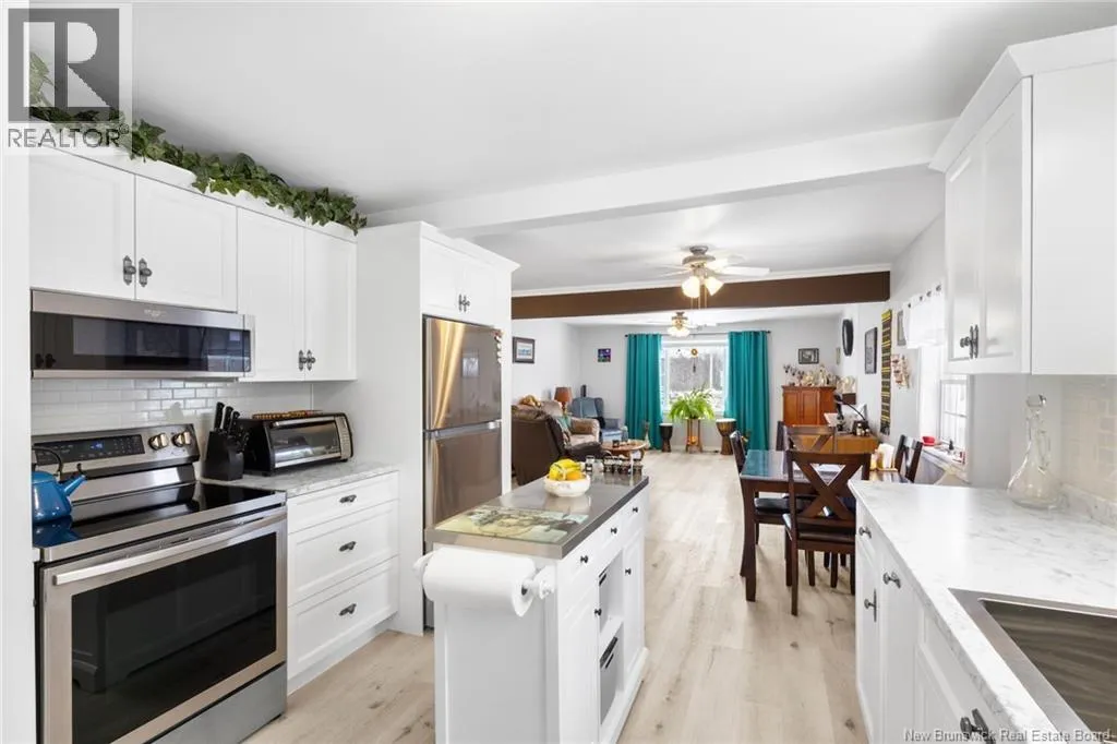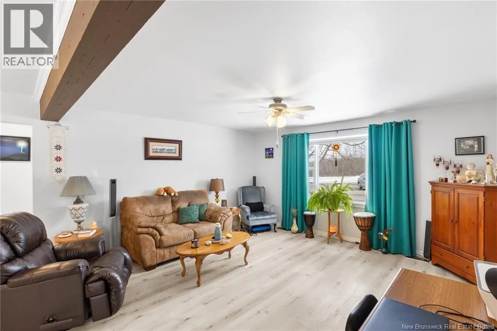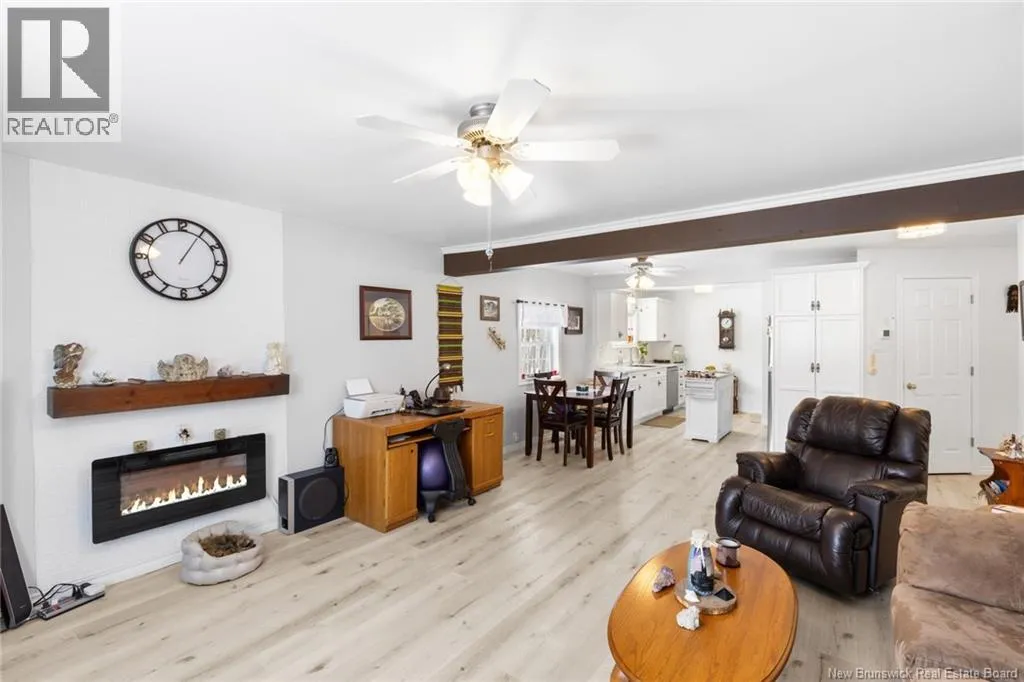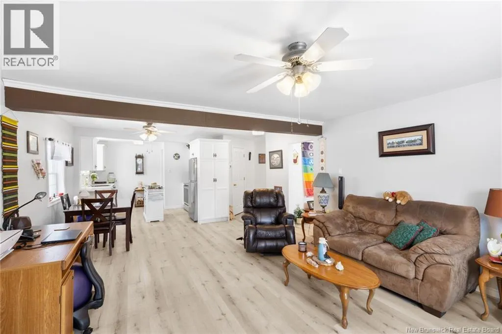 Main St Chipman , turn onto King St Welcome to 90 King Street, a beautifully maintained turn-key 2-bedroom, 1-bath bungalow located in the heart of Chipman. This inviting home offers the perfect blend of comfort, efficiency, and modern styleideal for first-time buyers, downsizers, or anyone seeking low-maintenance living. Step inside to a bright, open-concept layout where the living, dining, and kitchen areas flow seamlessly together. The functional kitchen features a prep island and ample cabinetry, making it well suited for everyday living and entertaining. Down the hall, youll find two comfortable bedrooms and a full bathroom. The primary bedroom includes a custom built-in closet system along with a cleverly hidden walk-in closet for added storage. The lower level is unfinished and offers laundry, utilities, a workbench, and plenty of storage, with potential for future hobby or recreation space. Off the back of the home, a screened-in outdoor room provides a relaxing spot to unwind or host guests and could easily be converted back to a carport if desired. Since ownership, the current seller has added a ducted heat pump with electric backup, delivering an energy-efficient central heating and cooling system for year-round comfort. Additional features include a wired generator panel, water softener, UV light system, paved driveway, and storage shed. Ideally situated close to local amenities, schools, and the public marina on the Salmon River with access to Grand Lake. (id:27476)