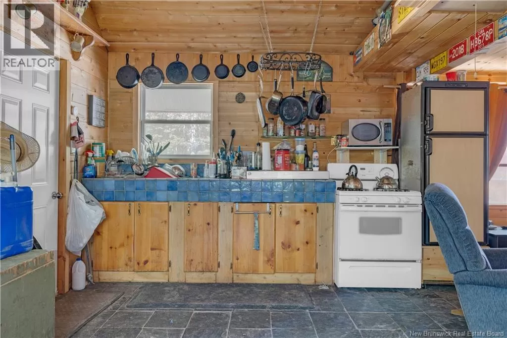 Take Highway 7 to Route 101. Turn Left onto South Oromocto Lake Road, Turn Left onto Lake Road, Right onto Pleasant Street to the last Cottage on the Right. Just 2 kms from the warm, sandy shores of South Oromocto Lake, this charming 1.5 storey cottage offers the perfect affordable getaway - all for under $60,000. Enjoy swimming in crystal-clear waters, exploring endless ATV trails, hiking adventures, and prime moose and deer hunting in season. Inside you'll find 2 bedrooms, including a spacious primary that fits a king-size bed, plus a loft that can comfortably accommodate 4 air mattresses - ideal for family or guests. The compact kitchen, dining, and living area are warm and inviting, with ceramic and laminate flooring throughout. Stay connected with satellite internet and cable, even in this peaceful, off-grid retreat. Powered by a gas generator, the cottage features a propane fridge and stove, and a wood stove to keep you cozy on cool autumn nights. If you've been dreaming of a rustic getaway with modern comforts, now is the time to make it yours. Outbuildings include a baby barn to store your 4-wheeler, a wood shed, a generator storage building, and an outhouse. Cottage comes completely furnished with everything included, lawn mower, generator, fridge, stove and outdoor bbq. Excluded items are the 4-wheeler, tools, log splitter, and personal belongings and some art and decor on the walls). (id:27476)