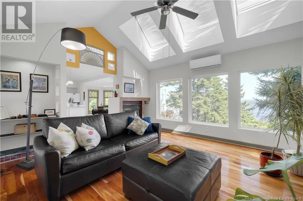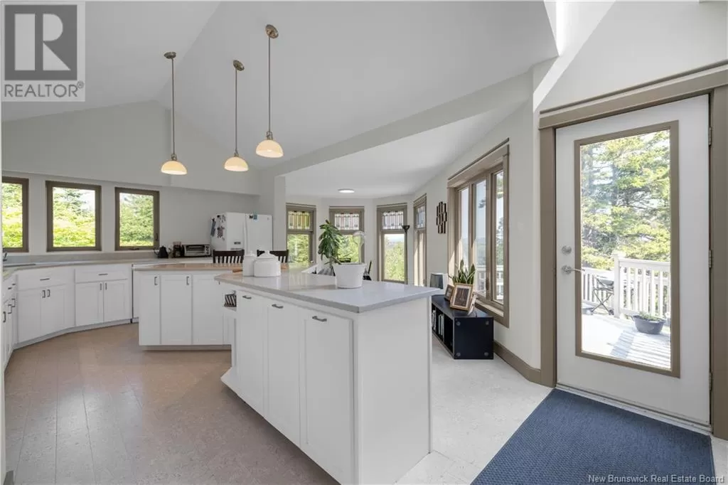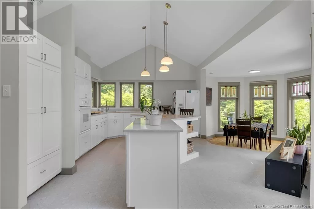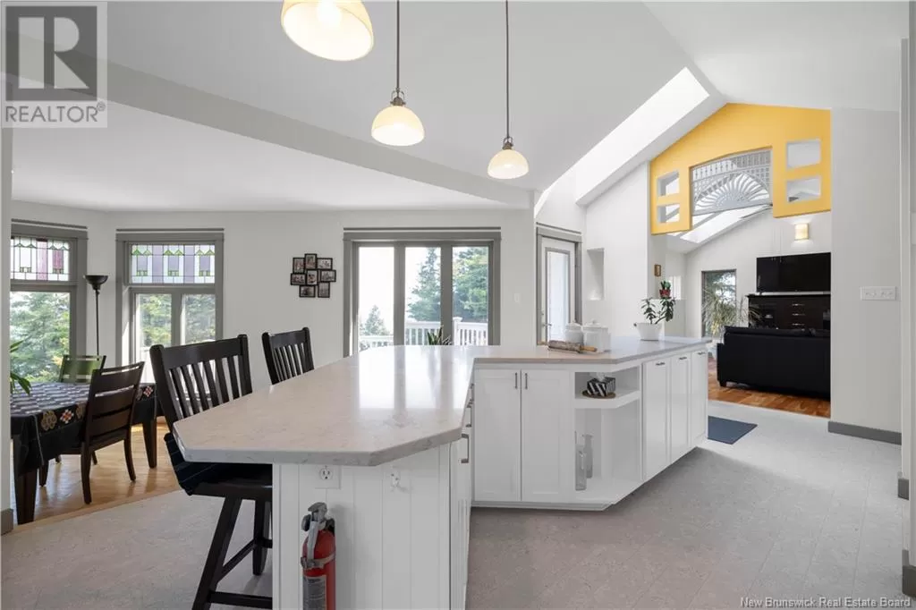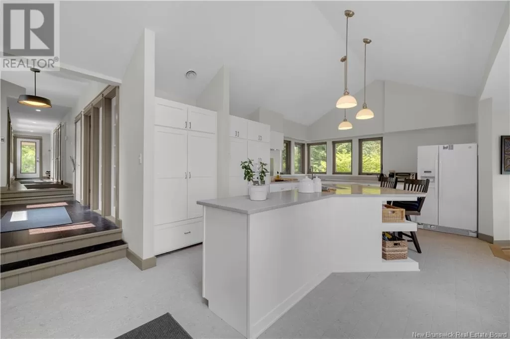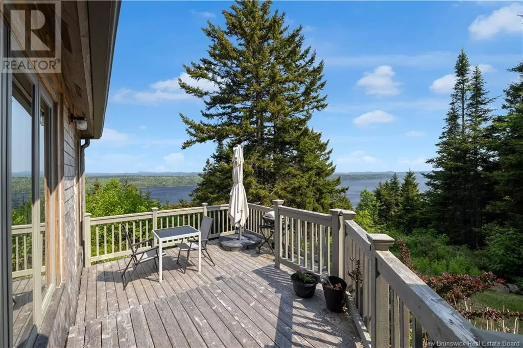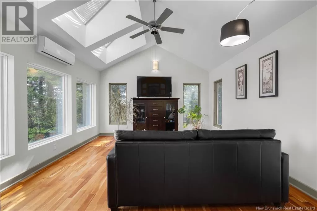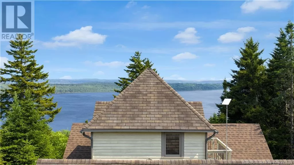 From Gondola Point Ferry turn left on Route 845. Drive approx. 12 km - on your right is Rock Ridge Lane. Welcome to a truly unique and thoughtfully designed home, nestled on 18 acres of privacy with sweeping views of the stunning Kennebecasis River. This one-of-a-kind, architecturally inspired residence offers stylish one-level living with a seamless connection to its natural surroundings. The spectacular open-concept living space features a bright, renovated kitchen that flows effortlessly into the dining and living room. Large windows offer a picturesque frame of the breathtaking river vistas, while the unique stained glass features in the dining room and skylights in the living room make the space feel truly connected to the natural outdoor surroundings. Step outside onto the back deck accessible from the kitchen and main living space and take in the beauty of your private oasis. The spacious primary suite is a serene escape, featuring a walk-in closet, as well as privacy doors to beautifully updated spa-like bathroom. Two additional bedrooms and another fully renovated bathroom provide comfortable accommodations for family or guests. Adding to the home's charm is a unique Italian-designed alternating tread staircase leading to a cozy loft retreatperfect for an additional living space, or home office - complete with its own balcony. Whether you're entertaining, relaxing, or exploring the acreage of your own land, this home offers a rare blend of architectural style, modern comfort, and natural beauty. (id:27476)