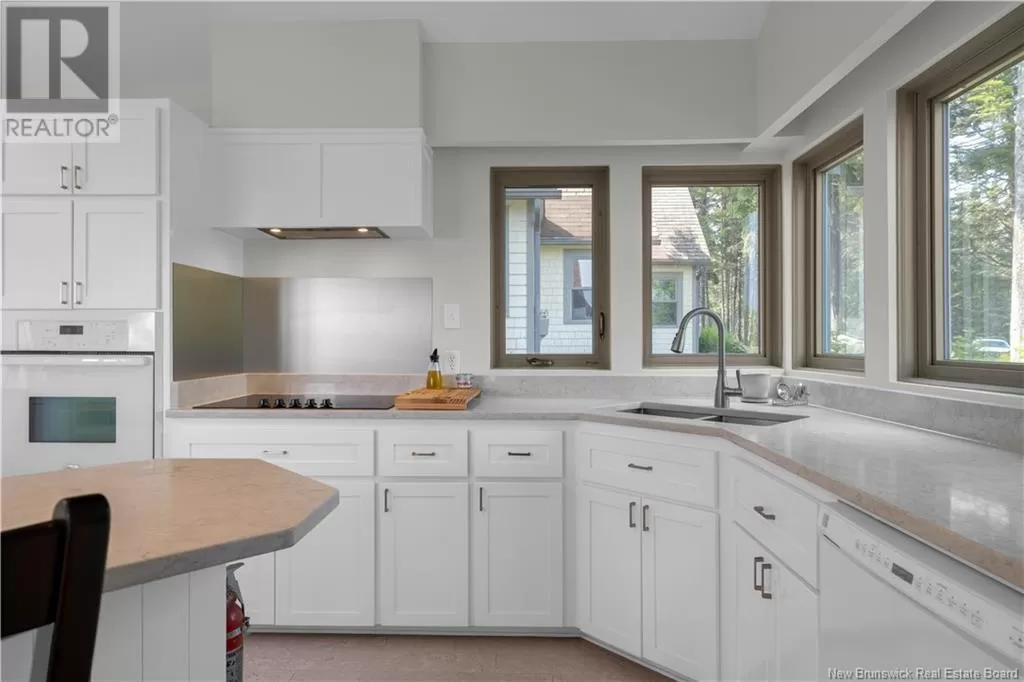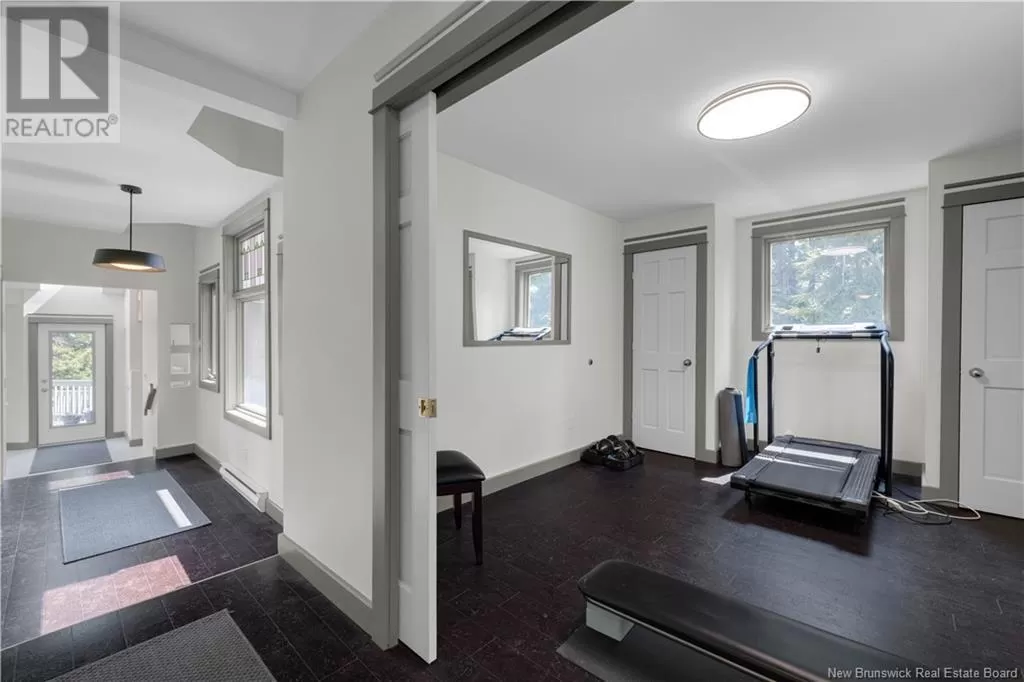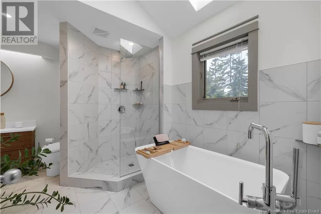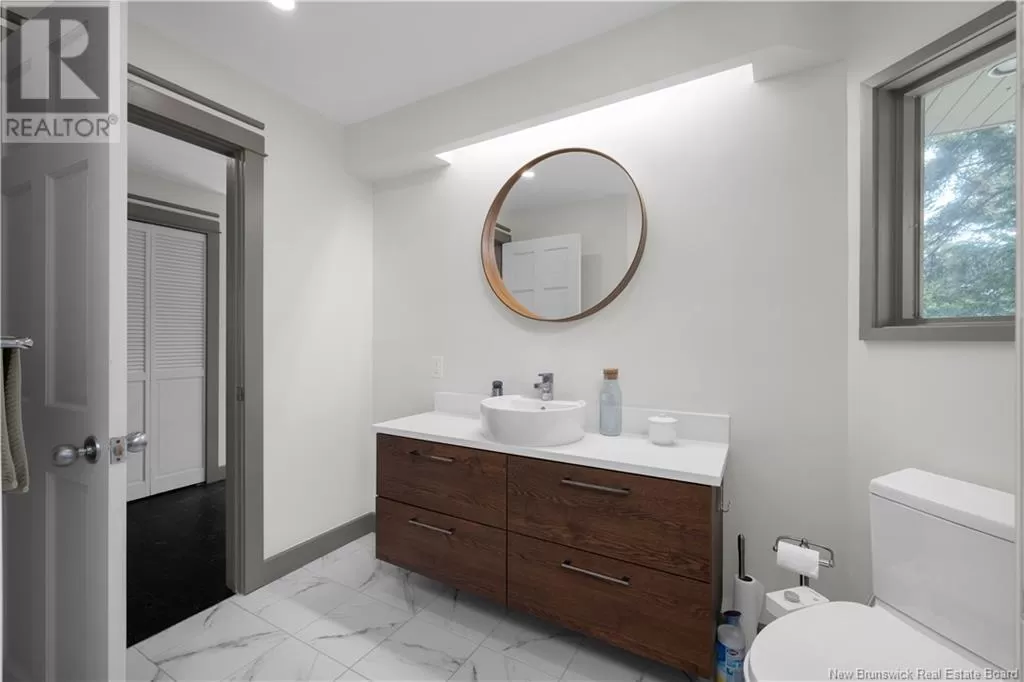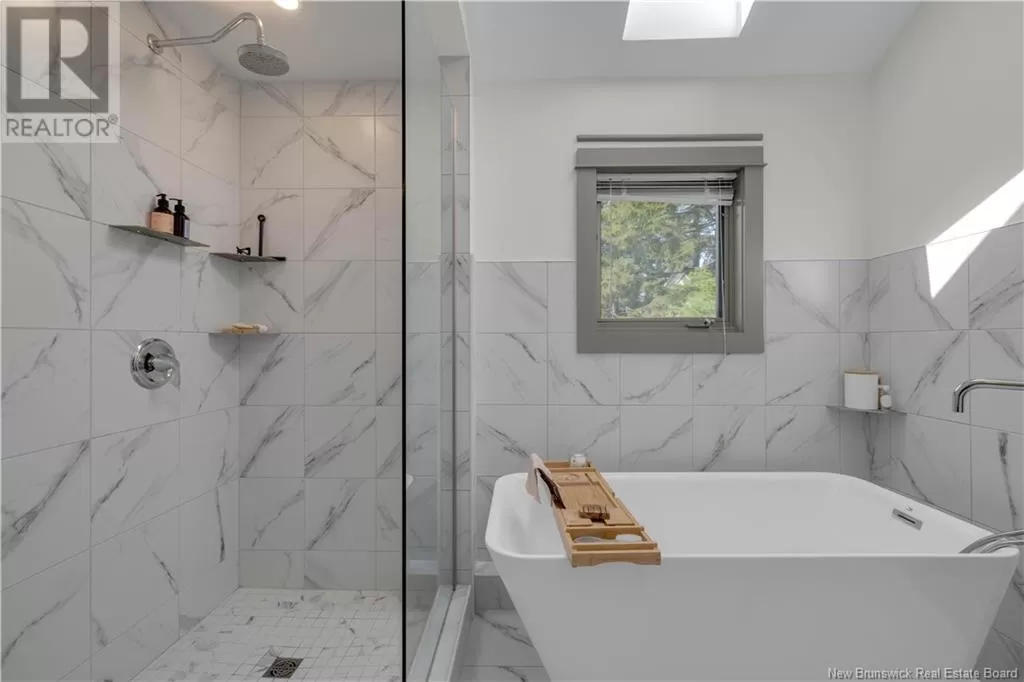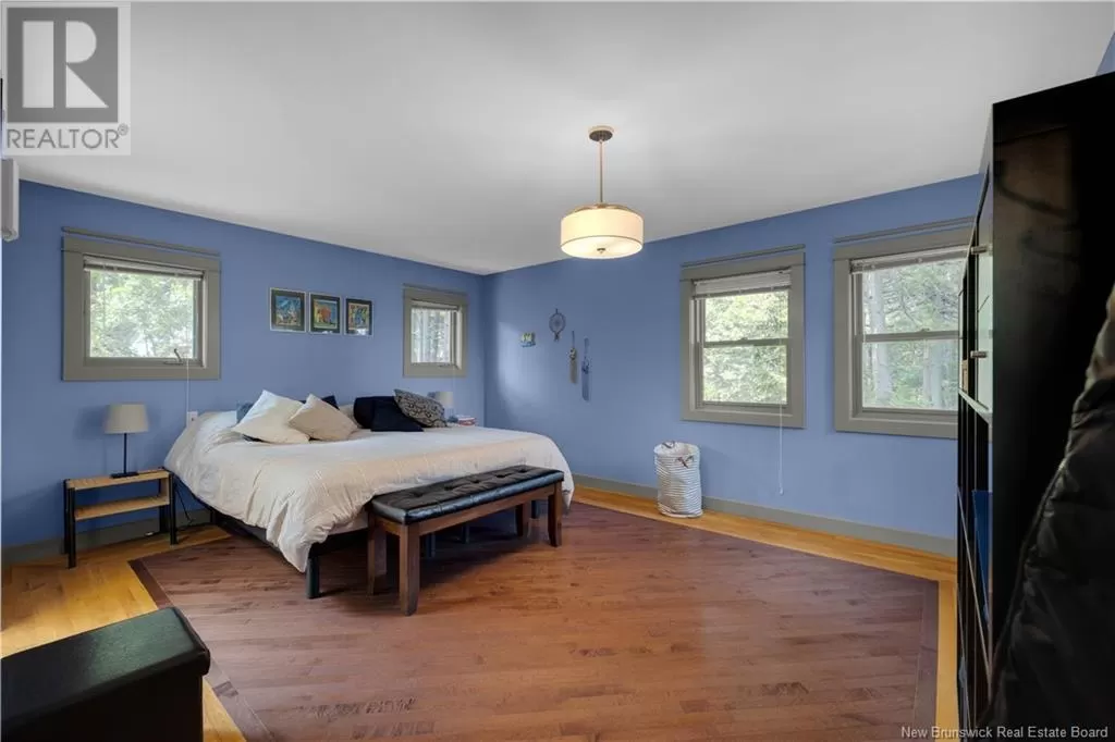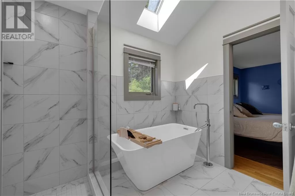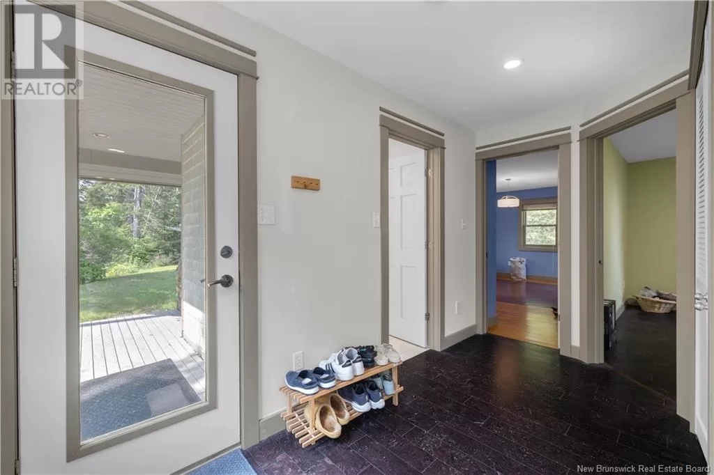 From Gondola Point Ferry turn left on Route 845. Drive approx. 12 km - on your right is Rock Ridge Lane. Welcome to a truly unique and thoughtfully designed home, nestled on 18 acres of privacy with sweeping views of the stunning Kennebecasis River. This one-of-a-kind, architecturally inspired residence offers stylish one-level living with a seamless connection to its natural surroundings. The spectacular open-concept living space features a bright, renovated kitchen that flows effortlessly into the dining and living room. Large windows offer a picturesque frame of the breathtaking river vistas, while the unique stained glass features in the dining room and skylights in the living room make the space feel truly connected to the natural outdoor surroundings. Step outside onto the back deck accessible from the kitchen and main living space and take in the beauty of your private oasis. The spacious primary suite is a serene escape, featuring a walk-in closet, as well as privacy doors to beautifully updated spa-like bathroom. Two additional bedrooms and another fully renovated bathroom provide comfortable accommodations for family or guests. Adding to the home's charm is a unique Italian-designed alternating tread staircase leading to a cozy loft retreatperfect for an additional living space, or home office - complete with its own balcony. Whether you're entertaining, relaxing, or exploring the acreage of your own land, this home offers a rare blend of architectural style, modern comfort, and natural beauty. (id:27476)