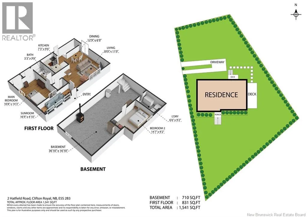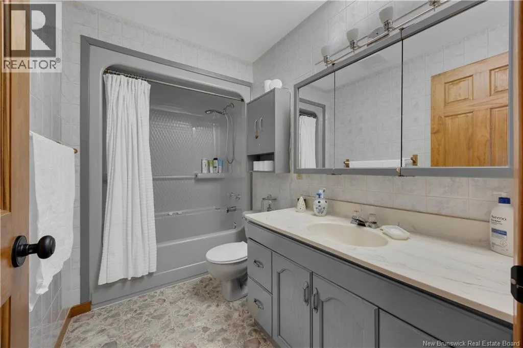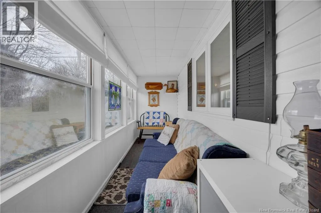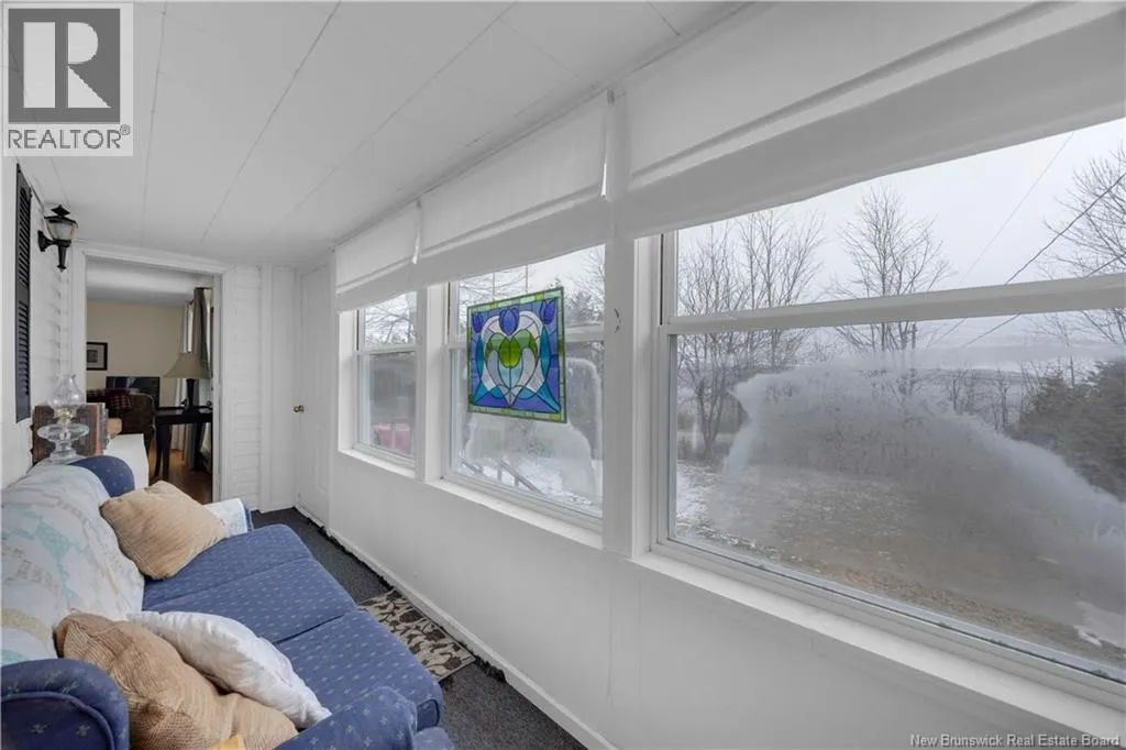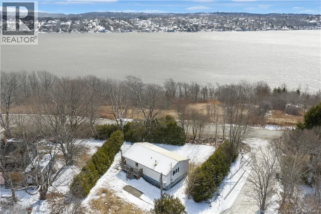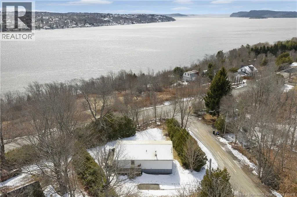 Take Route 845 left from the ferry and go 1.7 KM and turn right onto Hatfield Road. Located a very short distance from the Gondola Point Ferry, this charming home offers beautiful views of the Kennebecasis River. The property features 2 bedrooms, 1 bath and ample storage space. Upon entry, you are greeted with a welcoming feel. To the right, the kitchen showcases beautiful oak cabinets, a space perfect for meal preparation. Directly across the kitchen is the open concept dining area and living room. Patio doors off of the dining area leads you to one of 2 patios, ideal for gatherings. The living room has a mini split for comfort and large window over looking the river. A fully enclosed covered attached sunroom to the right of the living room provides additional space for entertaining or quiet evenings. Down the hall, you'll find a generously sized master bedroom with double closets. The main bathroom, conveniently located between the master bedroom and living area, features a full tub surround and a double wide vanity. Stairs from the kitchen, front door area lead you to the lower level, where you will find the laundry room, a versatile spare bedroom with non-conforming window, or could be used as a home office or gym. The remainder of the basement is an open concept area with wood stove, and ready for personal touches. The unfinished portions provide ample storage space. The exterior of the home features a steel roof, U-shaped driveway, and privacy enhancing tree hedges all while maintaining a view of the Kennebecasis River. (id:27476)