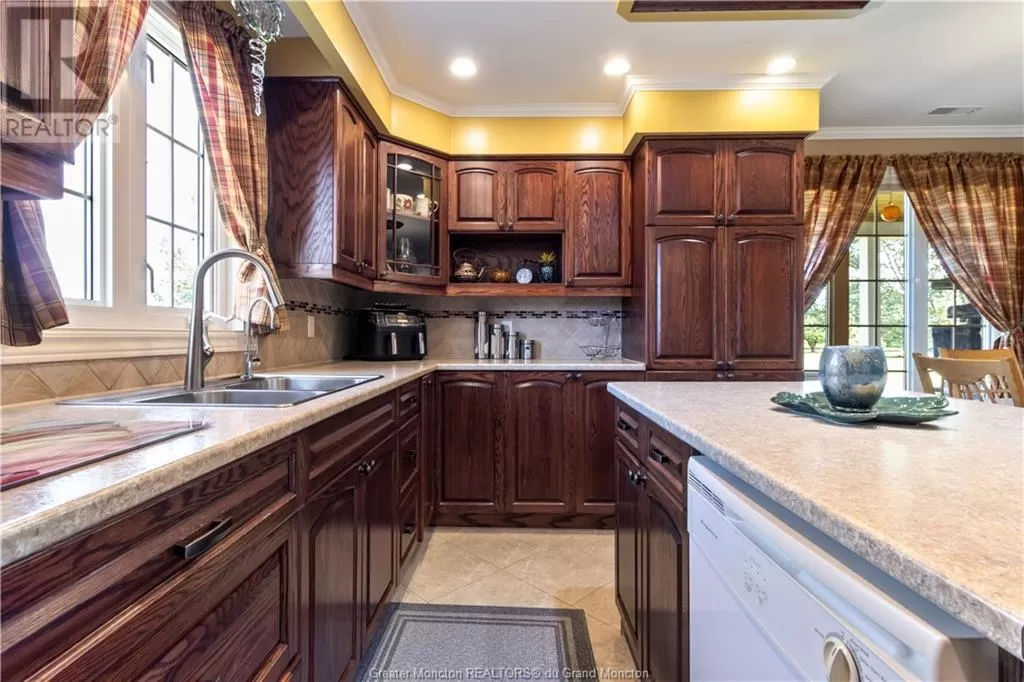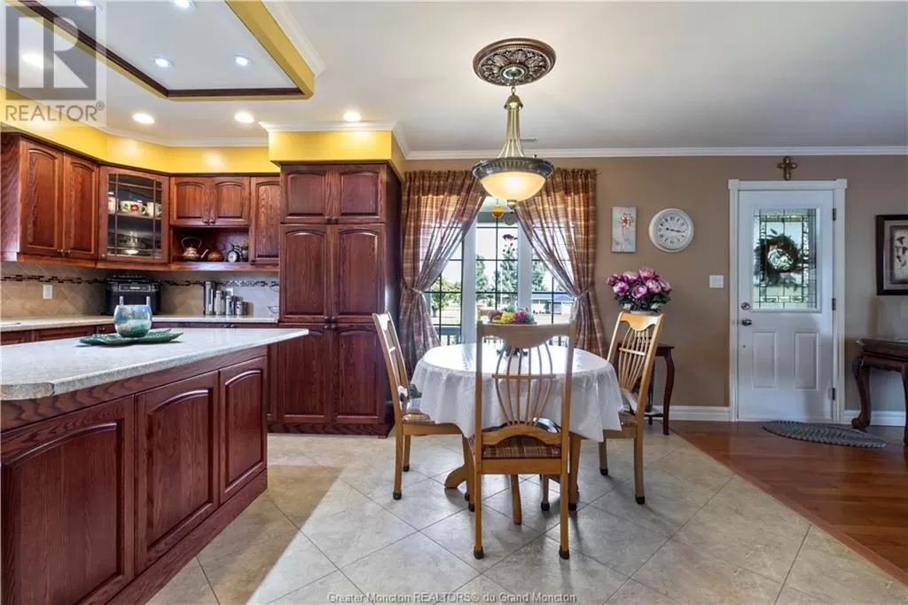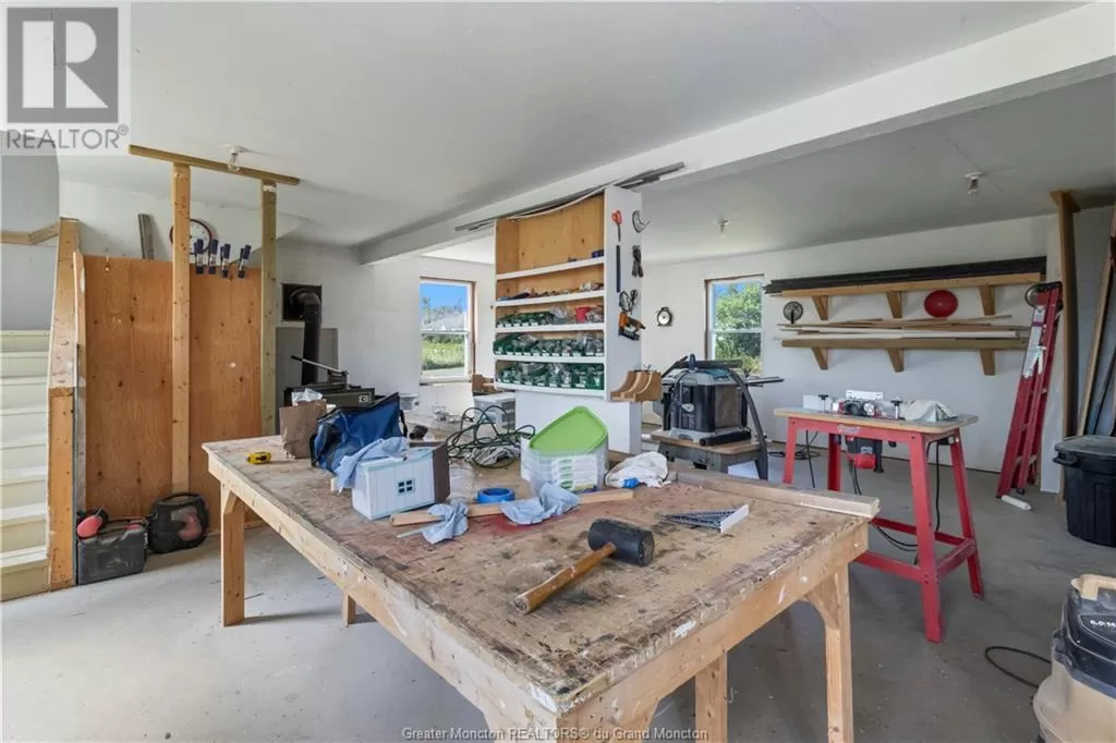 From NB-11, take exit 15 toward NB-134/Cocagne/Notre-Dame/Saint-Antoine. Turn right onto NB-535 N. Follow NB-535 N for approximately 7.6 kms. Property is on the left. Discover the perfect blend of comfort and functionality in this beautiful bungalow, set on approximately 1 acre of picturesque land with stunning water views. This home offers a spacious kitchen with abundant cabinets and counter space, a dining area, a large living room, one full bathroom and a half bath, a convenient laundry room, two cozy bedrooms, a versatile second living room, and a dedicated office, perfect for working from home or managing household tasks. Enjoy outdoor living on the expansive wrap-around porch with a screened-in patio, perfect for savoring your morning coffee or evening drink. The property includes a large detached garage with a finished loft, ideal for a recreational room or additional living space. Currently used as a woodworking shop, the garage provides endless possibilities to tailor to your needs. Located just 5 minutes from essential amenities and only 30 minutes from Moncton, this home offers peaceful living with easy access to everything you need. Dont miss the opportunity to make this charming bungalow your own. (id:27476)
