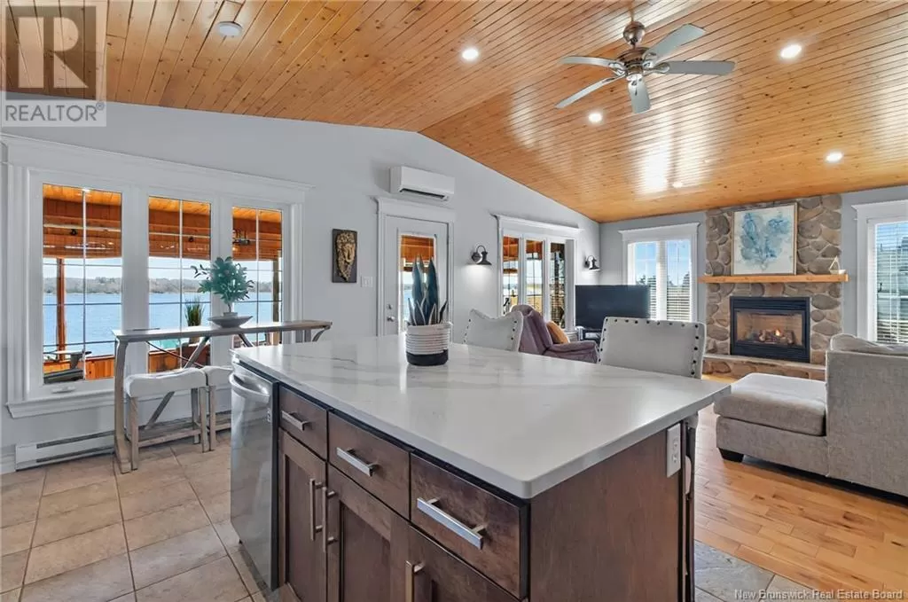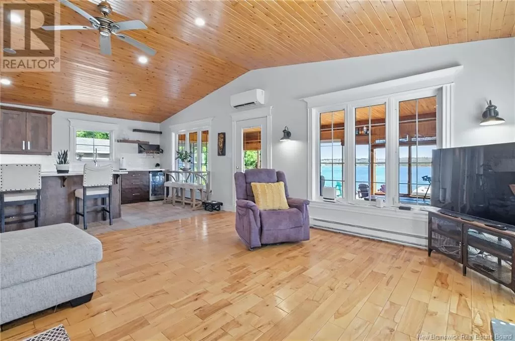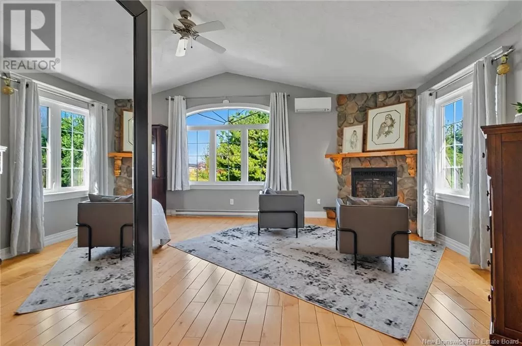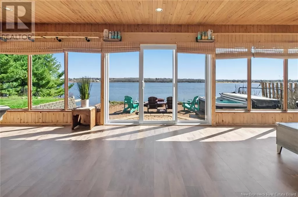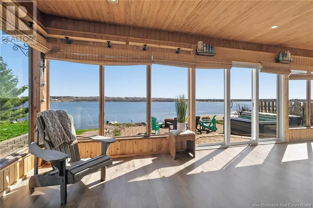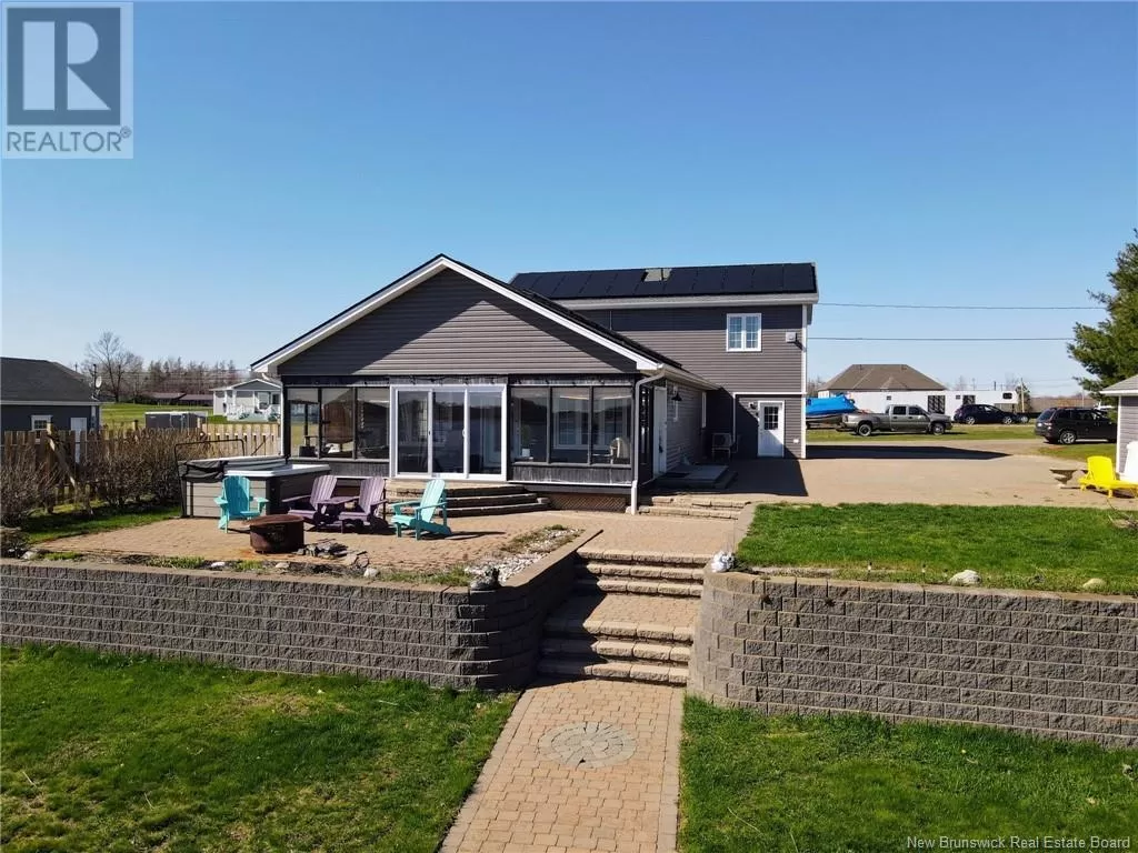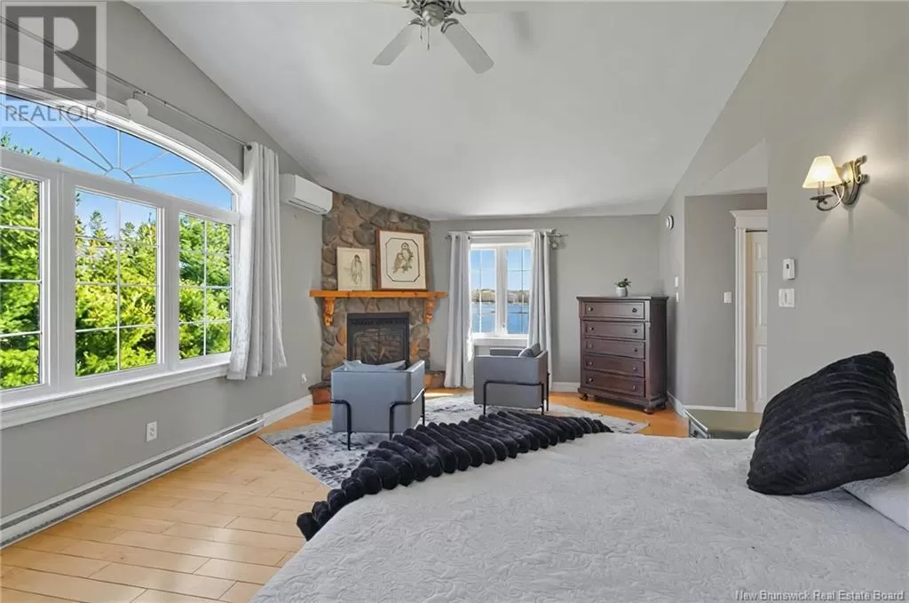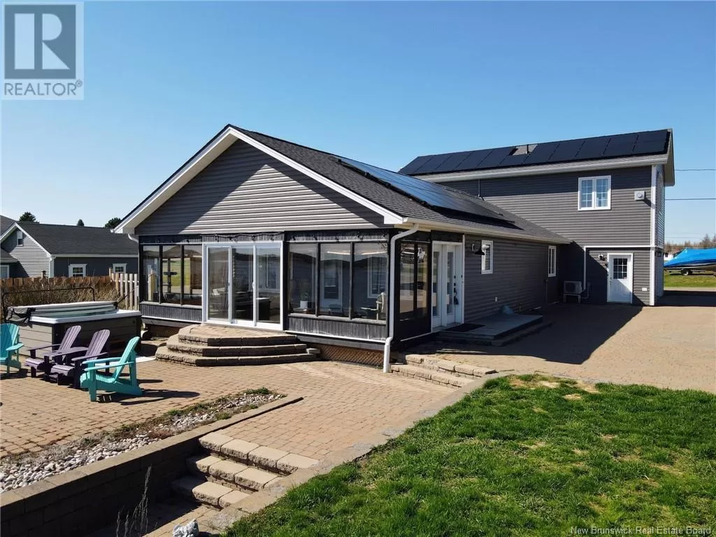 STUNNING WATERFRONT ON THE COCAGNE RIVER! Year-round home with breathtaking views and your own private dock for boating, canoeing, or simply relaxing by the water. Enjoy your brand-new roof and solar panel system for energy efficiency. Step out onto the interlocking deck to relax into HOT TUB viewing the water or unwind in the solarium/sunroom while watching incredible sunrises. Inside, the main floor features a spacious family room with cedar cathedral ceilings and a stone propane fireplace, a large updated kitchen with stainless steel appliances, and ceramic flooring. Two bedrooms, a full 4pc bathroom with heated floors, and a generous mudroom complete the main level. Upstairs, find a bright open loft space perfect for a home gym or office. The massive 22x23 primary bedroom offers river views, a sitting area, propane fireplace, and a luxurious ensuite with Jacuzzi tub, double sinks, heated floors, and a separate shower. Incredible oversized double garage perfect for storage, workshop space, or all your recreational gear! Professionally landscaped with stone block driveway and retaining walls. A perfect blend of comfort, style, and nature! CLOSE TO MARINA, SCHOOL, TRAILS, HIGHWAY, CONVENIENT STORE, GAS BAR, BEACH, RESTAURANT.( BONUS ; baby barn, generator hook up, electric car plug ) (id:27476)