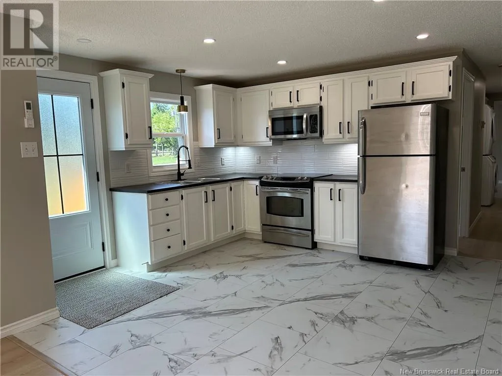 highway 11 to exit 15 Cocagne.......right on the 535 straight through Cocagne 4 corners and continuing on straight to Florina Beach sign on your right turning on to Bray Blvd. Property on your left civic #43 Year round seaside living in the Coastal area of Cocagne. Located in Florina Beach with deeded beach access is this fully renovated 2 bedroom minihome! Drive up into the double drive and notice the beautiful Blue spruce and willow tree in the front yard offering a welcoming summer shade area. The minihome presents you with a new spacious front verandah, oversized (private) side patio and a baby barn plus shed to hide all your toys. Inside is bright, spacious and clean. Updated kitchen with stainless appliances, Microwave range, glass subway backsplash tiles, undermount light and all new fixtures. Potlights add to the clean lines and ambiance. The open concept into the livingroom allows the natural light to flow from the patio doors throughout and greets the inside entertainment to easily continue outside on the patio. Down the hall is a bedroom, spacious bath with room to add a laundry hamper, added storage or whatever meets your needs, a stackable washer and dryer, back door exit and spacious primary bedroom area with double closet nicely hidden hot water tank access and electric panel access. Home is move in ready, quick closing available and awaiting you to just unpack and walk yourself down to the beach (id:27476)