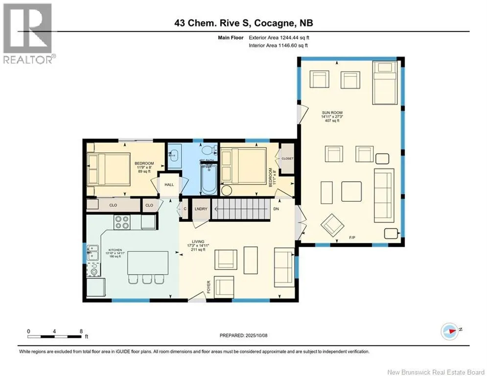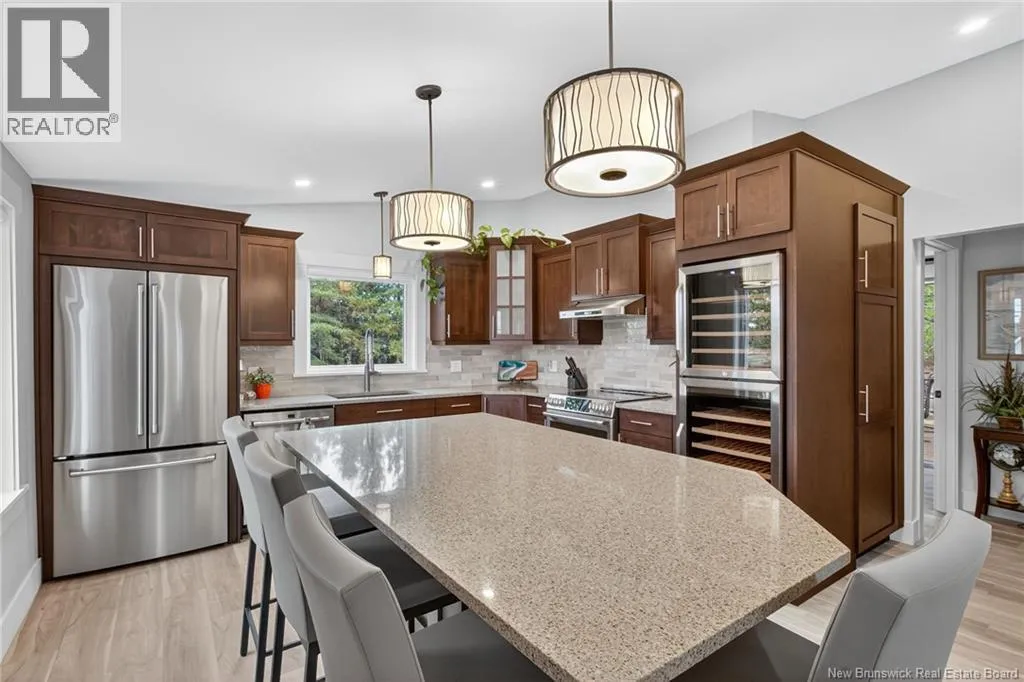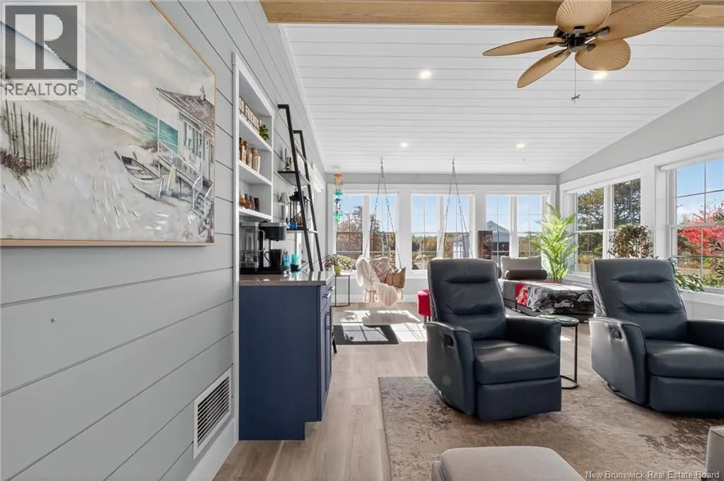 From Moncton take Highway 15 towards Shediac. Continue on Highway 15 to Highway 11. From Highway 11 take Exit 7 and turn right onto Viaduc Road. Turn left onto Route 134. Turn left onto Cocagne S Road. Turn right onto Rive Sud Road Welcome to 43 Rive Sud Road in Cocagne. Completely renovated in 2024, this immaculate water view bungalow was taken down to the studs and rebuilt with care and quality. Reno included plumbing, electrical (with new panel and generator panel), windows, doors, siding, decks, and a brand-new sunroom on Postechs. New septic field and roof shingles in 2022 and new submersible well pump in 2025. The home offers an open-concept layout filled with natural light. The living room flows effortlessly into a dream kitchen featuring a large island, backsplash, and wine fridge, perfect for entertaining. The primary bedroom offers patio door access to the back deck, while the second bedroom provides a cozy retreat for family or guests. A full bath and main-floor laundry add convenience. Just off the living area, step into the sunroom sanctuary, complete with a coffee station and access to the deck, ideal for relaxing. Need more space? The unfinished basement is ready to be transformed into additional living space to suit your needs. Outside, enjoy your 4.4-acre oasis featuring beautifully landscaped grounds, a garage, firepit area, and spacious front and back decks, perfect for summer BBQs or quiet morning coffees. Located just minutes from Cocagne amenities and 25 minutes from Moncton, this bright, energy-efficient home offers the best of country living. Dont miss your chance to make this stunning property yours. Call your REALTOR® for more information or to book your private viewing. (id:27476)