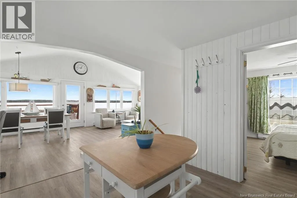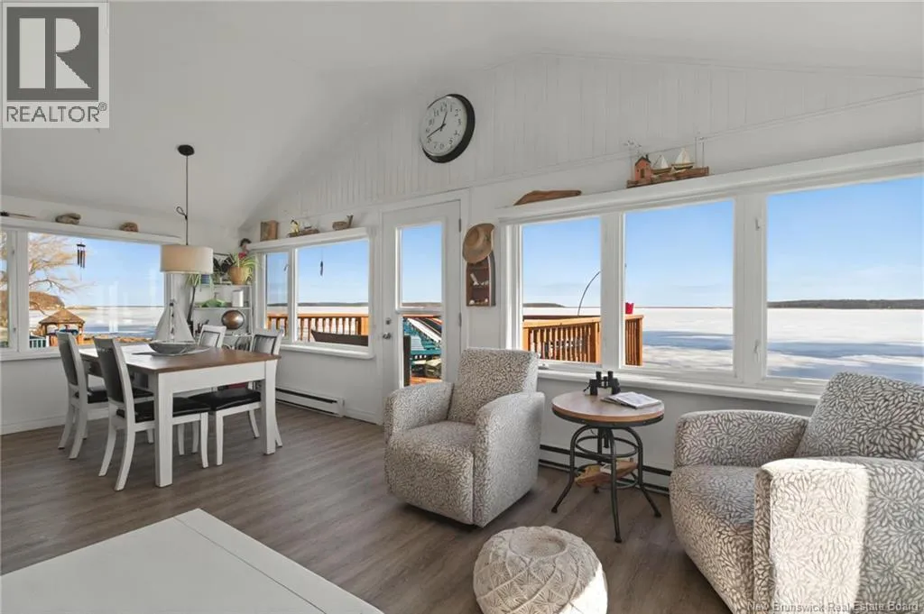 From Route 11, take the Cocagne exit and head east towards Cocagne on Rte 535. Turn right on Bray Ave. Turn left on De La Mer Blvd. *Click on link for 3D virtual tour of this property*Are you looking for an oceanfront escape designed for year-round living with income potential or to add to your rental portfolio? If so, 2 de la Mer in Cocagne is for you! Featuring expansive water views & a fully equipped in-law suite, this home is a rare coastal gem. The upper unit features walls of windows that flood the main living area with natural light & water views. The open-concept design blends a bright living & dining space with a well-appointed kitchen. Patio doors leading to the deck, where you can enjoy beautiful sunrises while sipping on your morning coffee overlooking Cocagne Island. The primary suite has a private patio to enjoy the sunsets. A 2nd bedroom, 3 PC bath & laundry room complete this level. The walk-out in-law suite features a private entrance, a coastal-inspired living space, garden doors to a private patio, a full kitchen, 2 bedrooms & a 4-PC bath with laundry. Renovated in 2021, this home offers mini-split heat pumps & electric baseboards for year-round comfort. Watch blue herons glide across the water, walk on the beach, or enjoy boating, kayaking, skiing & ice fishing right outside your door. Lot size: 50x101 The ultimate waterfront lifestyle, with built-in investment potential, sold furnished. Book your private viewing today. Can be sold as a package with 4 de la Mer, MLS NB130857, which is also being sold furnished. Financial statements available upon request (id:27476)