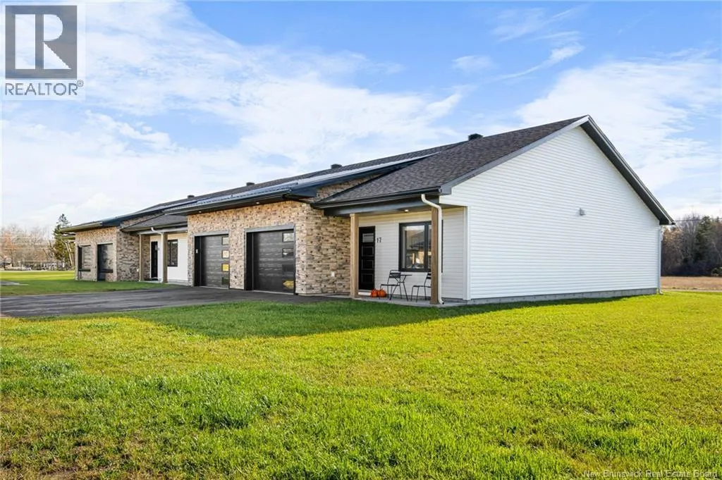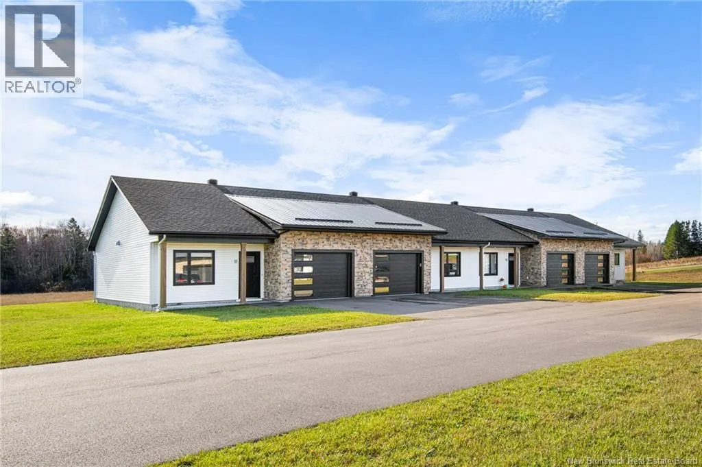 Take Exit 15 toward Road 535, heading in the direction of Cocagne. At the stop sign, turn left onto Road 134. Continue and then turn left onto Domaine des Cèdres. Modern Bungalow Townhome for Sale in Cocagne | This newly built, modern bungalow townhome offers comfortable, contemporary living in a quiet village setting. It features 2 BEDROOMS, including a spacious MASTER SUITE with a WALK-IN closet. The open-concept kitchen, dining, and living areas are perfect for entertaining, with all stainless steel appliances included. The living room flows seamlessly to an outdoor CONCRETE PATIO, ideal for relaxation. A convenient LAUNDRY ROOM connects directly to the masters walk-in closet and the 5-PIECE BATHROOM. The ATTACHED GARAGE includes a mechanical room for ADDED STORAGE. This home is equipped with a ductless heat pump and IN-FLOOR HEATING for year-round comfort. The sleek modern design includes black exterior windows and trim finishes, complemented by a STONE exterior and partial METAL ROOF. Located in the peaceful village of Cocagne, residents will enjoy easy access to walking trails, the pharmacy, Caisse Populaire, and local grocery stores. Schedule your viewing today! (id:27476)