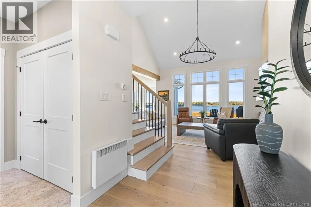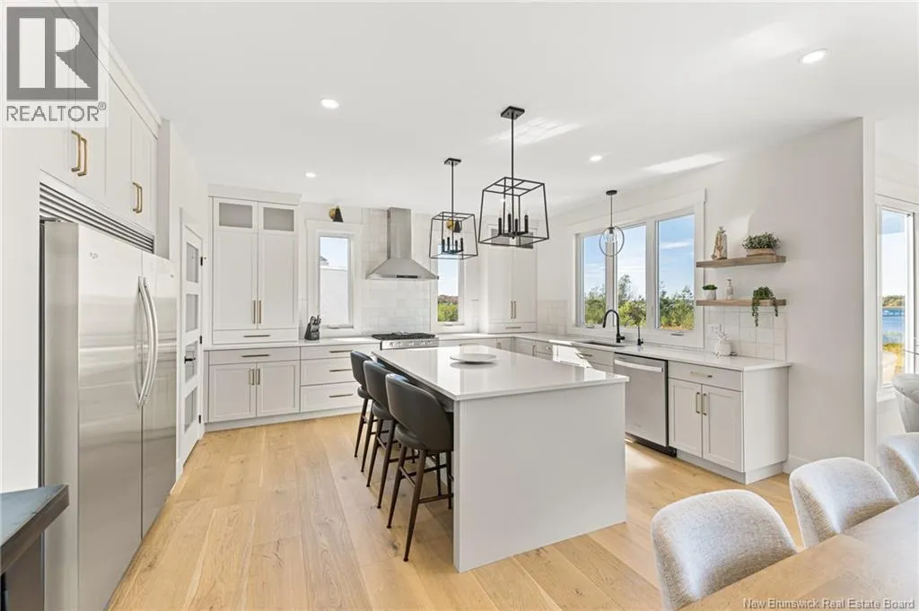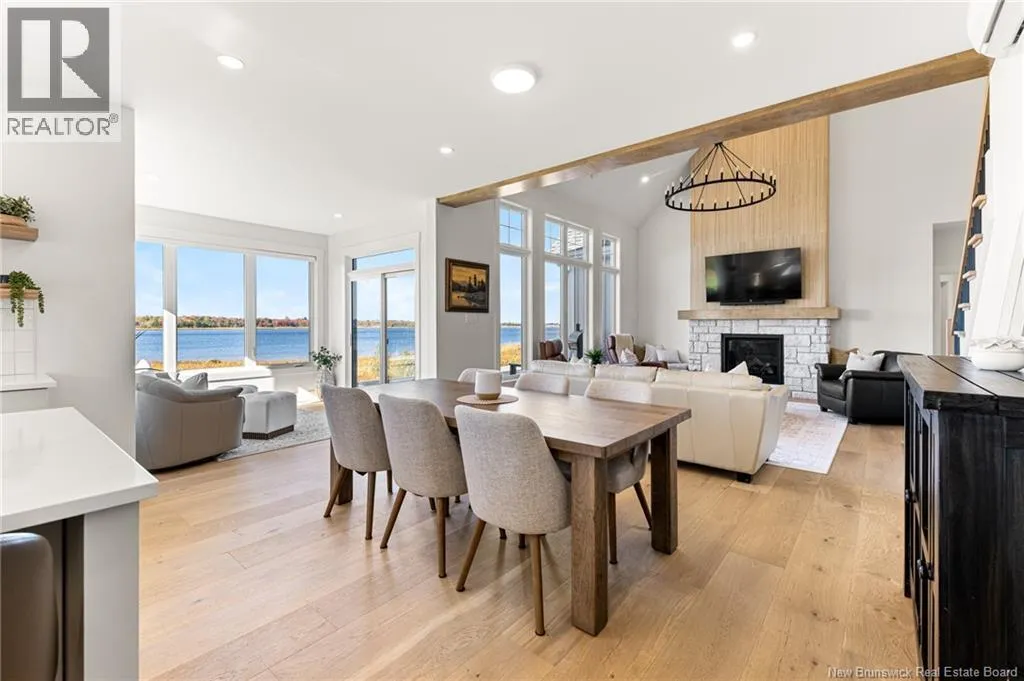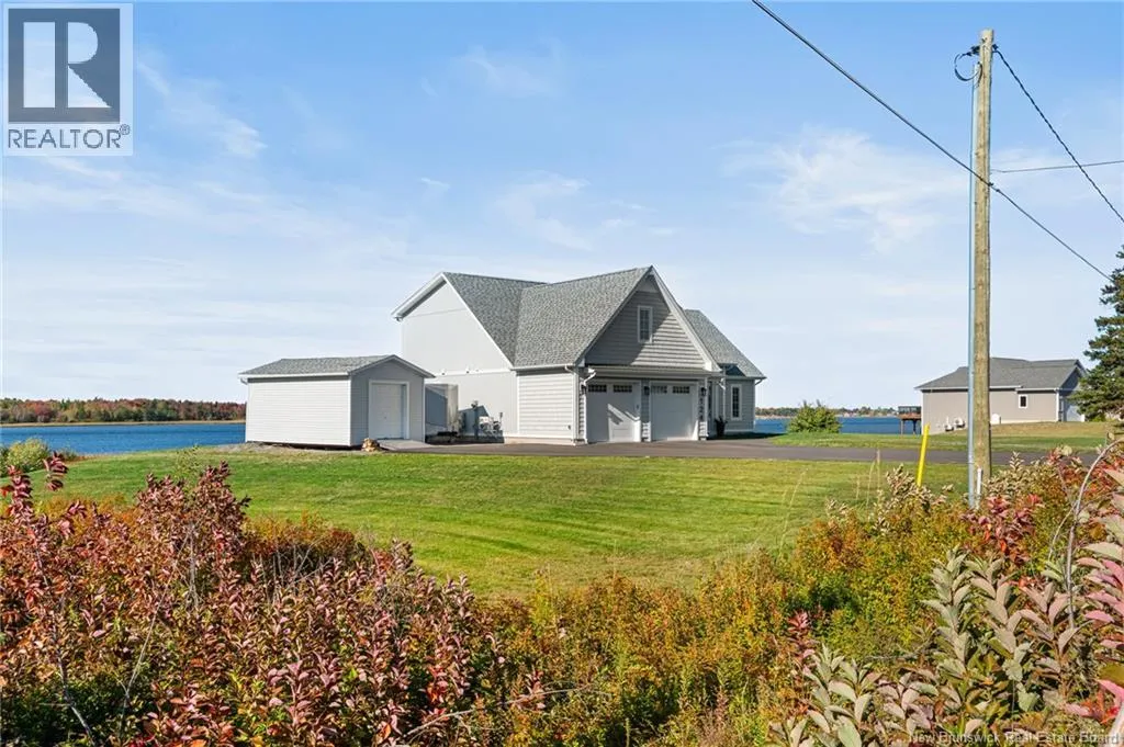 From Cocagne Ch, turn onto Riv Sud. WATERFRONT / NEWLY CONSTRUCTED 2024 / 2.98 ACRES/ Welcome to 124 Rive sud, Cocagne, a stunning newly built executive waterfront home overlooking the beautiful Bay of Cocagne. Completed in 2024, this custom-designed property sits on just under 3 acres of owned land and offers the perfect blend of modern elegance and coastal living. The main level features a bright, open-concept layout with expansive windows that frame the water views. A large custom propane fireplace serves as the focal point of the living area with vaulted ceilings, this space feels like a dream. While the open concept kitchen is both functional and stylish, complete with a side-by-side double-door fridge and freezer, quartz countertops, hidden pantry, and spacious dining area ideal for entertaining. Just off the dining space, a bonus room provides additional living flexibility and opens through patio doors to a waterfront terrace, the perfect place to relax and enjoy the peaceful surroundings. The main level also includes a primary bedroom suite with a walk-in closet and a beautifully appointed ensuite bath featuring a tiled shower. A half bath and laundry area complete the main floor. Upstairs, the open staircase leads to a large loft space that can serve as an office, gym, or guest bedroom. 2 additional bedrooms and a full family bath complete the upper level. This home also features an attached 2-car garage with an additional storage room and is built on a durable concrete slab. Call your REALTOR® Today! (id:27476)