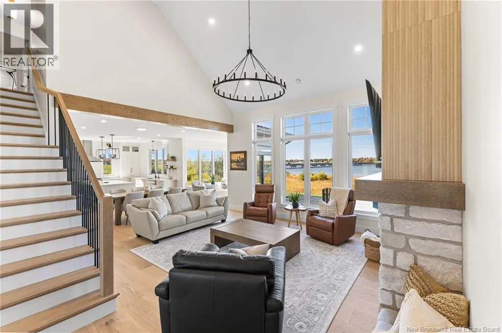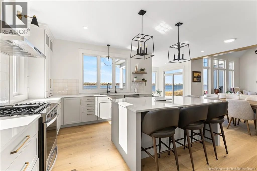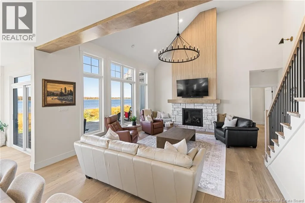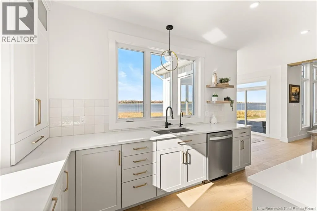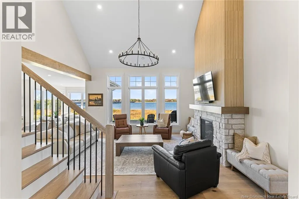 From Cocagne Ch, turn onto Riv Sud. WATERFRONT / NEWLY CONSTRUCTED 2024 / 2.98 ACRES/ Welcome to 124 Rive sud, Cocagne, a stunning newly built executive waterfront home overlooking the beautiful Bay of Cocagne. Completed in 2024, this custom-designed property sits on just under 3 acres of owned land and offers the perfect blend of modern elegance and coastal living. The main level features a bright, open-concept layout with expansive windows that frame the water views. A large custom propane fireplace serves as the focal point of the living area with vaulted ceilings, this space feels like a dream. While the open concept kitchen is both functional and stylish, complete with a side-by-side double-door fridge and freezer, quartz countertops, hidden pantry, and spacious dining area ideal for entertaining. Just off the dining space, a bonus room provides additional living flexibility and opens through patio doors to a waterfront terrace, the perfect place to relax and enjoy the peaceful surroundings. The main level also includes a primary bedroom suite with a walk-in closet and a beautifully appointed ensuite bath featuring a tiled shower. A half bath and laundry area complete the main floor. Upstairs, the open staircase leads to a large loft space that can serve as an office, gym, or guest bedroom. 2 additional bedrooms and a full family bath complete the upper level. This home also features an attached 2-car garage with an additional storage room and is built on a durable concrete slab. Call your REALTOR® Today! (id:27476)