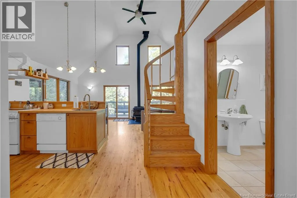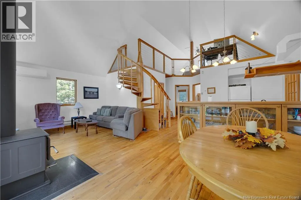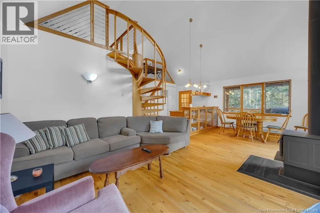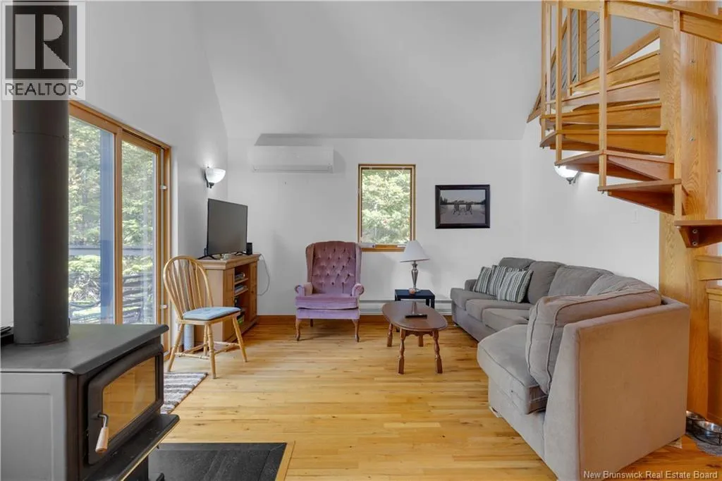 Route 710 to Scenic Narrows Blvd to Thomas Lane. Last property with gate. Lockbox on gate. Your Private Waterfront Escape Awaits. Tucked at the end of a gated private lane and surrounded by trees, this year-round waterfront retreat captures everything you could want in a home or cottage. Perched safely above the high-water mark on 2.62 acres along the stunning Washademoak Lake, where it channels into the Saint John River. This property offers unmatched privacy, natural beauty, and endless recreation. The open-concept great room showcases soaring ceilings, spiral staircase, abundant natural light, a cozy wood stove, and double patio doors leading to a wraparound deck with breathtaking westerly views, perfect for sunsets over the water. With two comfortable bedrooms plus a loft, the layout suits both a peaceful primary residence and a family getaway. The spacious bath and thoughtful design invite relaxation at every turn. Outside, enjoy your own waterfrontage for swimming, boating, and lakeside fun. An oversized garage provides ample space for toys and tools, while the charming bunkhouse loft welcomes guests with comfort and character. A rare opportunity to live year-round in one of the most serene and picturesque settings in New Brunswick. Your waterfront lifestyle begins here. (id:27476)