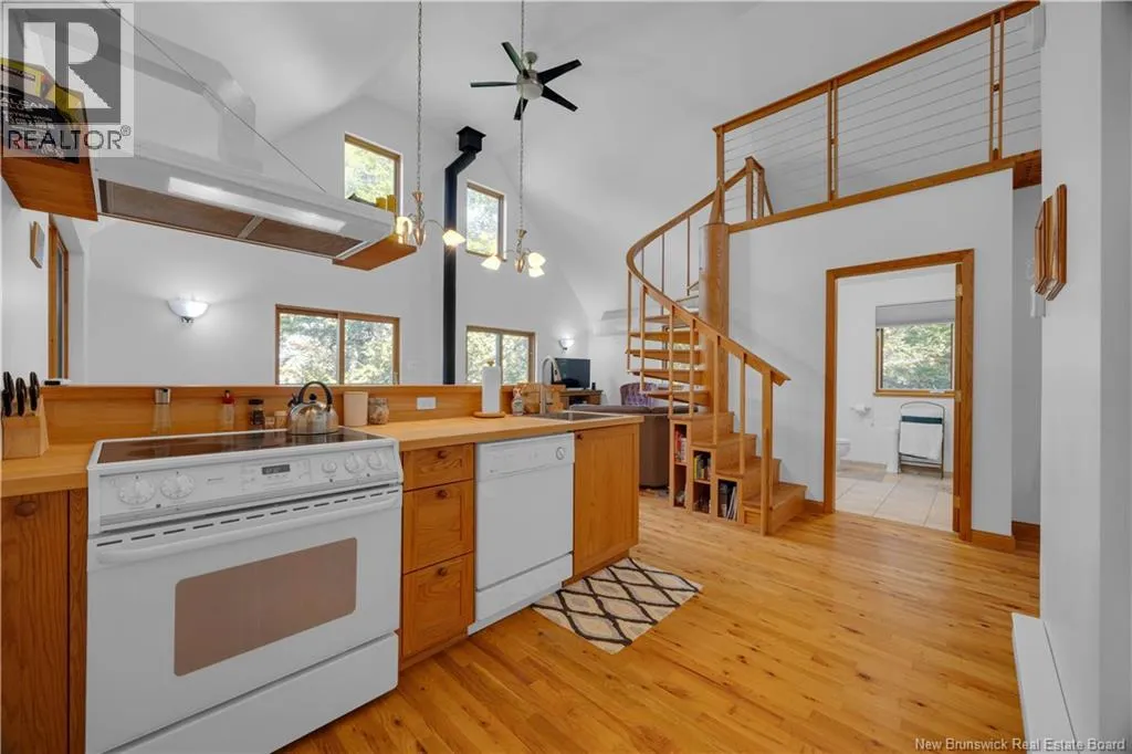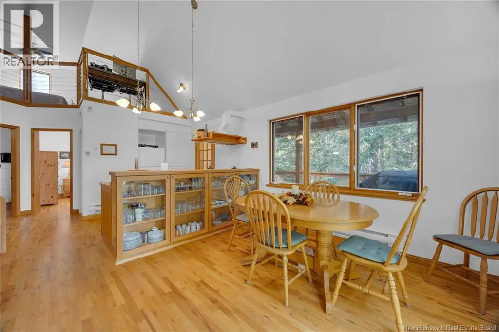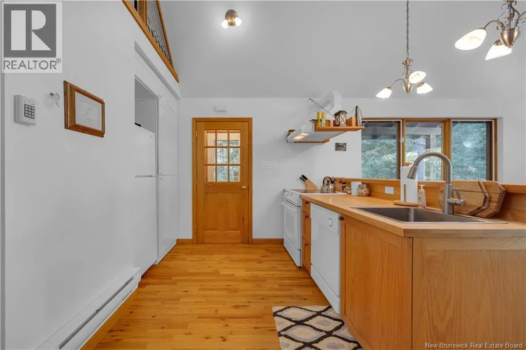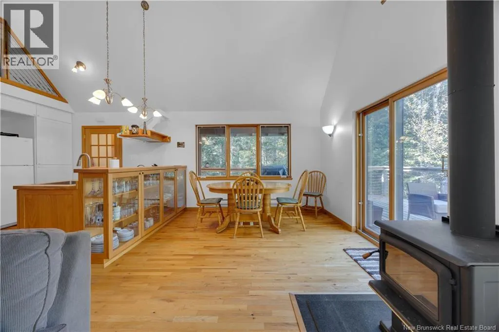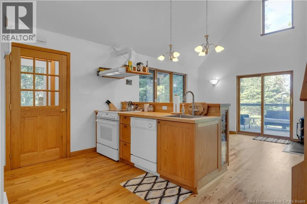 Route 710 to Scenic Narrows Blvd to Thomas Lane. Last property with gate. Lockbox on gate. Your Private Waterfront Escape Awaits. Tucked at the end of a gated private lane and surrounded by trees, this year-round waterfront retreat captures everything you could want in a home or cottage. Perched safely above the high-water mark on 2.62 acres along the stunning Washademoak Lake, where it channels into the Saint John River. This property offers unmatched privacy, natural beauty, and endless recreation. The open-concept great room showcases soaring ceilings, spiral staircase, abundant natural light, a cozy wood stove, and double patio doors leading to a wraparound deck with breathtaking westerly views, perfect for sunsets over the water. With two comfortable bedrooms plus a loft, the layout suits both a peaceful primary residence and a family getaway. The spacious bath and thoughtful design invite relaxation at every turn. Outside, enjoy your own waterfrontage for swimming, boating, and lakeside fun. An oversized garage provides ample space for toys and tools, while the charming bunkhouse loft welcomes guests with comfort and character. A rare opportunity to live year-round in one of the most serene and picturesque settings in New Brunswick. Your waterfront lifestyle begins here. (id:27476)
