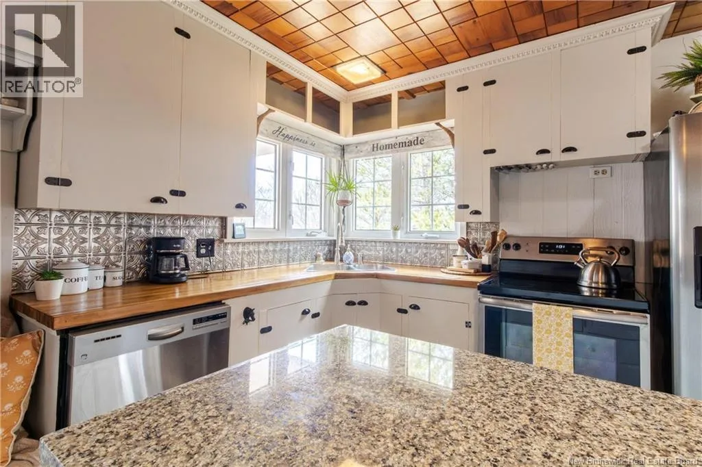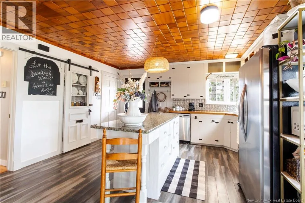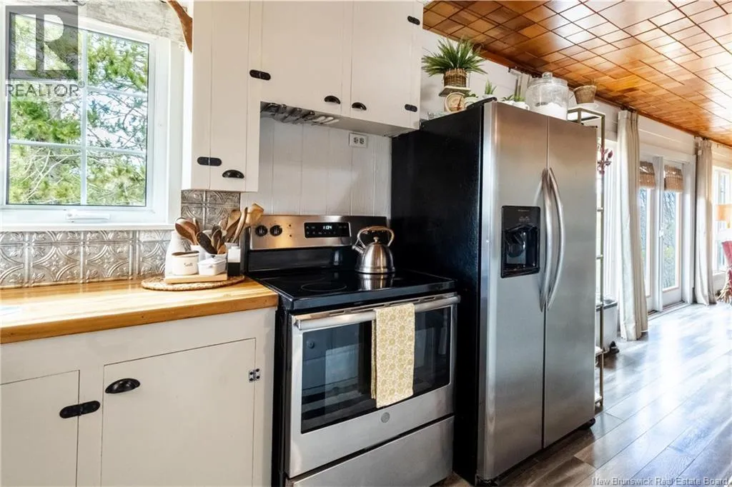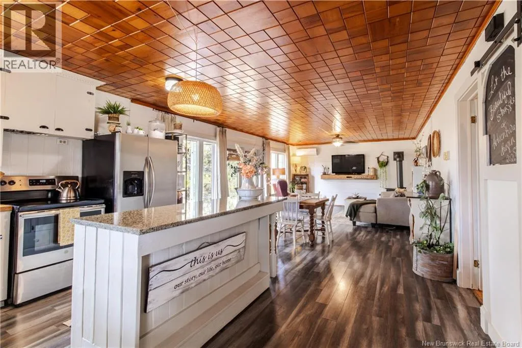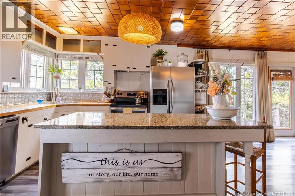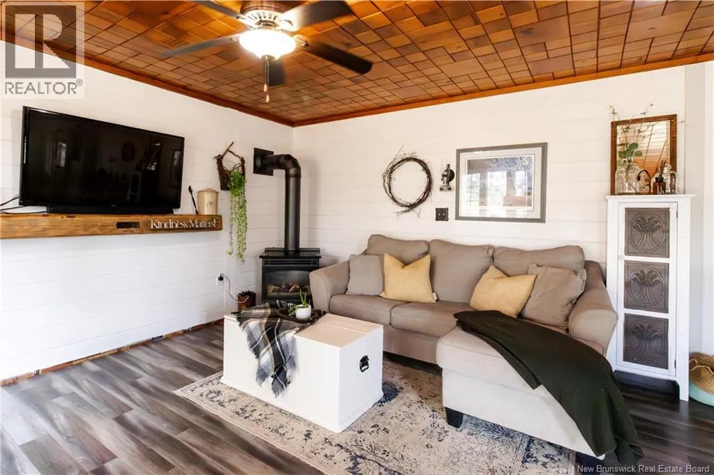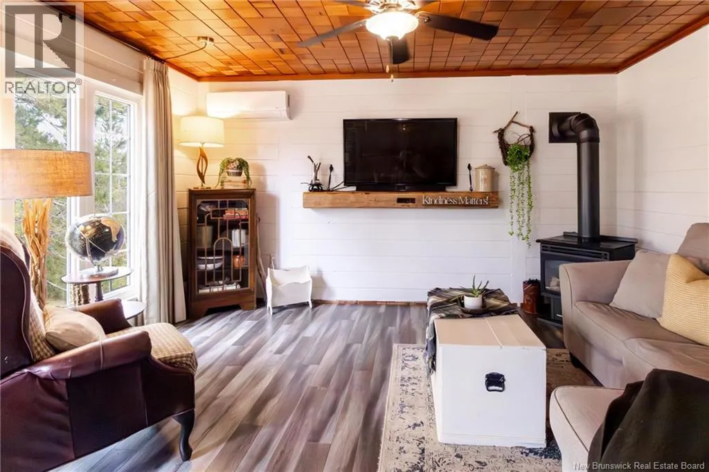 From Cambridge Narrows, take Route 710 toward Salmon Creek. Continue straight to civic # 1250 property is on the left-hand side. Looking for that perfect home in the country with Washademoak Lake access just steps away? Look no further this inviting property at 1250 Salmon Creek Rd offers the lifestyle hobby farmers and gardeners dream about on nearly 5 private acres. The main level welcomes you with a covered front deck and warm, open living spaces. An updated kitchen flows easily into the dining and living area, where detailed wood ceilings and custom cabinetry reflect the care of a master builder. From here, step onto the deck and take in beautiful sunset views across the front of the property. Down the hall are a spacious primary bedroom, full bath, and two additional bedrooms. The lower level adds a built-in garage/storage area and cozy wood stove. Comfort features include a mini-split, electric baseboards, propane stove in the living room, and wood stove downstairs. Outside, the setting truly shines with established gardens, fencing for animals, apple trees, berries, grape vines, and a detached barn with extension, plus greenhouse space ready for your next growing season. Walk across the road to public access at Thornetown Wharf Rd and enjoy Washademoak Lake, for swiming, boating, and exploring the Saint John River system. Located near the Village of Cambridge-Narrows, school, and store for essentials, and within 30 minutes of Sussex and about an hour to Moncton, Saint John, and Fredericton, this is country living with connection. Come experience the space, privacy, and lifestyle waiting here. (id:27476)