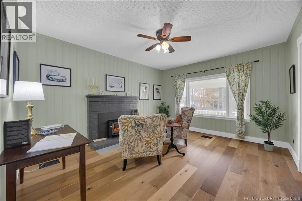 From King Street take Prince William Street. Drive straight approx 4.3 km (2.7 miles)until you have reached your destination. Welcome to George House, est. 1920 458 Ledge Road, a beautifully updated home set on 1.39 acres in a highly sought-after area. The homes name pays homage to its origins during the reign of King George V, blending historic charm with modern comfort. The property features a spacious two-bay garage with a loft, providing ample room for vehicles, storage, or even a workshop. Inside, the side entryway leads into a bright and comfortable sitting room. The large eat-in kitchen offers plenty of space for cooking and gathering, with a convenient half bath nearby. The living room is warm and inviting, featuring a brand-new WETT-certified fireplaceperfect for cozy evenings. A versatile family room, currently used as an office, could easily serve as a formal dining area or additional living space. Upstairs, youll find two bedrooms and a fully renovated bathroom designed with modern finishes. Extensive updates throughoutincluding all-new windowshave made this home bright, efficient, and move-in ready. With its blend of history, charm, and contemporary style, George House is ready to welcome its next owners home. (id:27476)