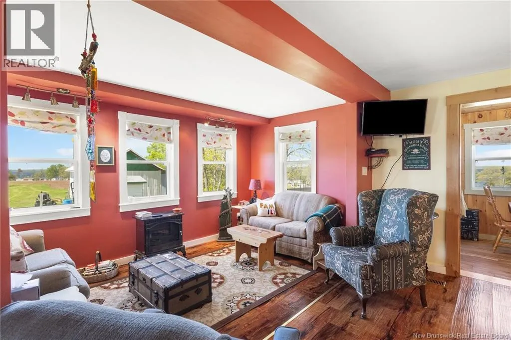 Nestled in Cumberland Bay, this fully renovated farmhouse offers deeded access to Grand Lake and some of the lakes most spectacular views. Sitting on a gently sloping lot,the scenery is breathtaking in every season.Renovated top to bottom,the home blends historic character with modern convenience.Wood accents, natural light, and thoughtful touches create a warm,inviting space.With four bedrooms and two + a 1/2 bathrooms,theres plenty of room for family or guests.The kitchen includes modern appliances,sleek counters,ample cabinetry,and a walk-in pantry as beautiful as it is functional.Upstairs,a bonus room makes a great fifth bedroom,studio,or office,complete with a private balcony overlooking the lake.Outside,this property offers a large detached barn/garage with full basement giving you space for a workshop, storage,etc.Theres also ample garden space for growing vegetables or flowers, and a peaceful pond that adds to the calm, natural feel.Spend evenings at the firepit,under the stars,or unwind on the covered front porch as you take in the sounds of country life. With deeded lake access,you can swim, boat, kayak,or relax at the waters edge whenever you like.The property is only 20 minutes to Chipman,45 to Oromocto,and 1 hour to Fredericton.With a spacious layout and modern upgrades this home is move-in ready.This isnt just a houseits a lifestyle.From quiet mornings to fireside evenings,this is a place that truly feels like home.Dont wait book your private tour today! (id:27476)