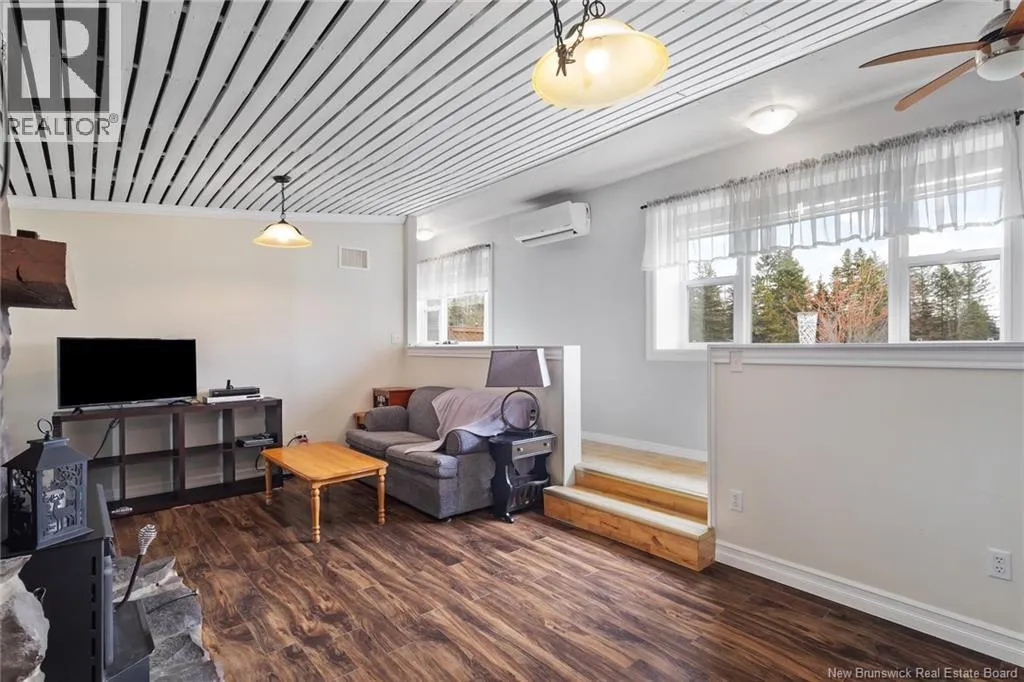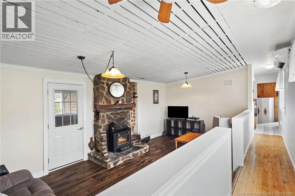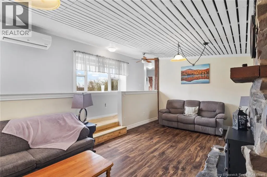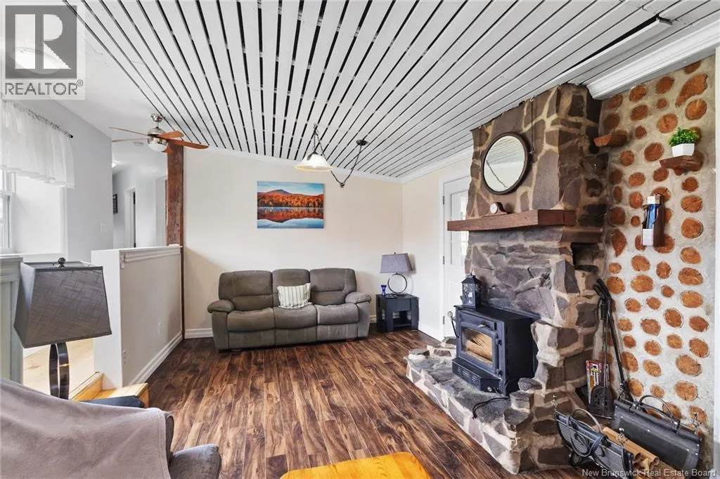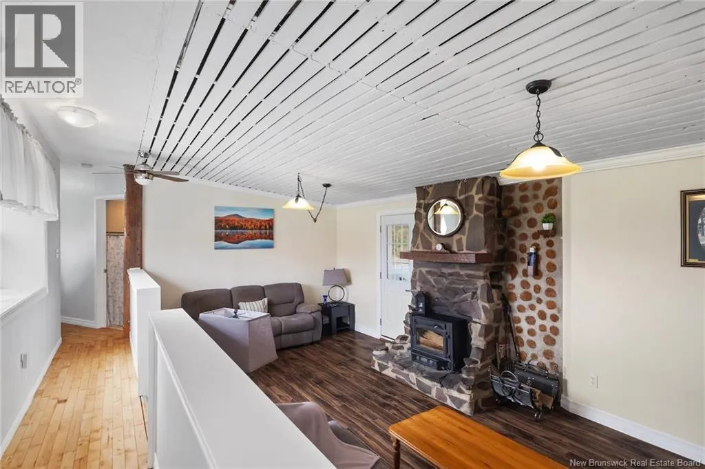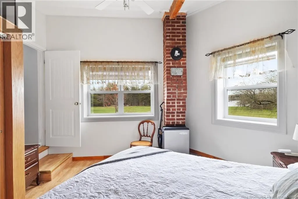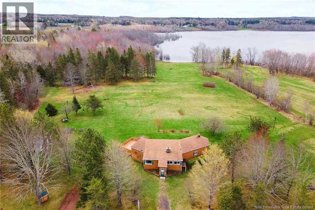 Continue for about 1215 km into Cumberland Bay. Turn onto Cox Point Road. Follow Cox Point Road, #1520 will be along this road Welcome to your dream four-season retreat on the pristine shores of Grand Lake this beautifully upgraded 2-bedroom home is set on a remarkable 13-acre waterfront property with 400 feet of private shoreline,offering a rare combination of serenity,space,and opportunity.Thoughtfully designed with unique architectural touches, the home exudes warmth and character, featuring a modern heat pump for year-round climate control and a charming wood stove that adds a cozy ambiance on cool evenings. Numerous upgrades throughout ensure both comfort and style, making this property ideal for any lifestyle.The structure is safely situated with no risk of flooding, giving you peace of mind in every season. Outdoors the expansive,well-kept grounds boast lush green grass, mature trees, and two exterior sheds, providing ample space for storage,hobbies,or toys. With 13 acres at your disposal,the potential is endless, add a guest cottage, launch a hobby farm, or explore other recreational or residential possibilities. The vast land invites creativity, relaxation, and future investment. Ideally located less than an hour from Fredericton, 45 minutes from Oromocto, an hour from Moncton, and just 15 minutes from the shops, services, and schools of Chipman. This stunning property offers the perfect blend of rural tranquility and accessible convenience. A truly rare and versatile lakeside gem. Don't miss out on this beautiful spot, with an abundant amount of land on the water, book your showing today! (id:27476)