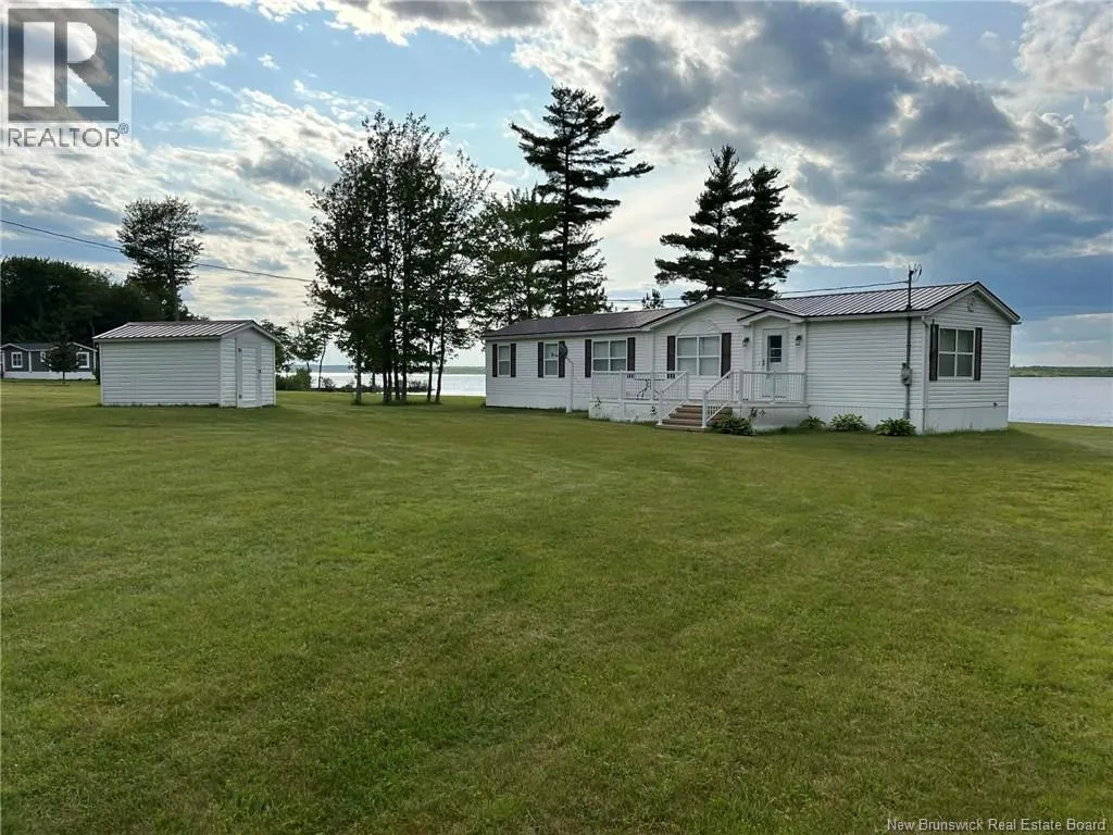 Follow Route 10, and turn left towards Cumberland Bay. Turn onto Cox Point Road. Follow Cox Point Road until you've reached #388. Once in a while,a property comes to market that truly shines in every sense of the word,where pride of ownership is unmistakable and every inch has been thoughtfully cared for.This stunning 11.34 acre waterfront property on Grand Lake offers an exceptional lifestyle and an unbeatable location,a true boaters dream with its own private boat launch,a convenient place to put your boat in the water,and access to over 200 kilometres of navigable water.The grounds have been meticulously maintained for years,with manicured lawns,thoughtful landscaping,and a natural blend of mature trees providing beauty and privacy.With just under 700ft of waterfront,you will enjoy one of the nicest beaches on Grand Lake,with gently sloping land,ideal for swimming,relaxing,and entertaining. The property features a well kept three bedroom,two bathroom oversized mini home offering comfortable year round living.A large garage provides ample space for boats, vehicles, and recreational equipment,along with two additional outbuildings for added function and value. Centrally located,approximately one hour from Fredericton and Moncton and 15 minutes from Chipman, with schools,grocery stores, and amenities. This property could be a beautiful escape,year round home,or investment,with land suited for multi use including camping,trailers,multiple build sites,and opportunities such as domes or additional structures,the possibilities are endless. Properties like this rarely come available,book your showing today. (id:27476)