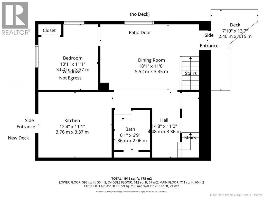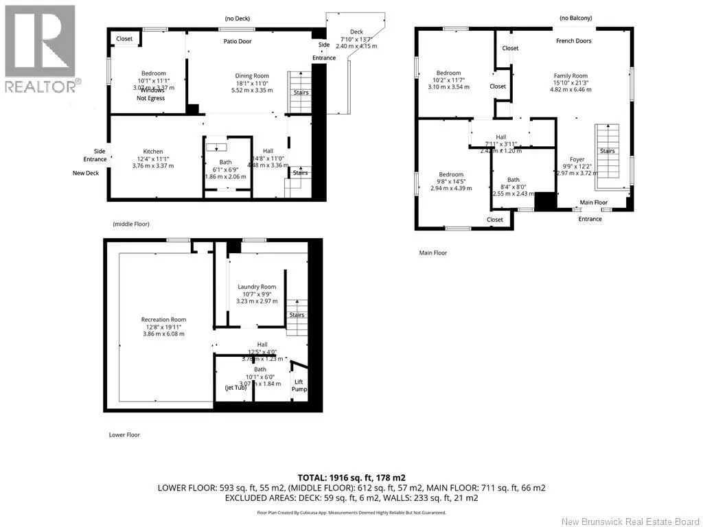 Entering Dalhousie on Renfrew street, go down the hill, turn right onto Victoria street then property is less than 1km on your left. UPDATED: Spacious 3-bedroom, 3-bathroom home offering a unique multi-level layout and beautiful views of the Restigouche River and Mountains in the distance. Ideally located just down the street from the beach and Recreaplex Wellness Centre. From the outside you'll never guess what awaits- step inside to a gorgeous foyer with soaring high ceilings that flows into the family room. Main floor also features two bedrooms with closets, full bathroom and a pull-down attic stair in the hall offering quick and convenient access to storage space. Middle floor has dining area with side entrance, kitchen with propane cooking stove and separate entrance with a new deck (Oct 2025), plus a bedroom with closet (windows non egress) and bathroom with standalone shower. Do not open: French doors on the main floor (No balcony) and patio doors on 2nd floor (No deck). Lower floor large rec room is great to entertain family & friends, laundry room has utility sink and storage, the full bathroom has a jet tub plus access to the lift pump through the closet floor. Additional Features: Two electric meters on separate power bills (1 for main floor and 1 for middle & lower floors), Roof shingles & Venmar system 2023, NB Power rented hot water tank 2015. With a beautiful view in the distance and some TLC this property has endless potential! Call today and book your visit!! (id:27476)