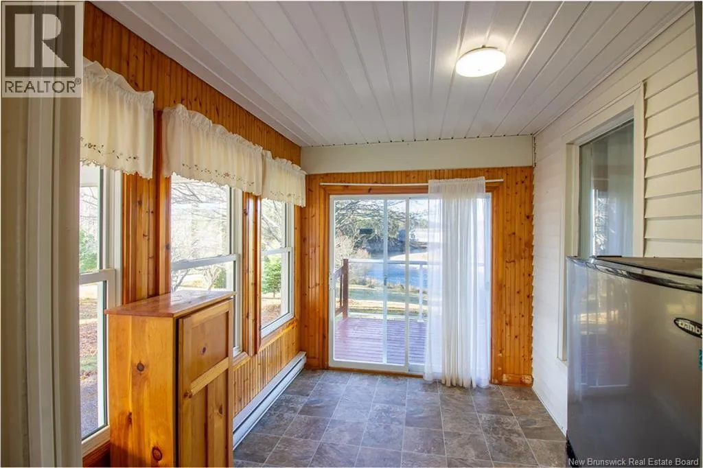 Route 860 to Damascus Road Breathtaking Riverfront Setting on 2 plus acres Nestled 10 - 15 minutes from both Hampton's charming town centre, and the town of Quispamsis. Welcome to one of the most picturesque settings in Southern NB this riverfront bungalow offers a rare combination of natural beauty and convenient location. Set on a private lot with mature trees and over 450 feet of frontage along the tranquil Hammond river, this home delivers incredible views of the riverbend and the historic covered bridge a true postcard scene. Inside, the spacious eat-in kitchen is sure to impress with crown molding, ceramic tile flooring, updated cabinetry, granite countertops, and a ductless heat pump for year-round comfort. Step into the sunroom off the kitchen, a perfect spot for your morning coffee. The living room features hardwood floors and walk-out access to the front deck, where spectacular river views await. Down the hall, youll find two bedrooms and an updated full bathroom. Downstairs includes a large third bedroom, a generous family room complete with another heat pump and a cozy propane stove, plus a walk-out to the front yard. Additional features include a large laundry area with a toilet and farm-style sink, a utility room, and additional storage. Outside, enjoy the convenience of a carport plus a detached 32' x 26' two-car garage, ideal for hobbyists, storage, or workshop use. Freshly painted throughout and new flooring in the basement. Property taxes reflect non-owner occupancy. (id:27476)