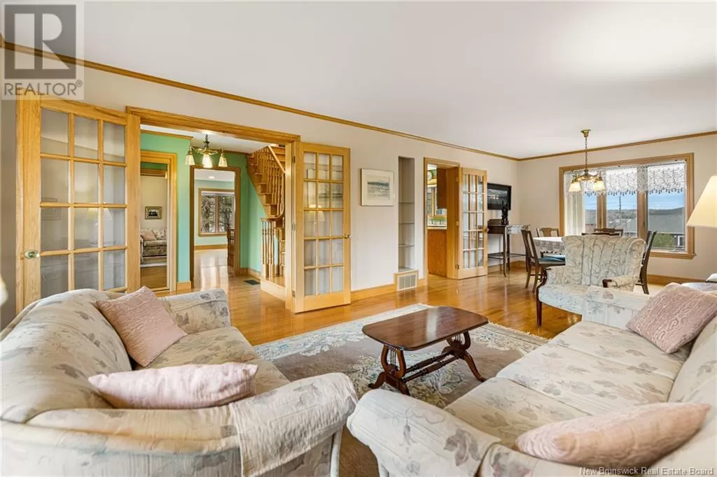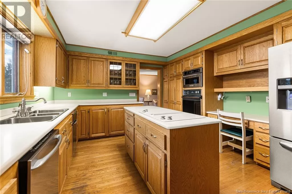 From Amirault St, turn onto rue des Copains and then left onto rue Belle Aventure. *** 4 BEDROOMS ON 2ND FLOOR // WALK-OUT BASEMENT // 1.99 ACRE MATURE TREED LOT // TRANE HEAT PUMP // DOUBLE ATTACHED GARAGE // OVER 4600 SQFT OF LIVING SPACE *** Welcome to 45 Belle Aventure, this ONE-OWNER, R-2000 home is nestled on a rare OVERSIZED LOT in a sought-after neighbourhood. The main floor features a welcoming front foyer, elegant FORMAL LIVING and DINING ROOMS, and a large kitchen with CORIAN COUNTERTOPS, PLENTY OF CUPBOARD SPACE, and ISLAND. Off the kitchen, your family will enjoy the cozy everyday living room / dining area complete with BEAUTIFUL DECORATIVE FIREPLACE as well as the GORGEOUS 4-SEASON SUNROOM with tons of windows and skylights overlooking your serene treed backyard. A convenient MUDROOM and 2pc bath off a secondary entrance complete this level. Upstairs, the primary bedroom includes 3 closets, a charming EXPOSED STONE CHIMNEY, and 5pc ENSUITE with soaker tub, dual sinks, and large shower. 3 additional bedrooms, family/guest bath, and laundry are also located on this level, along with a SPACIOUS LOFT over the garage, ideal for use as a 5th bedroom, play area or other multipurpose space. The WALK-OUT basement offers a great size FAMILY/GAMES ROOM with WOOD STOVE and sliding doors to the back yard, large office, finished storage room, 3pc bath, COLD ROOM, and additional storage space. Featuring a TRANE heat pump, air exchanger, central vac, and storage shed, this home checks off all the boxes on a buyers wishlist! (id:27476)